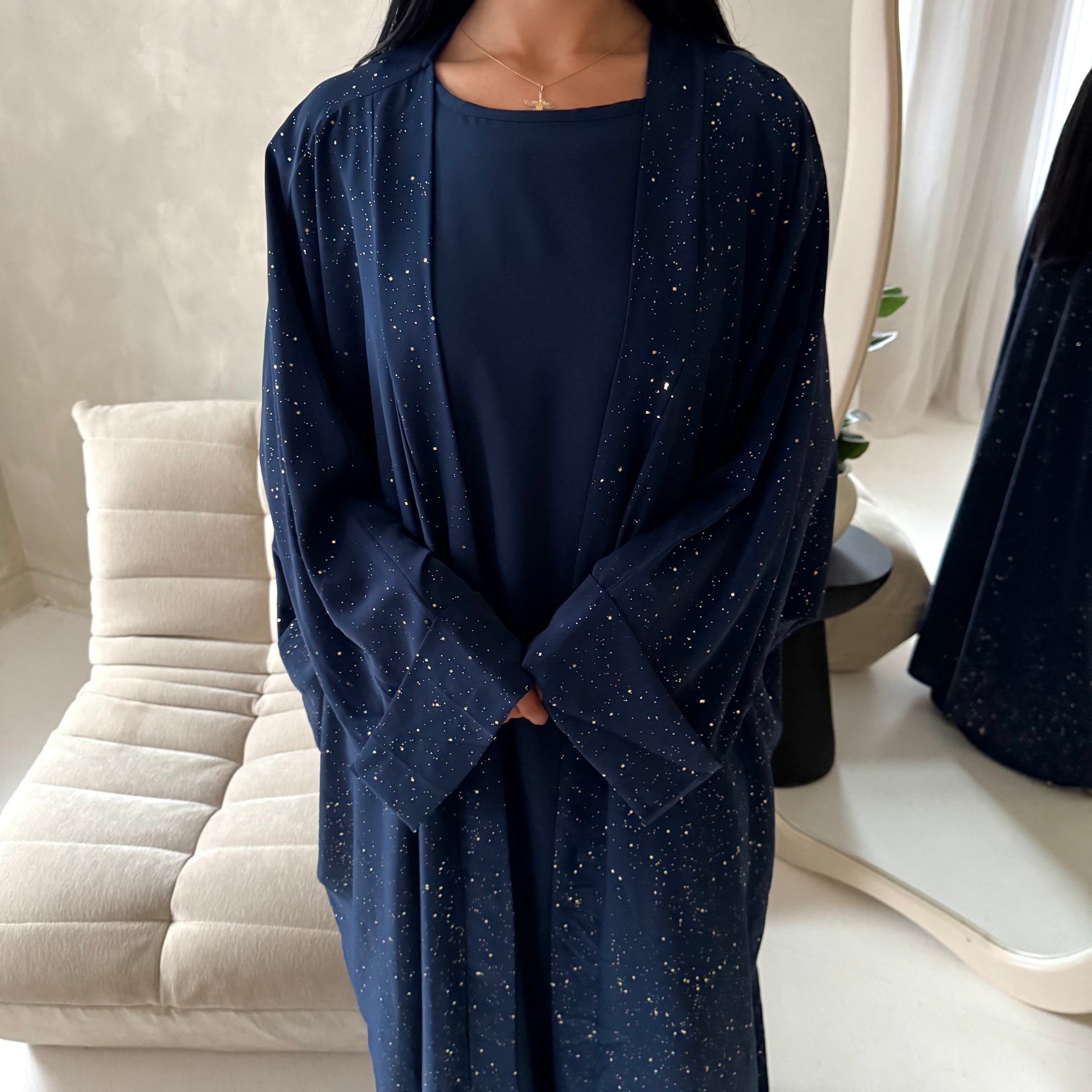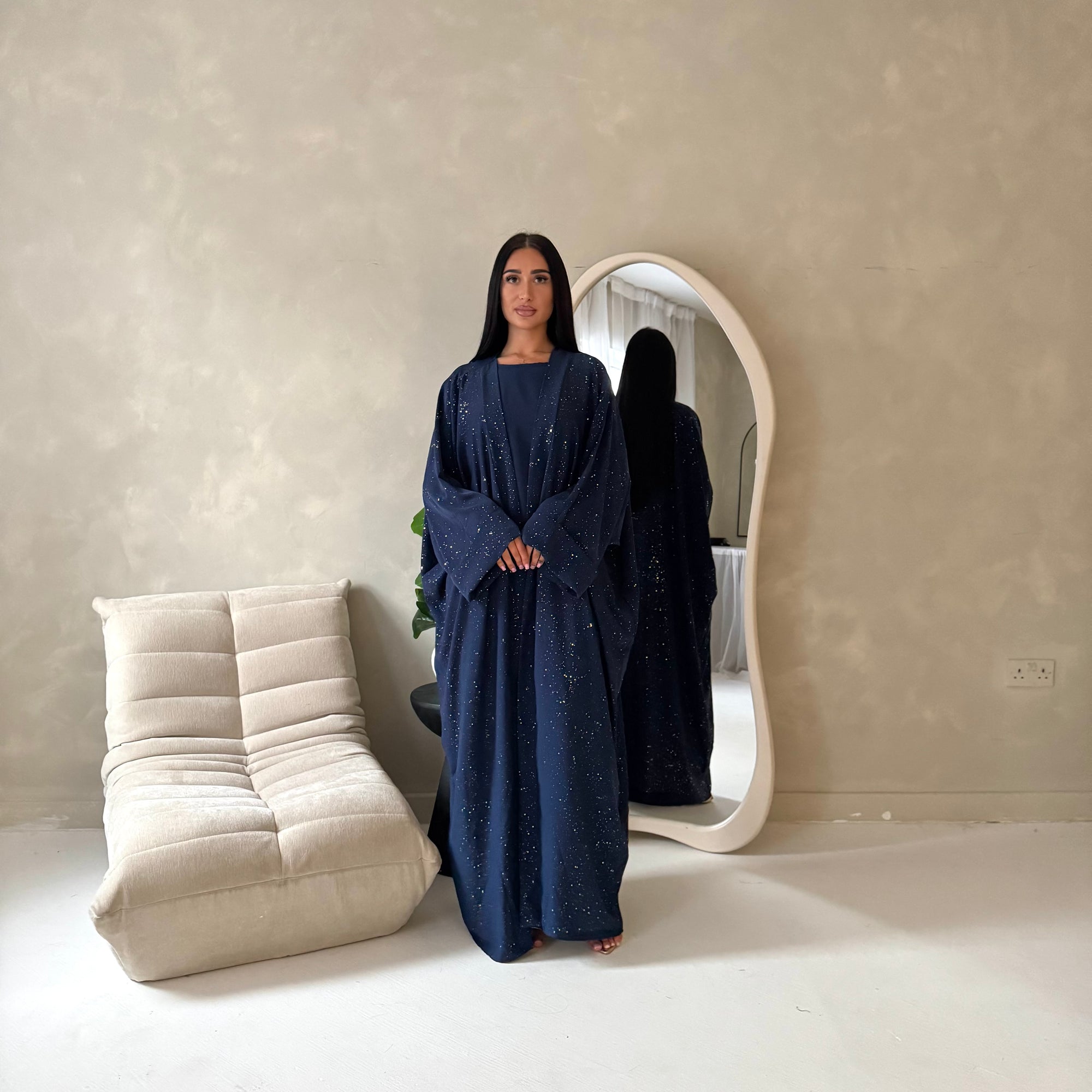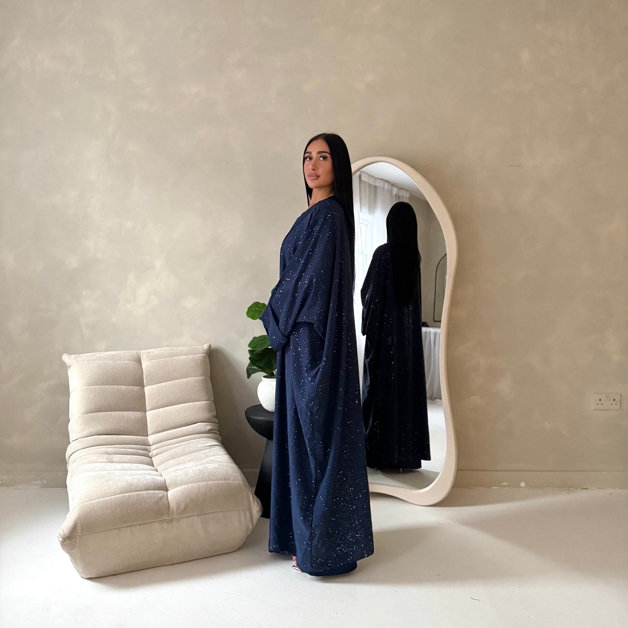 Layana Navy Gold Sparkle 2pcs Abaya & Slip Dress