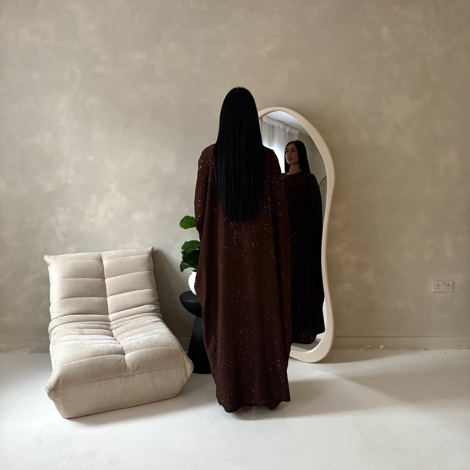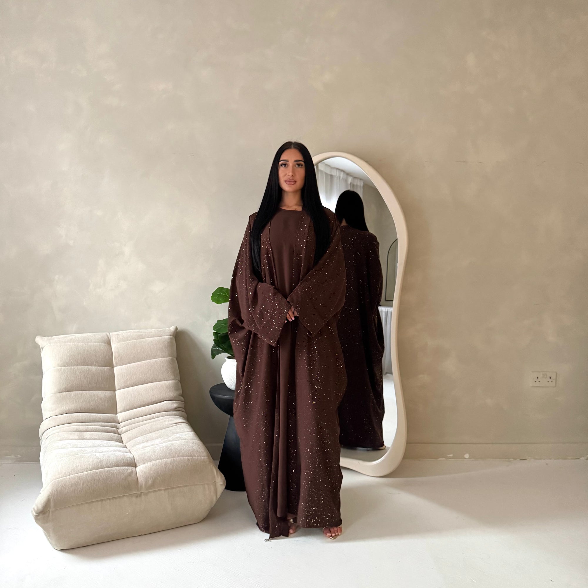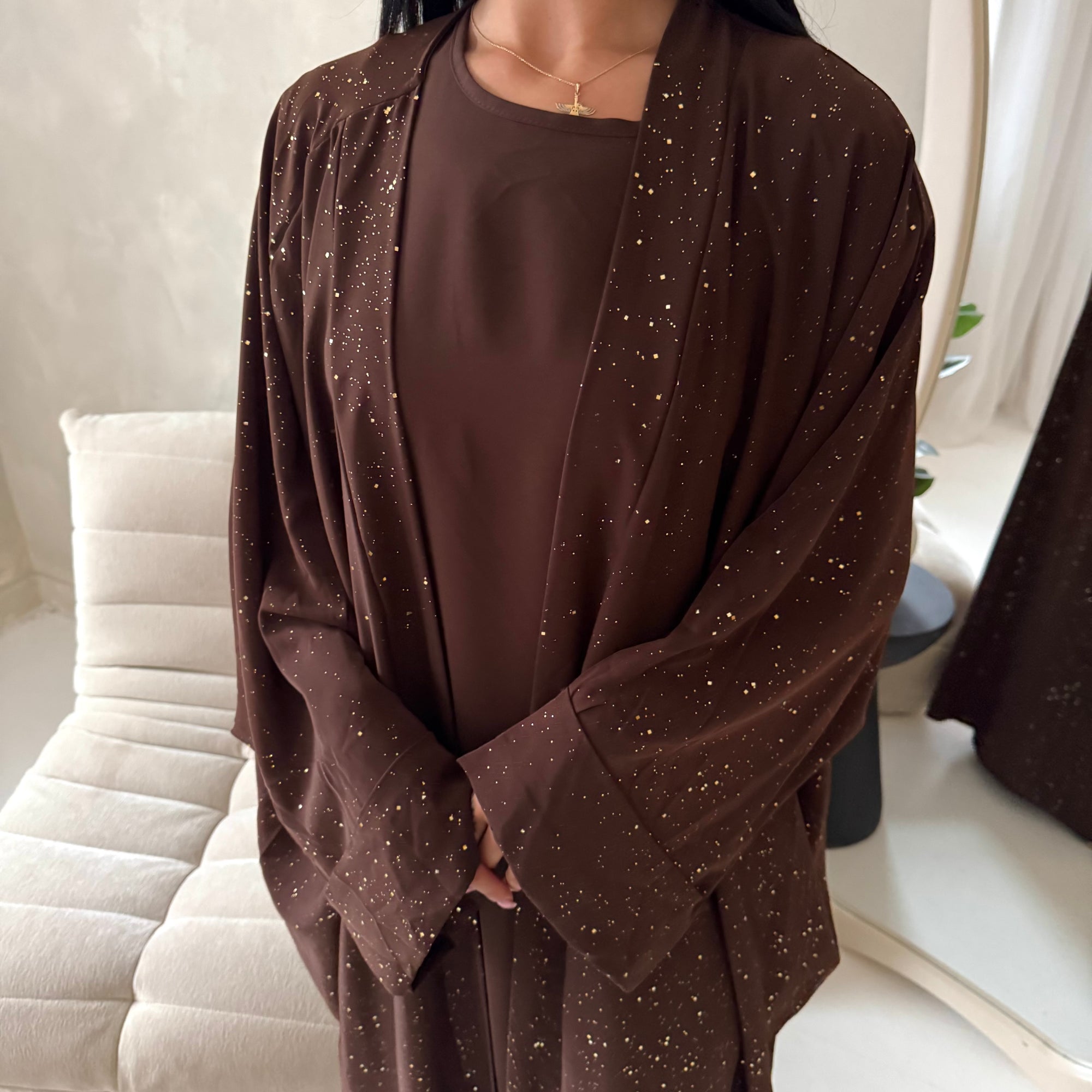 Layana Brown Gold Sparkle 2pcs Abaya & Slip Dress
