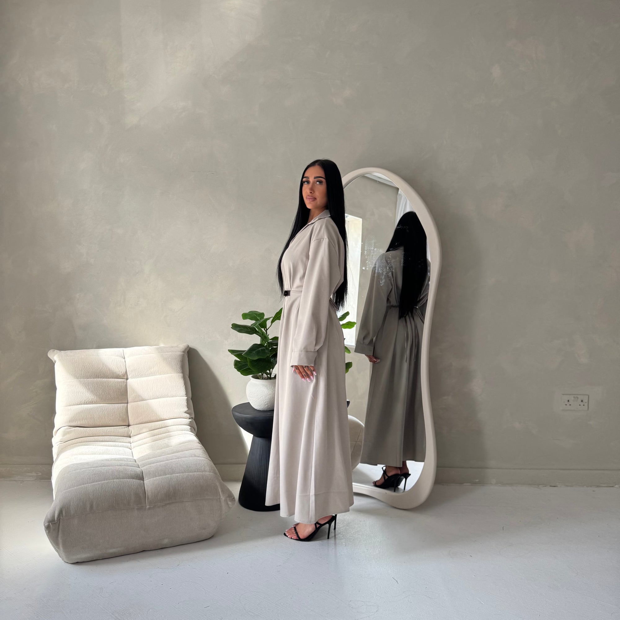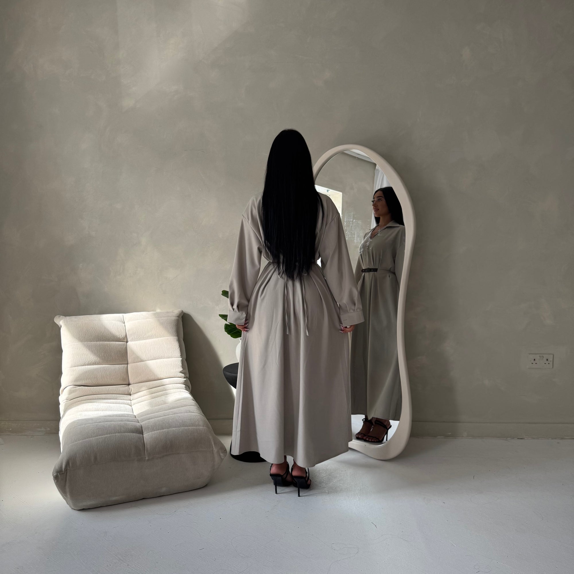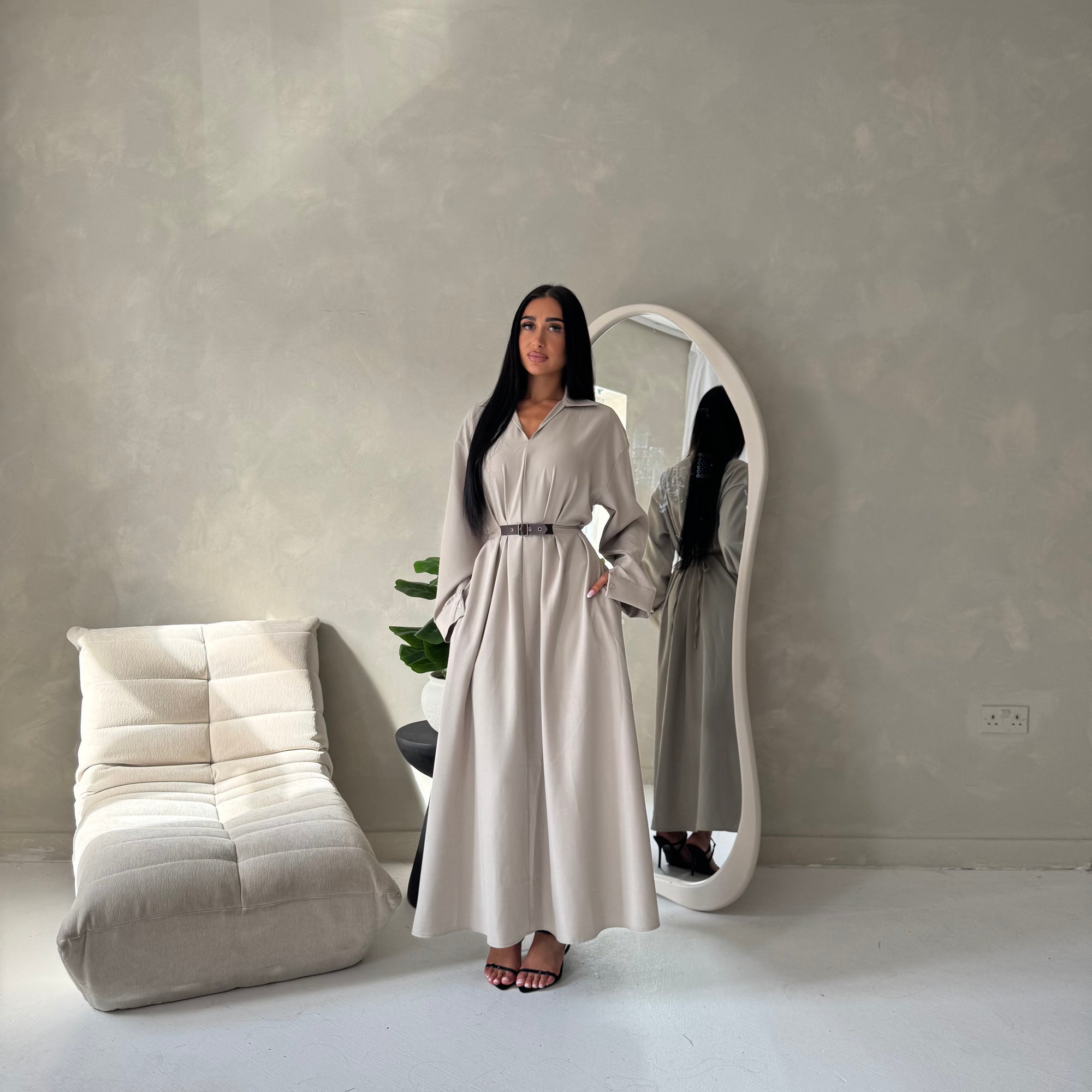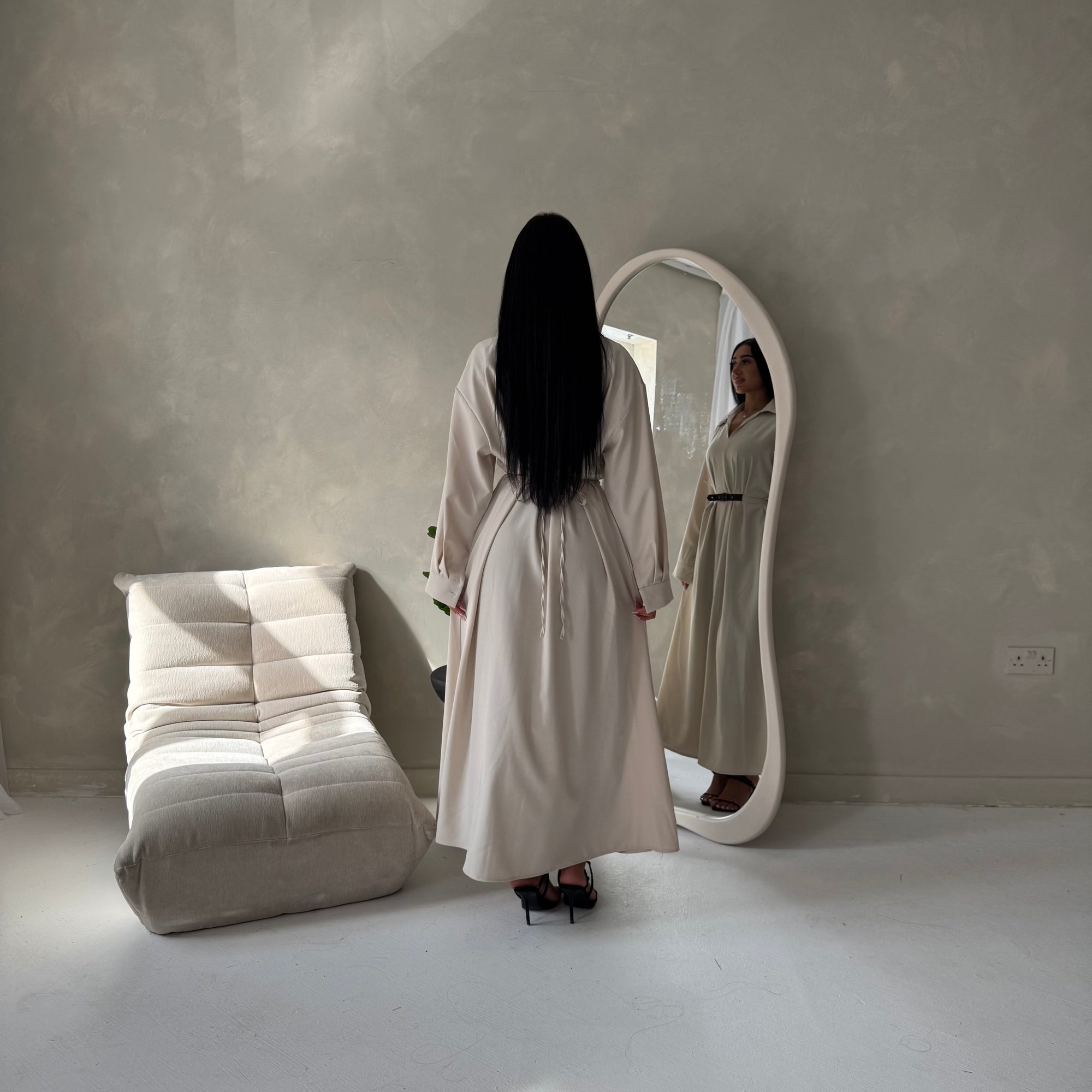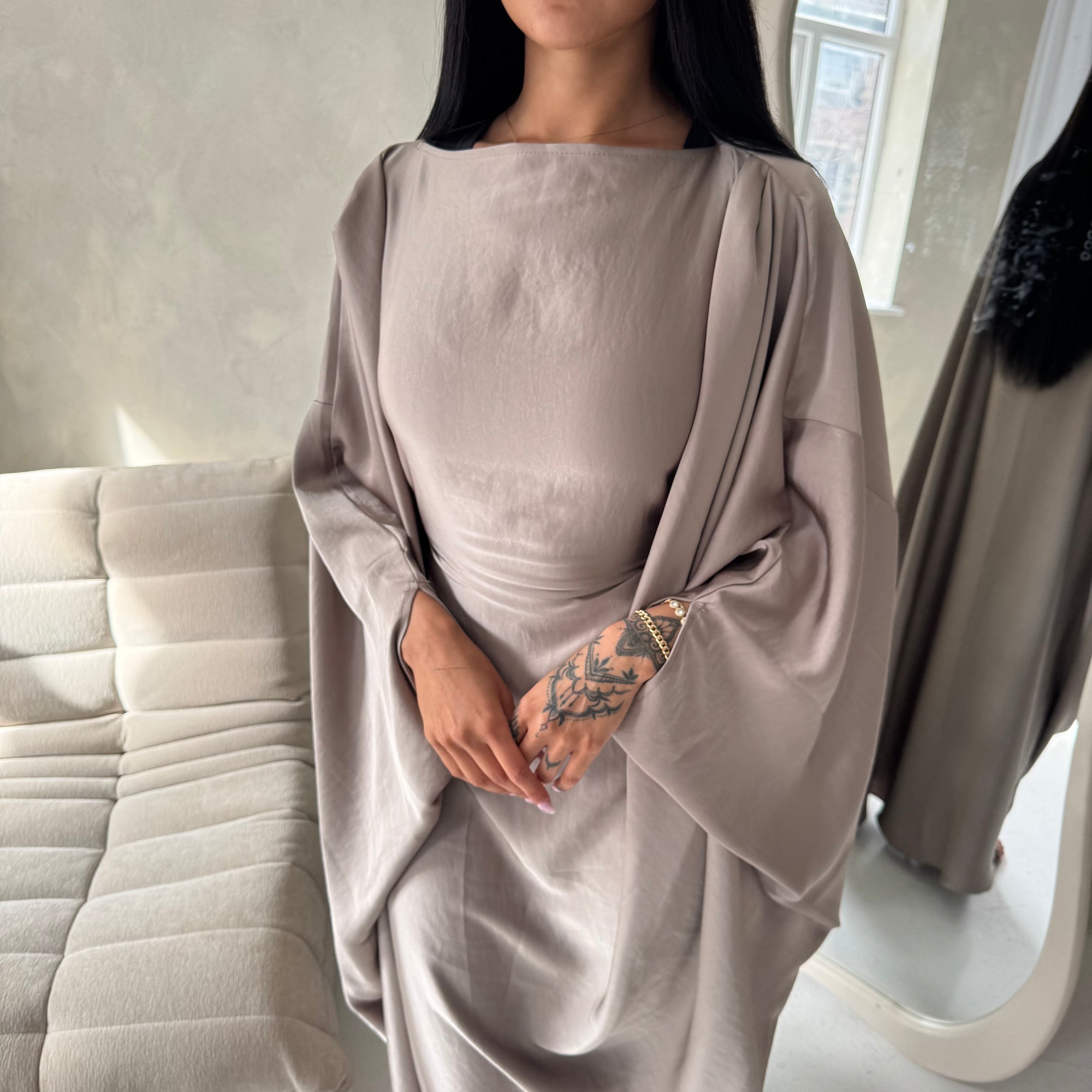 Sahra Cream Satin Shoulder Gather Kaftan Dress