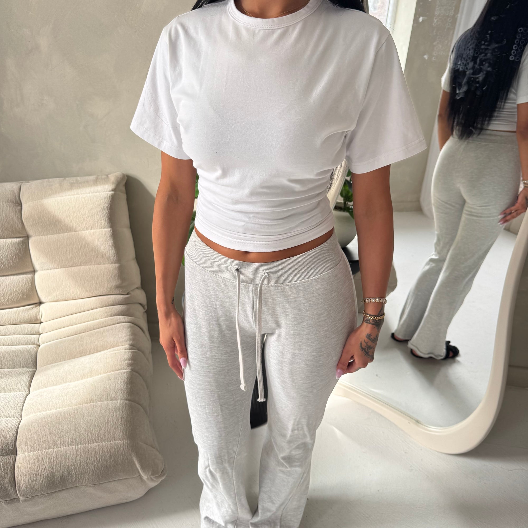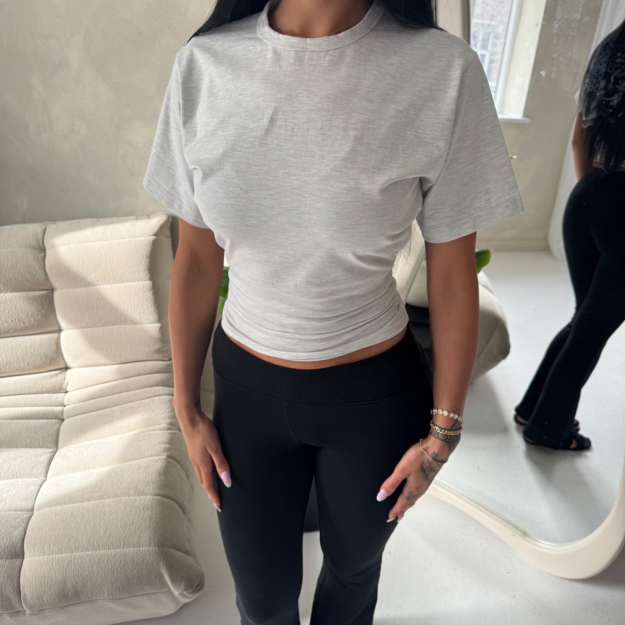 Emily Grey Short Sleeve Cinched Waist Fitted T-Shirt