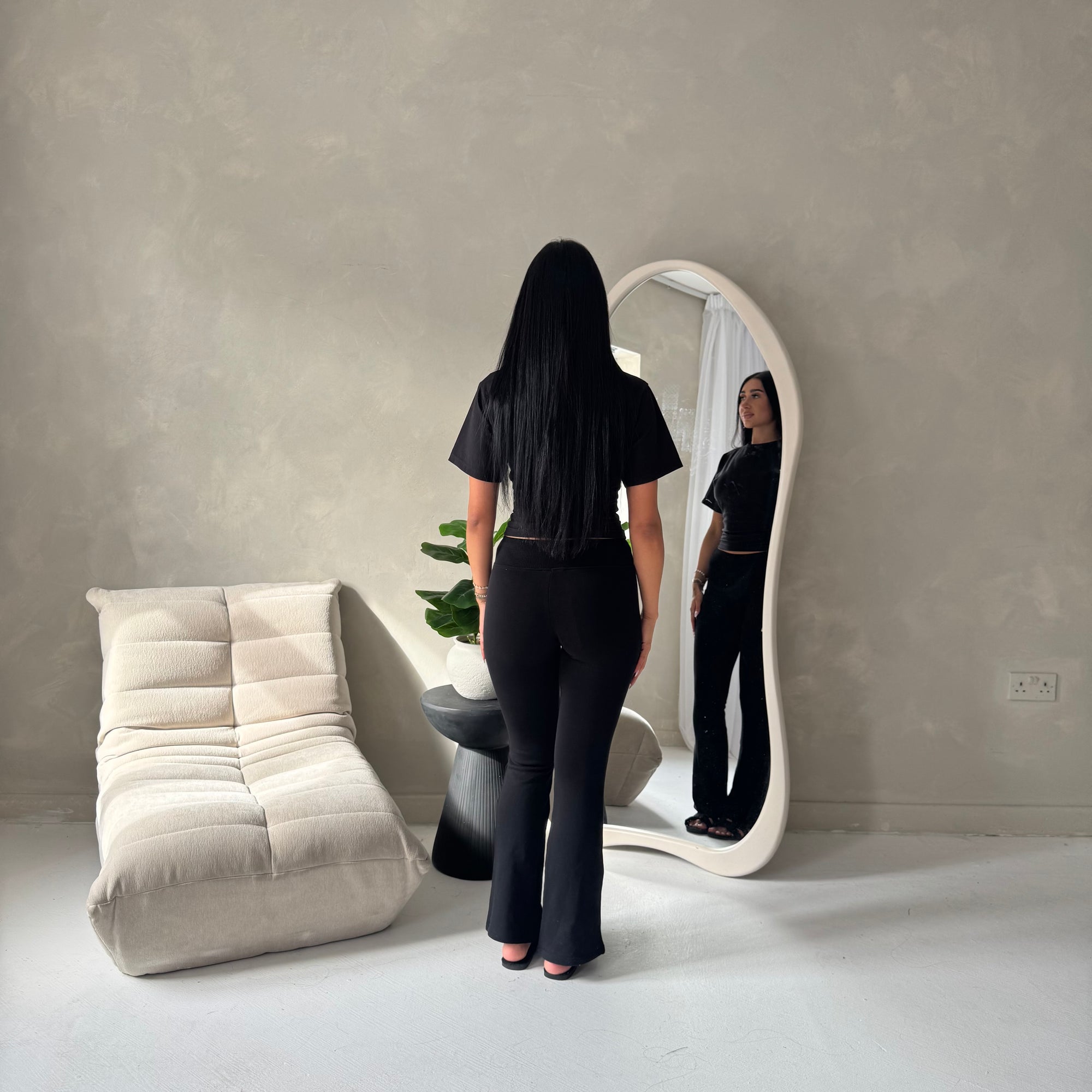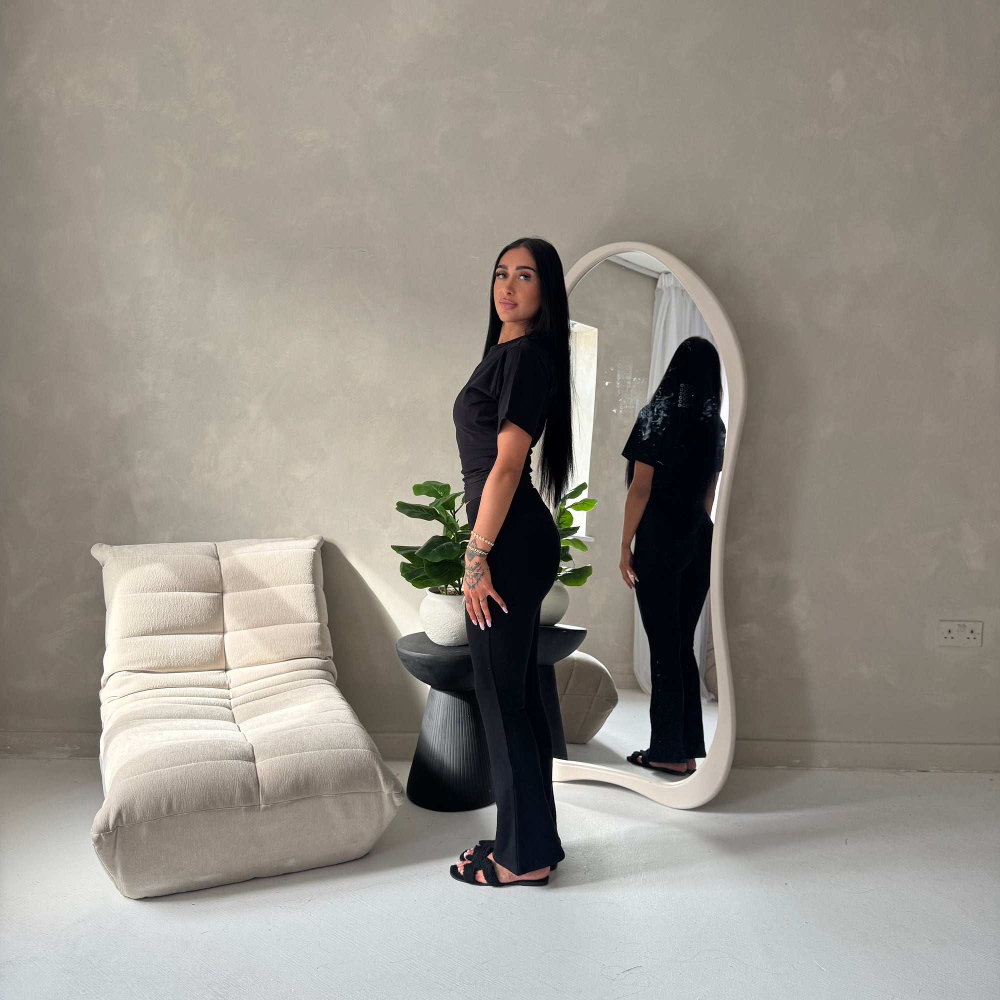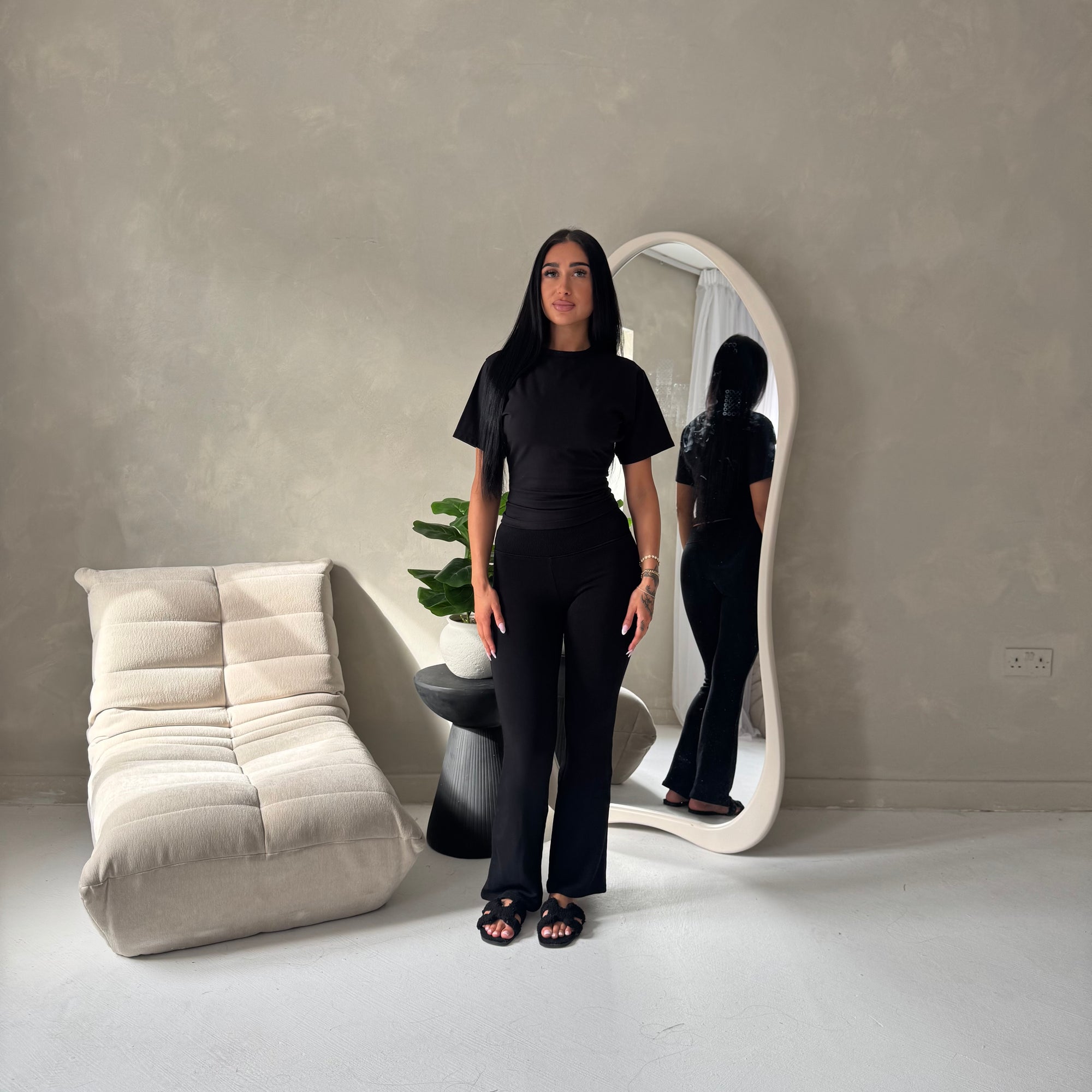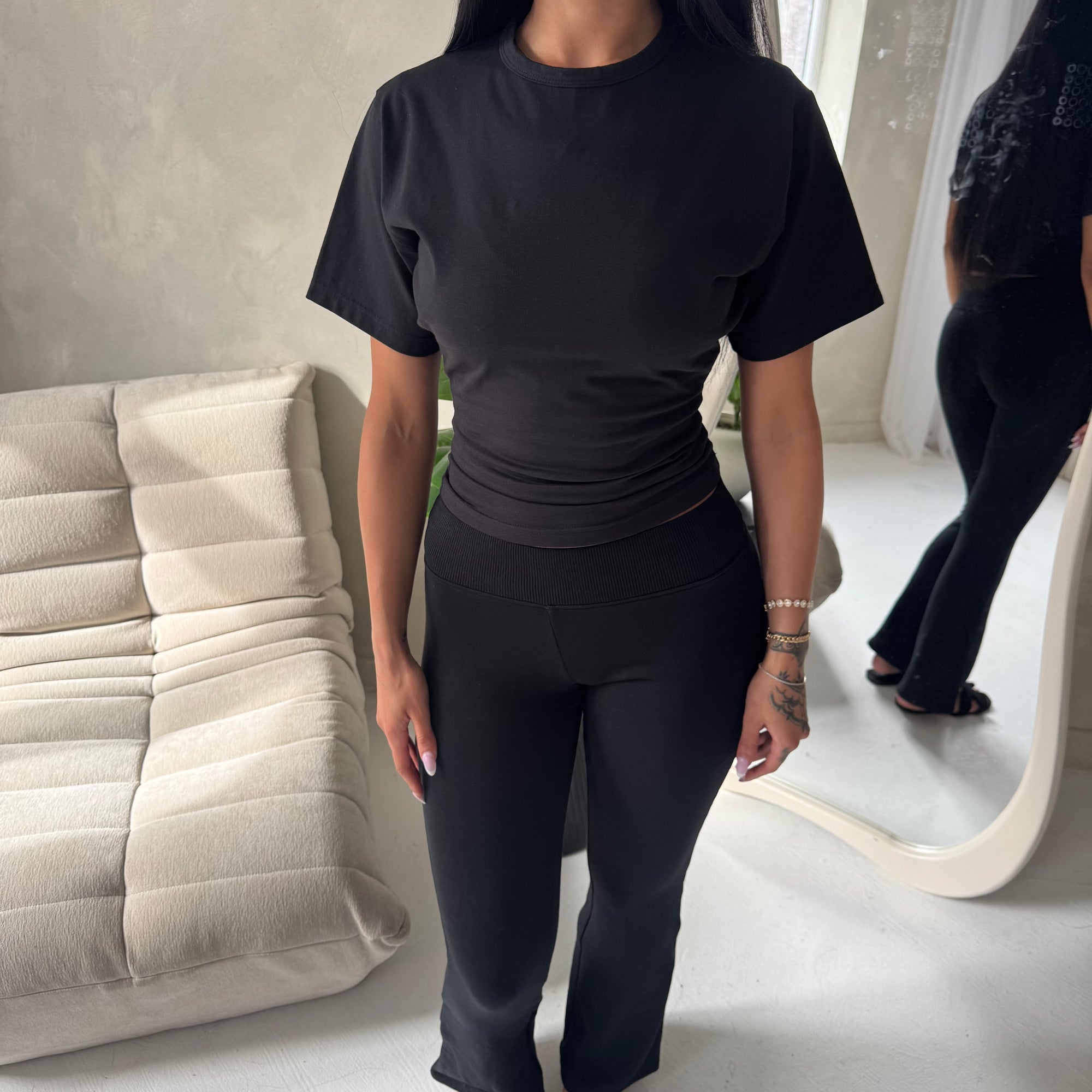 Emily Black Short Sleeve Cinched Waist Fitted T-Shirt