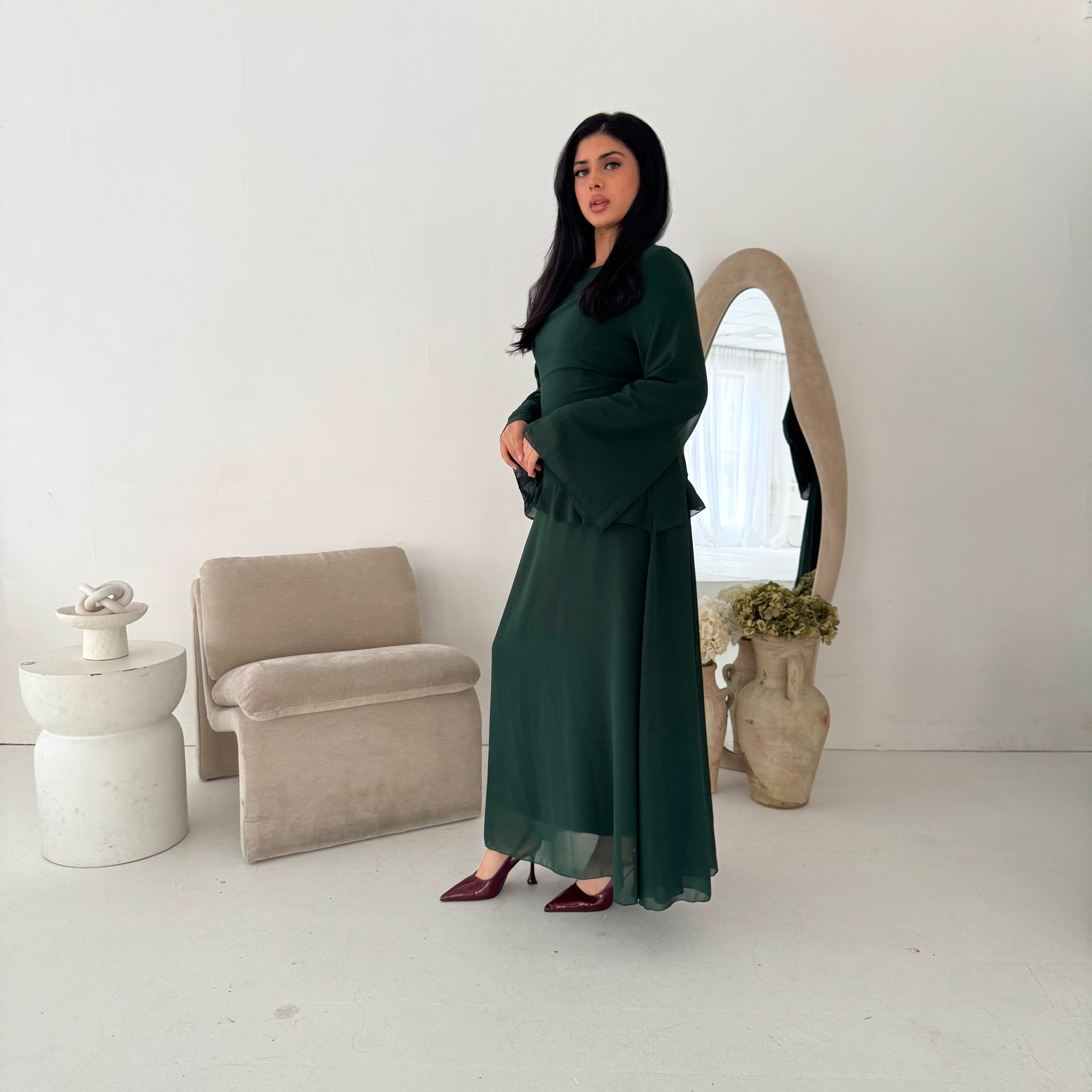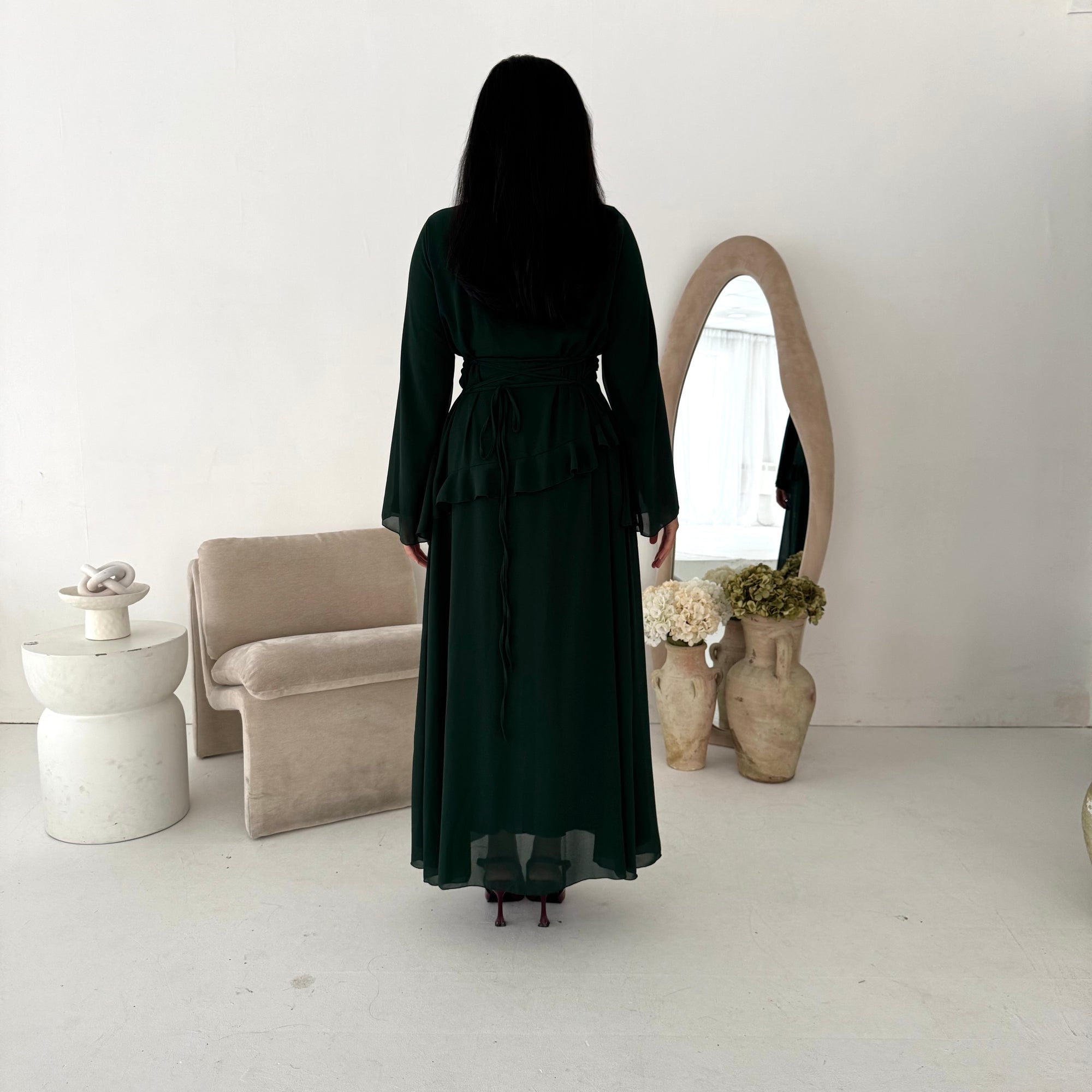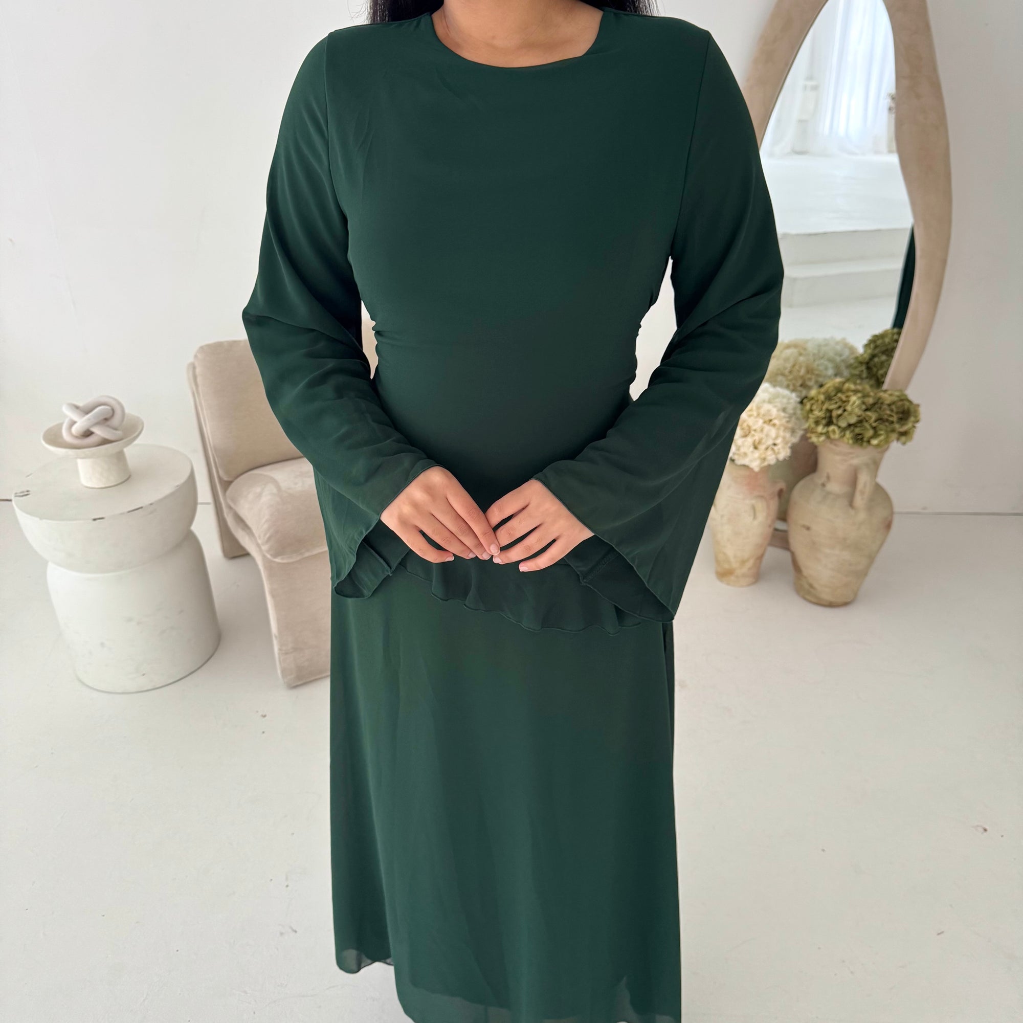 Lila Emerald Green Mesh Frill Detail Lined Dress