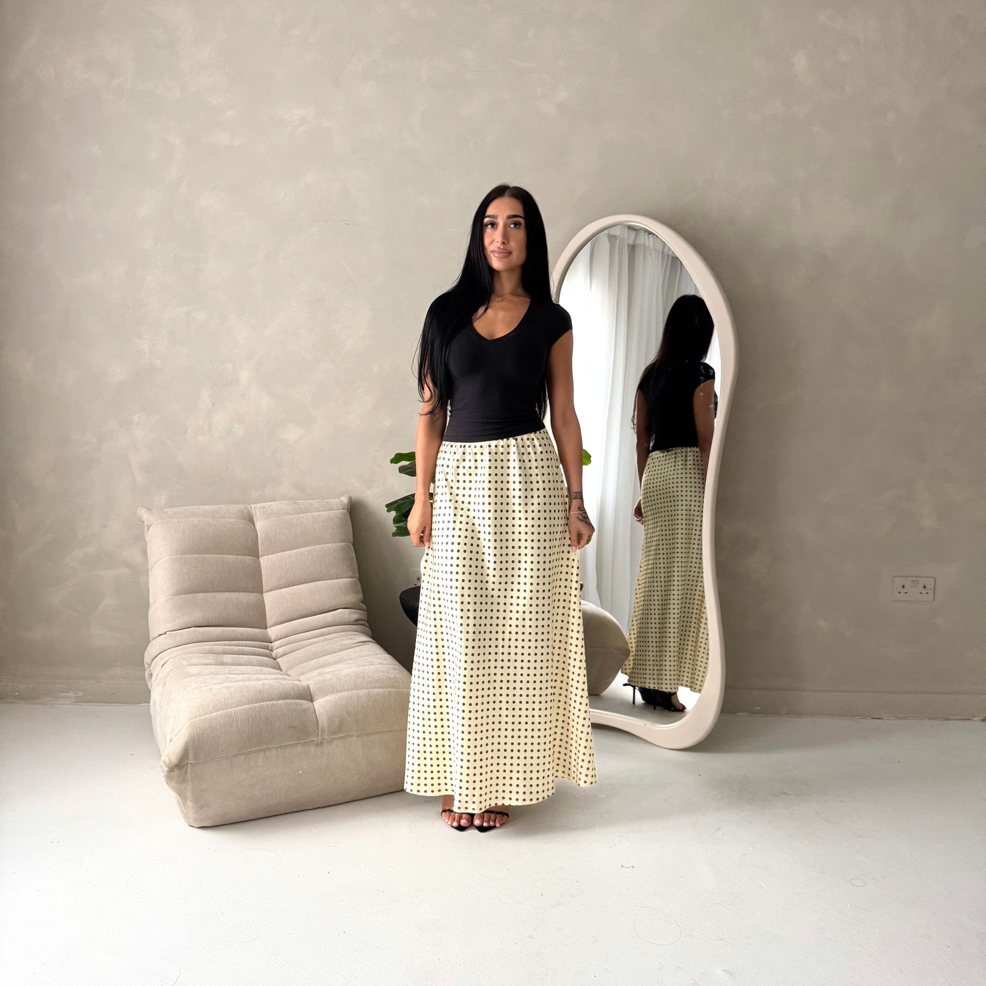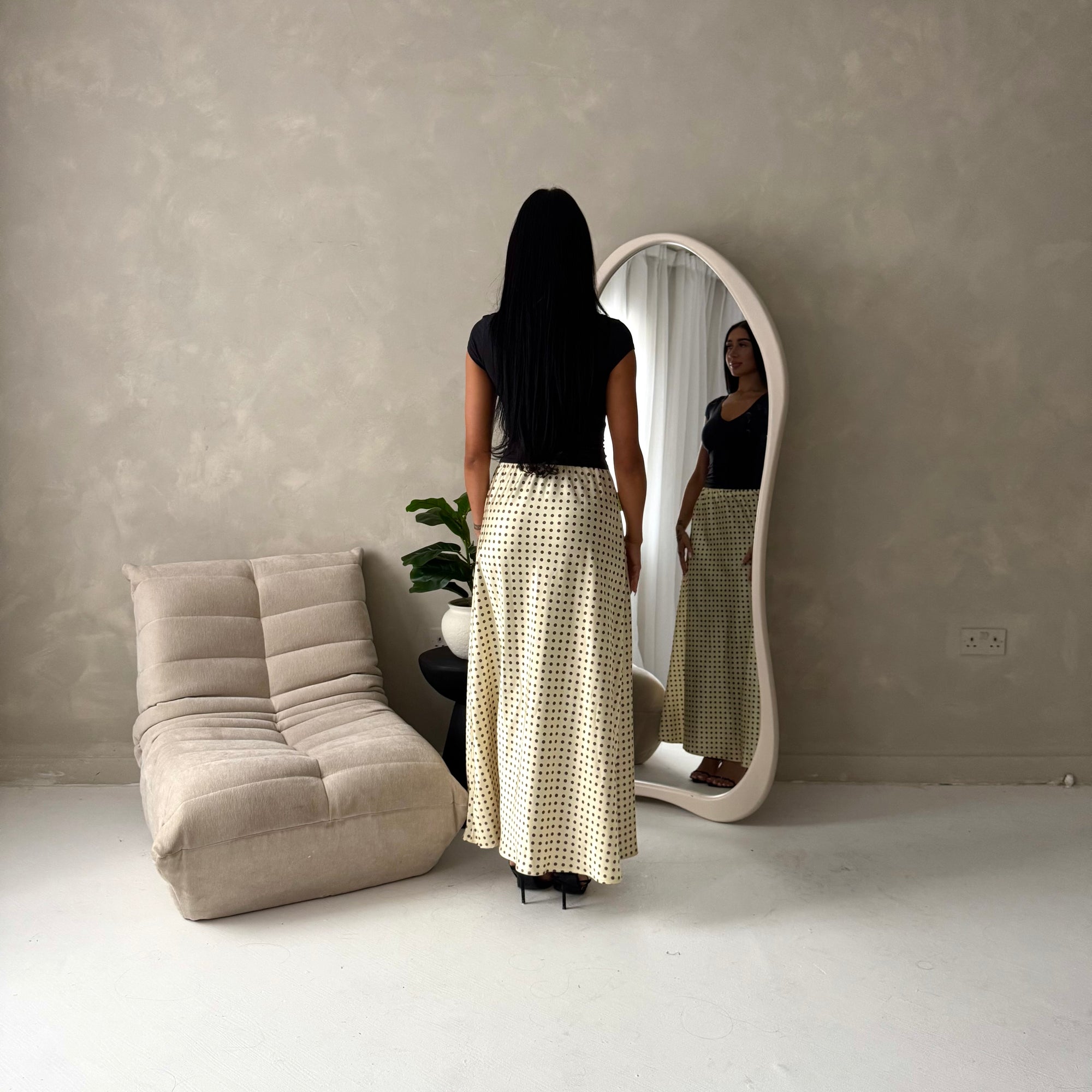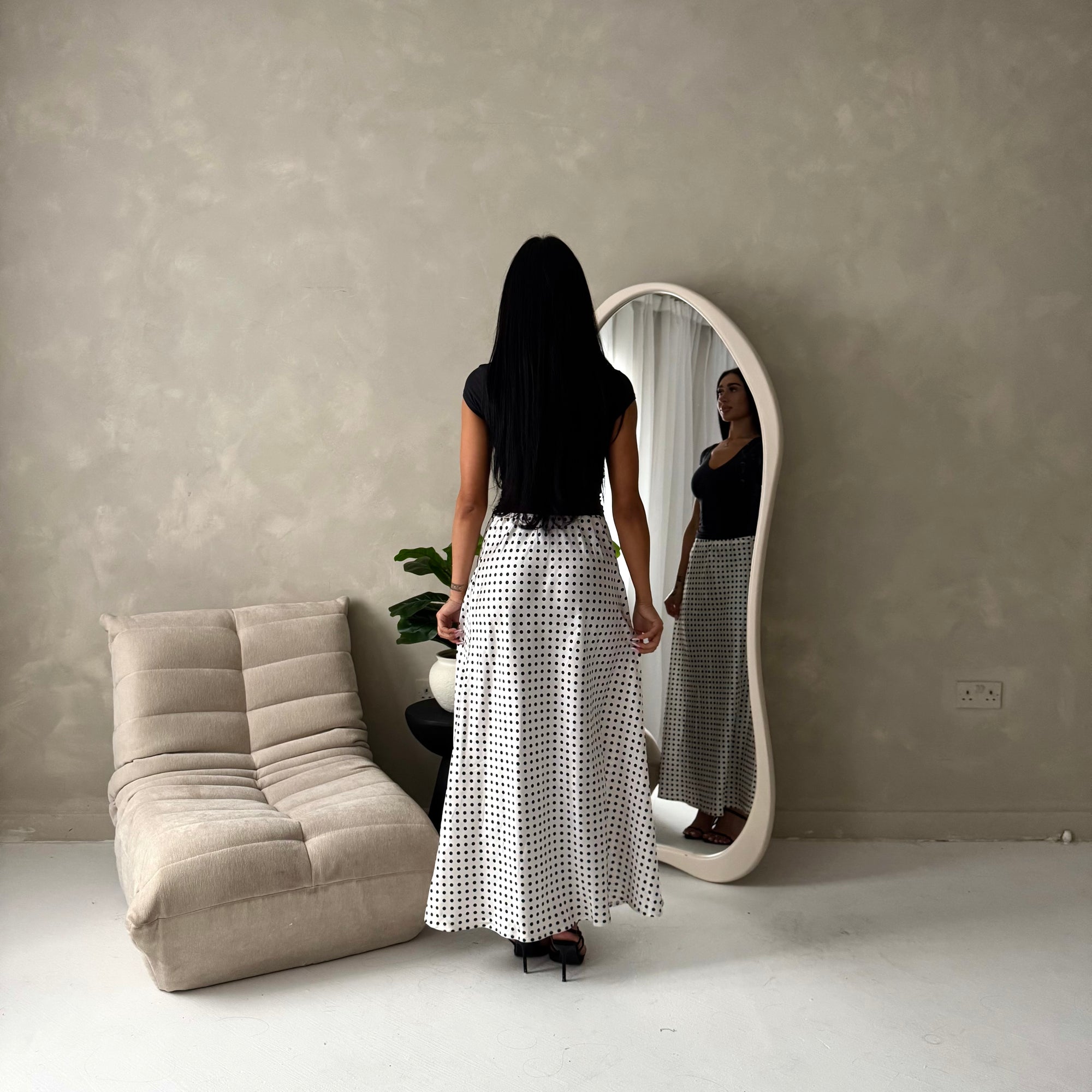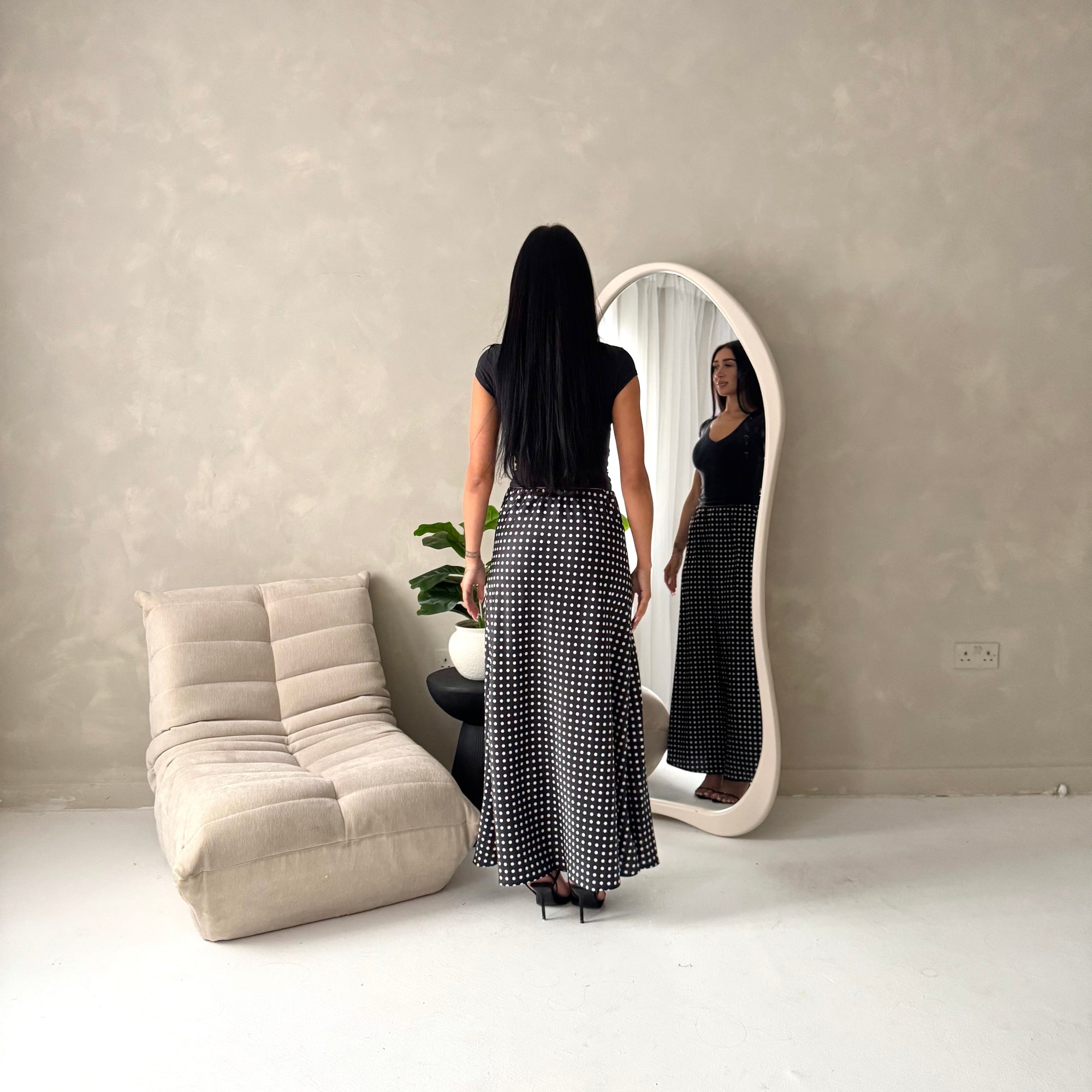 Irma Black Polka Dot Satin Skirt