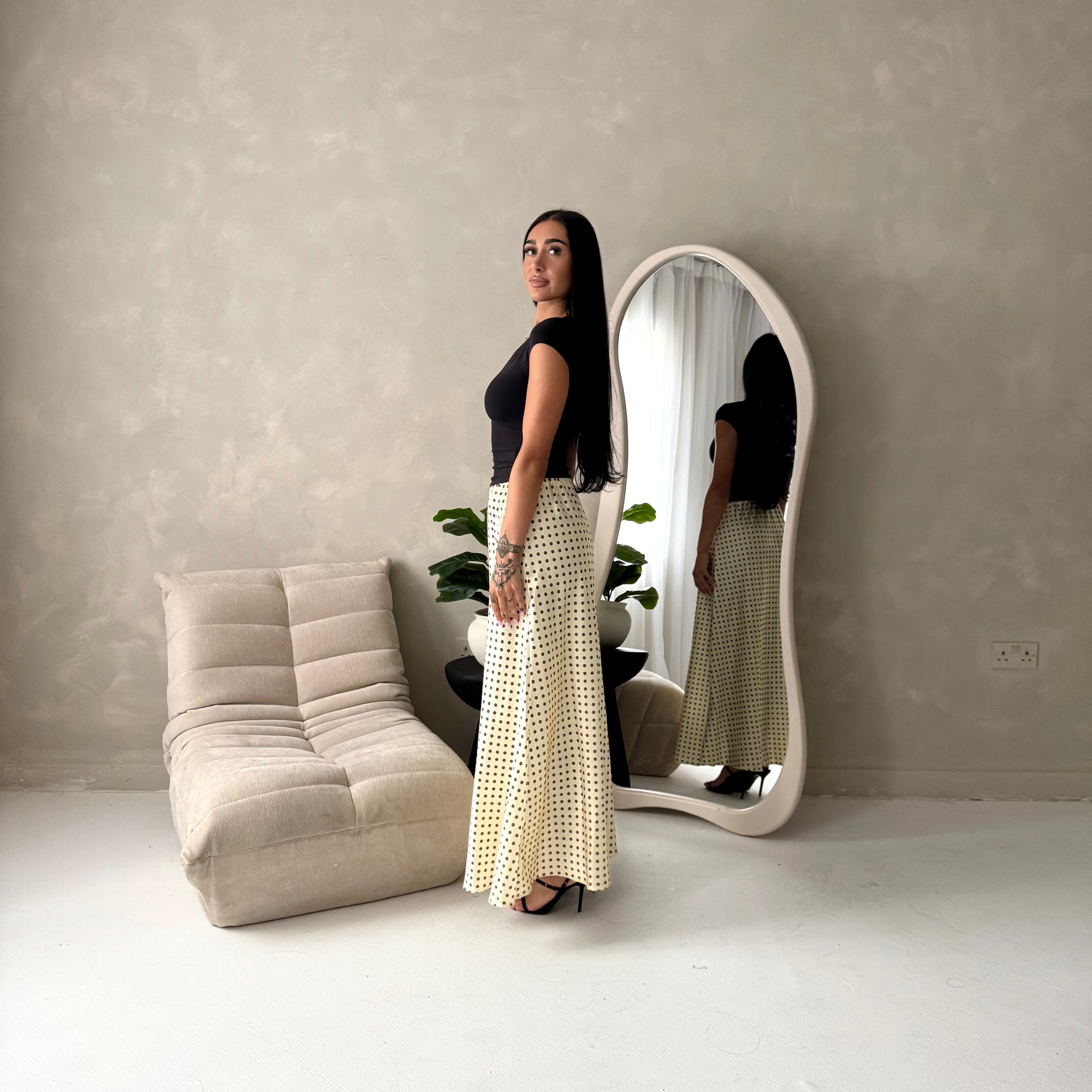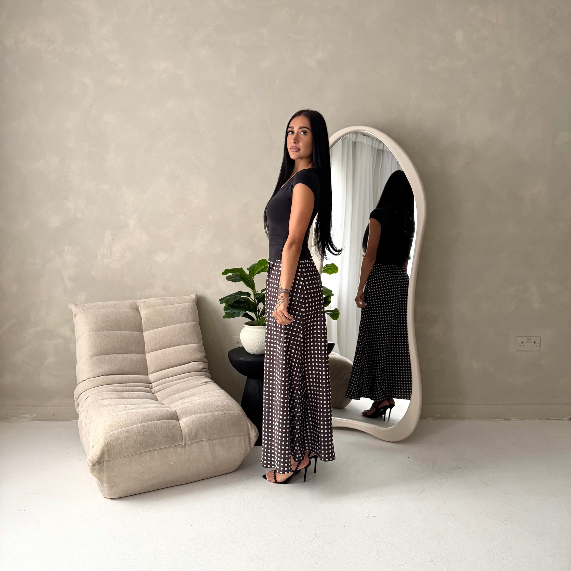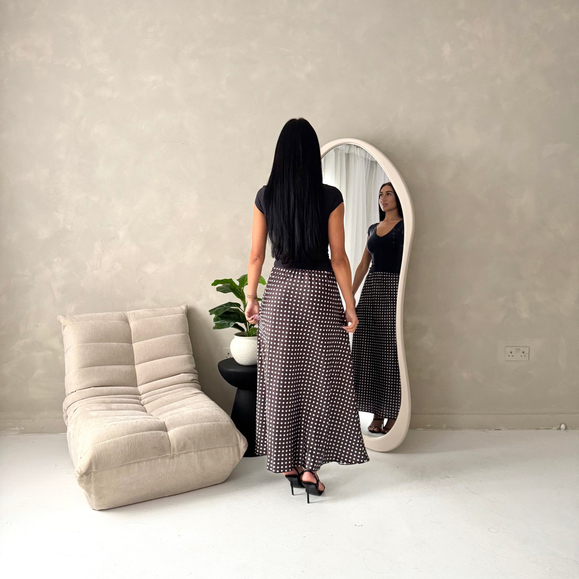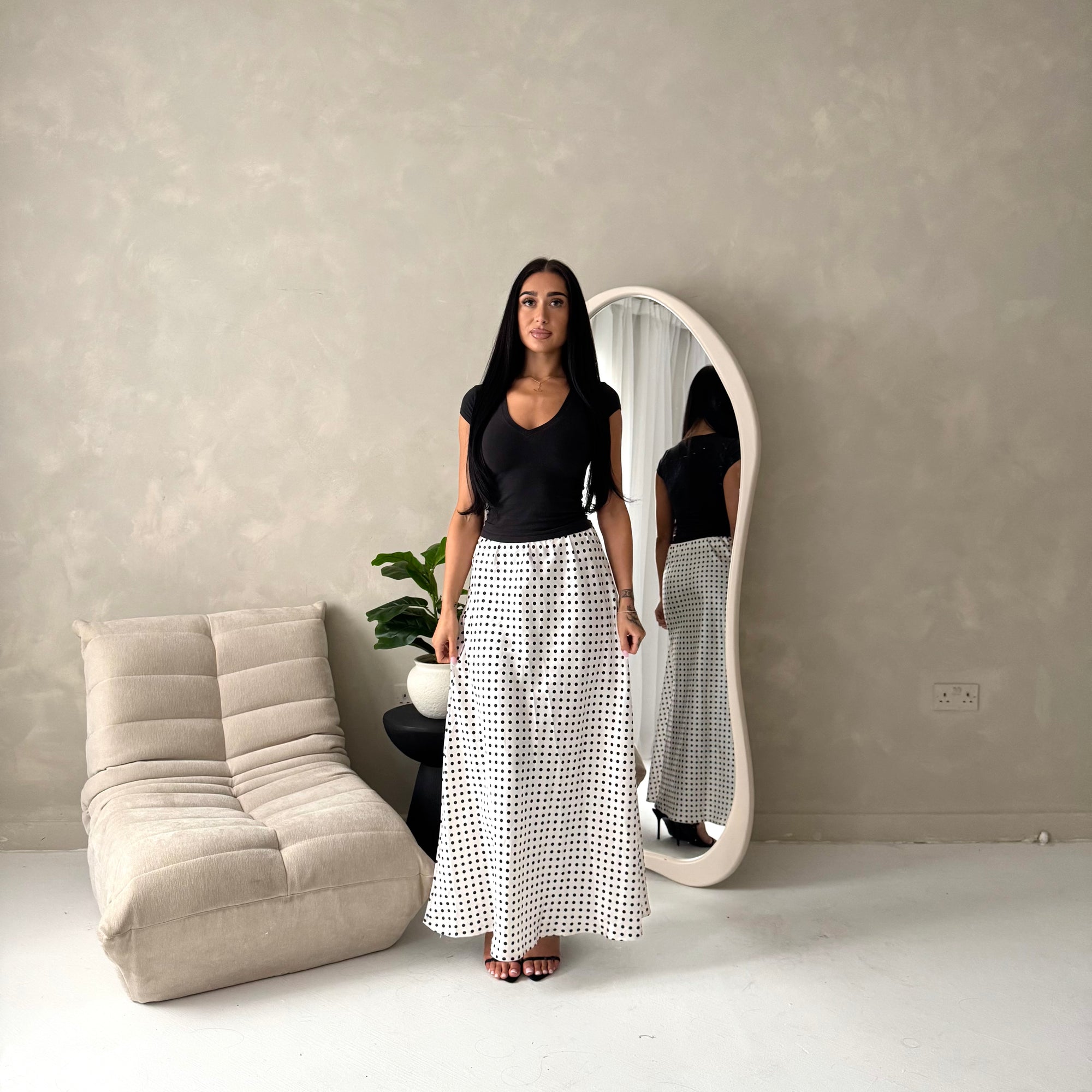 Irma Black Polka Dot Satin Skirt