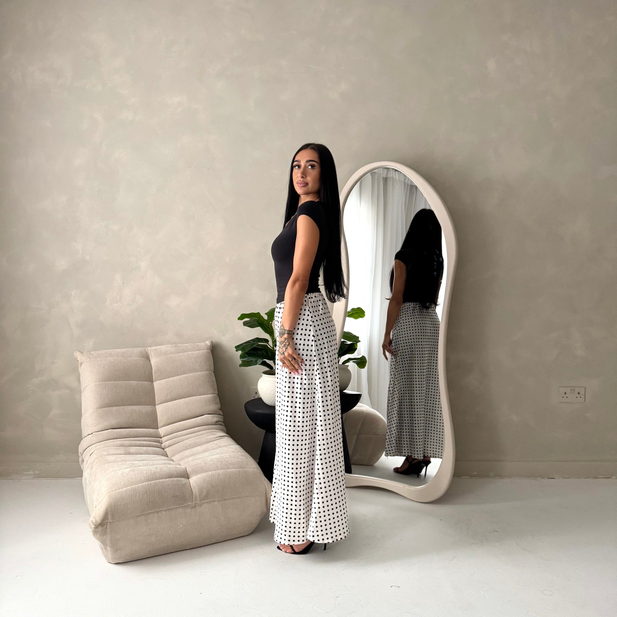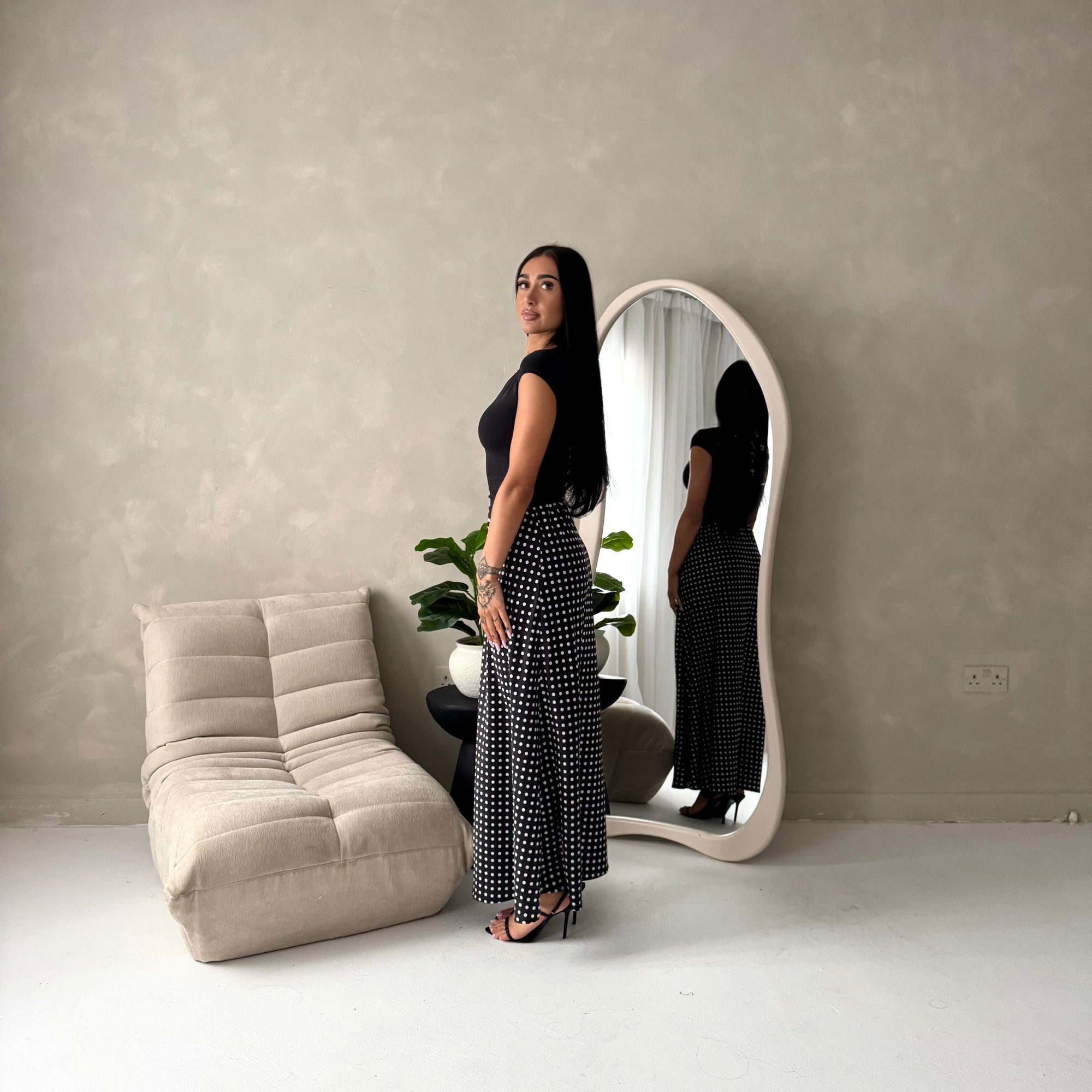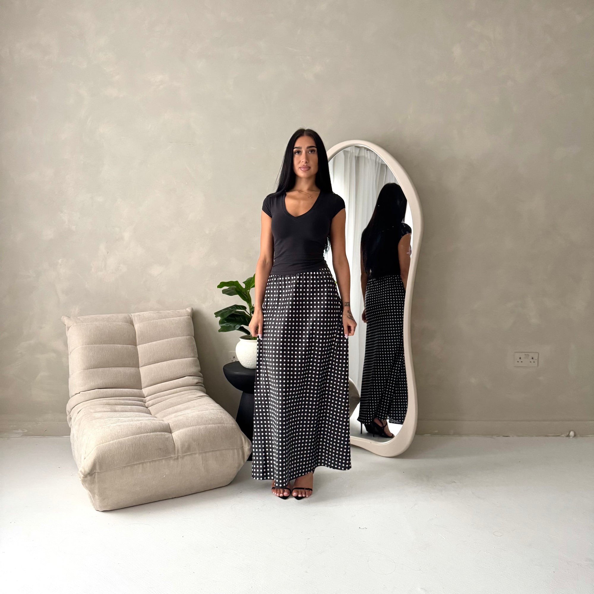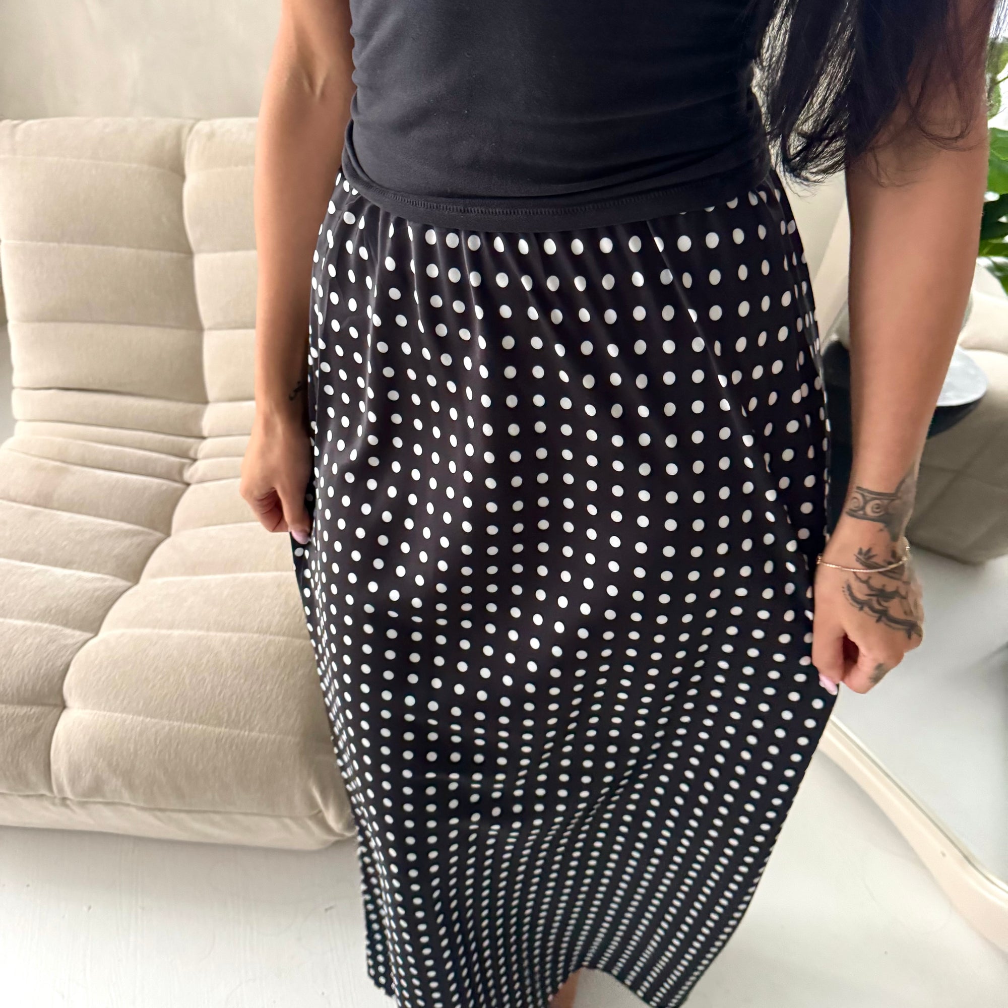 Irma Black Polka Dot Satin Skirt