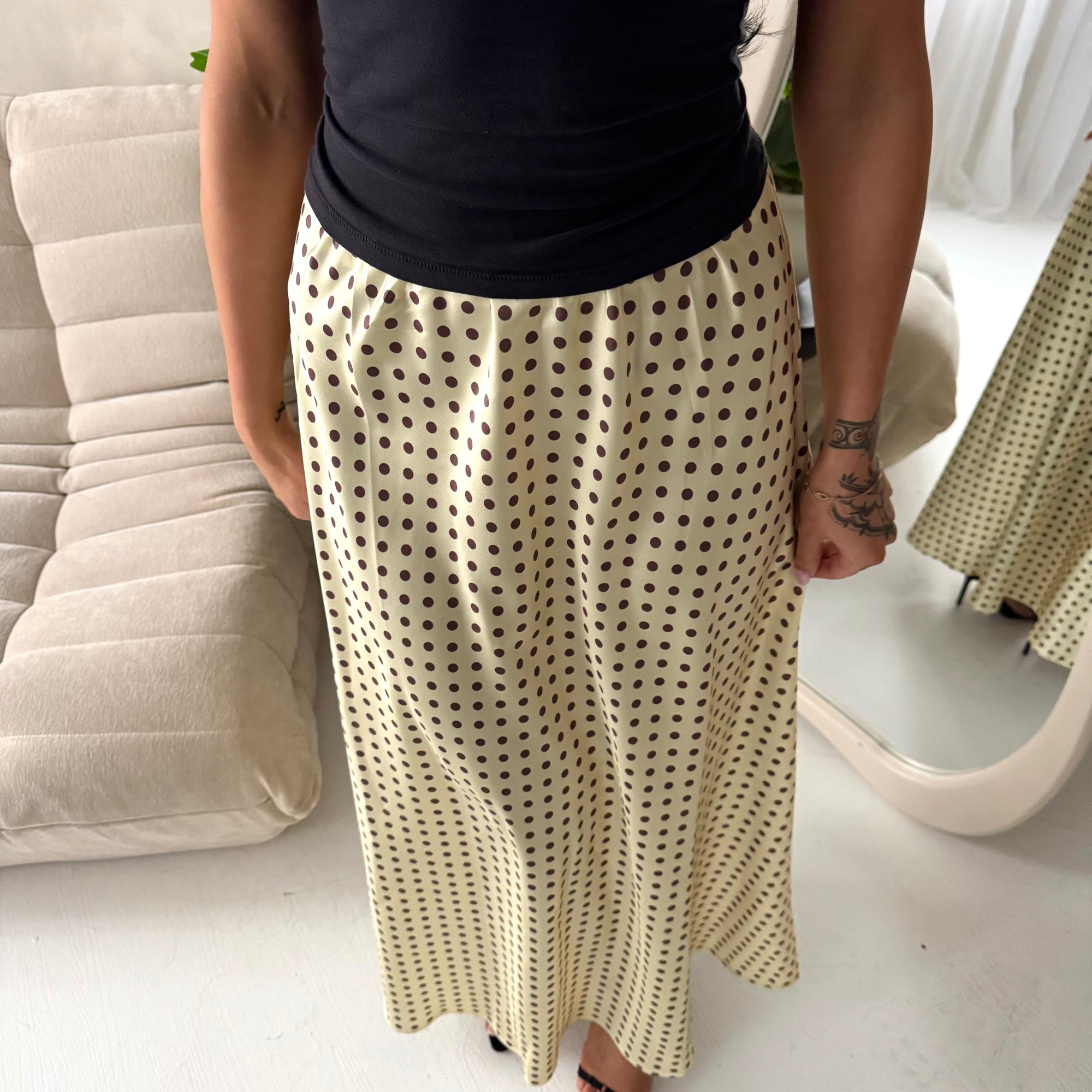 Irma Yellow Polka Dot Satin Skirt