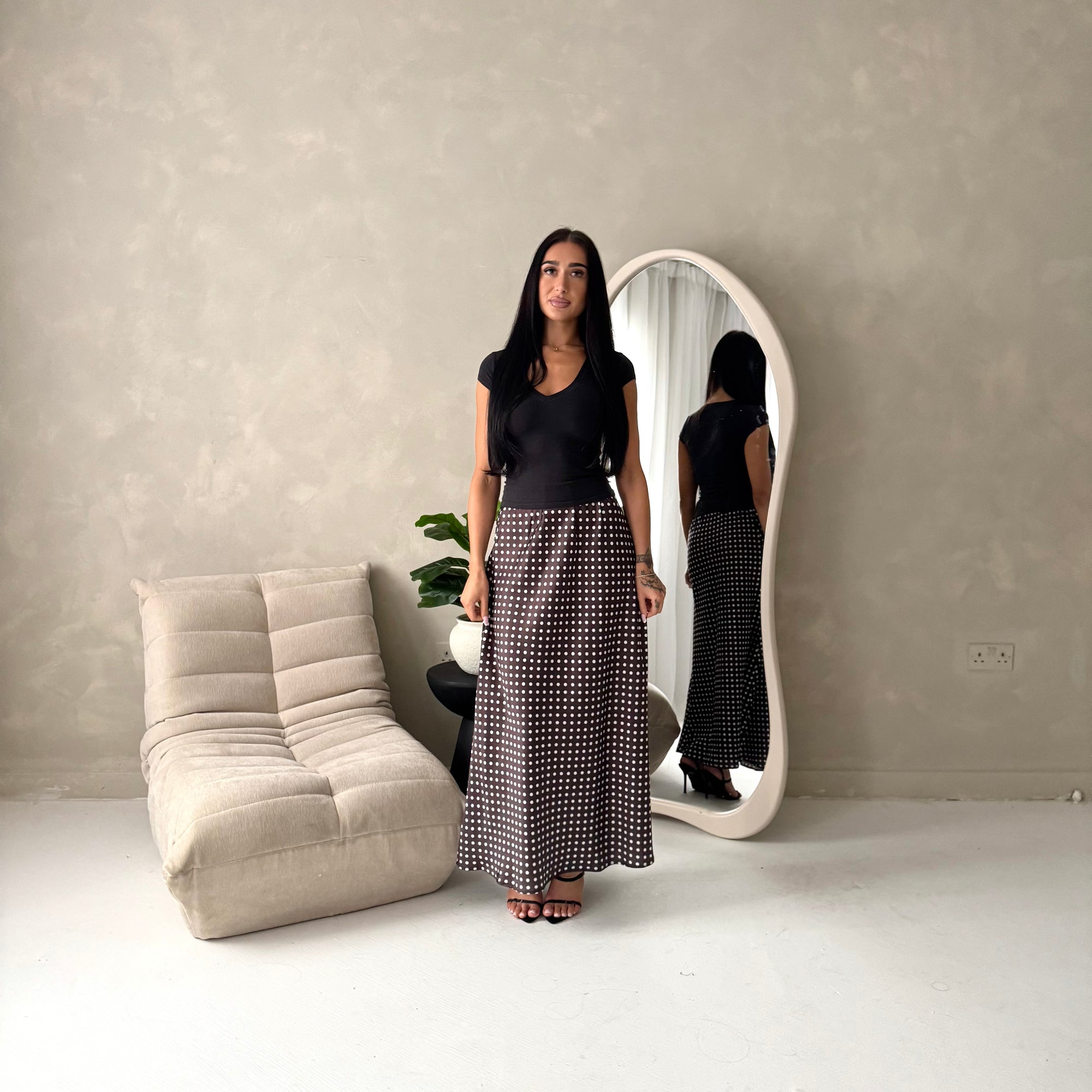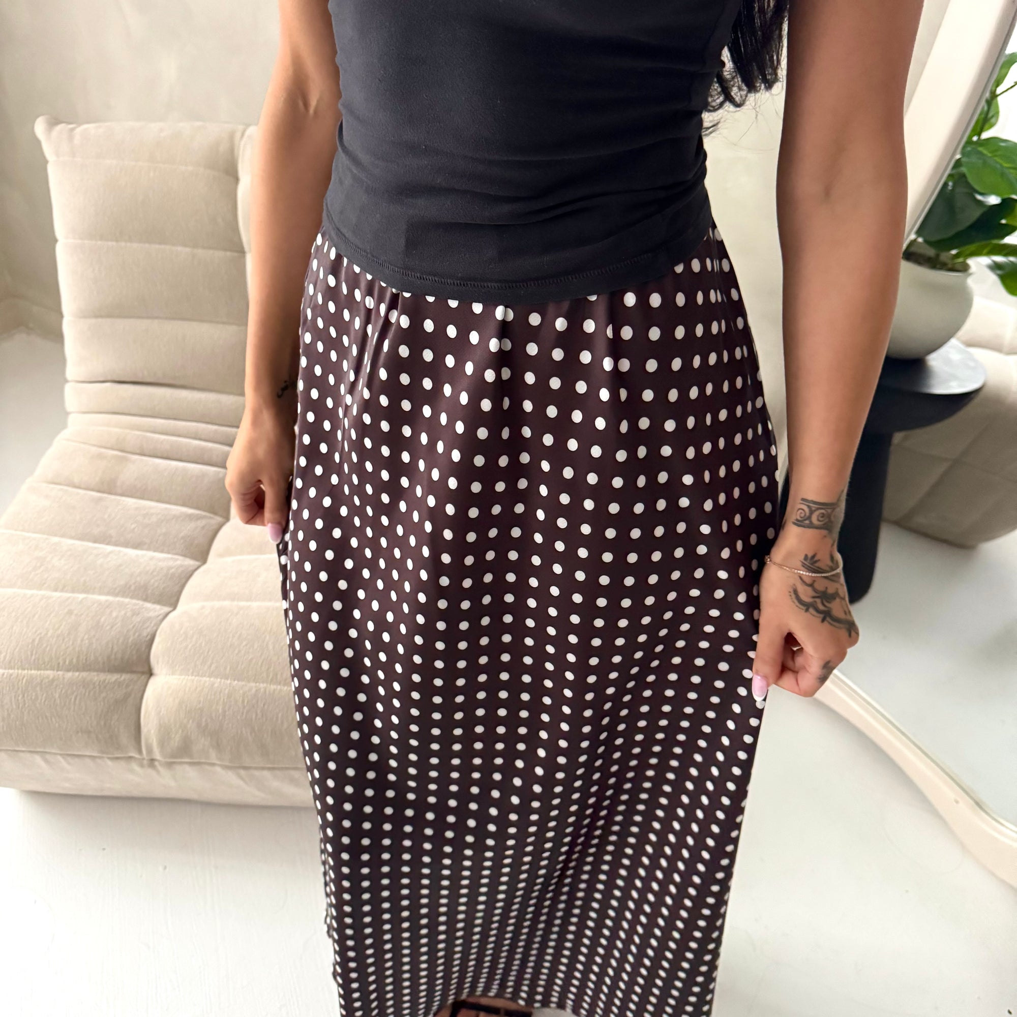 Irma Brown Polka Dot Satin Skirt