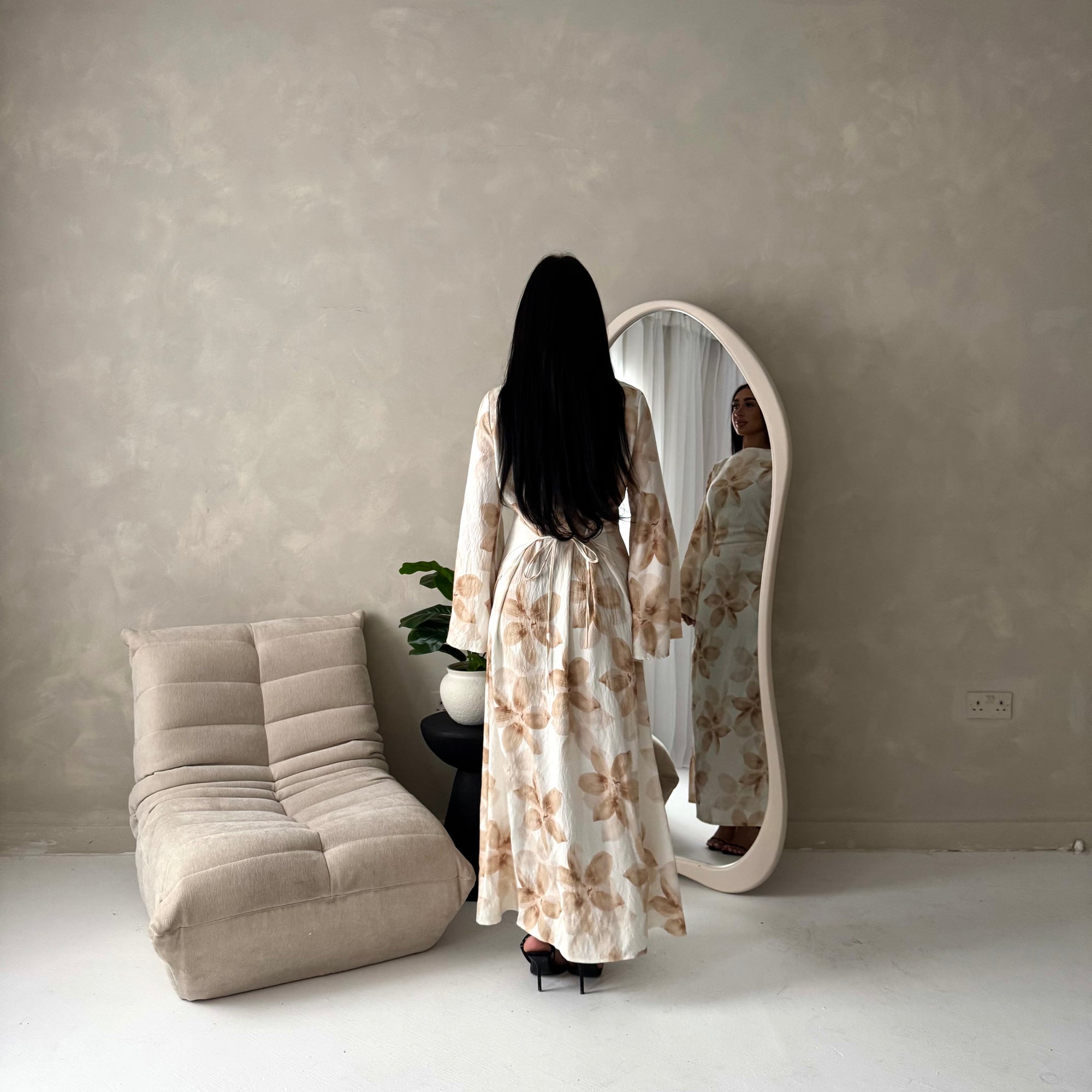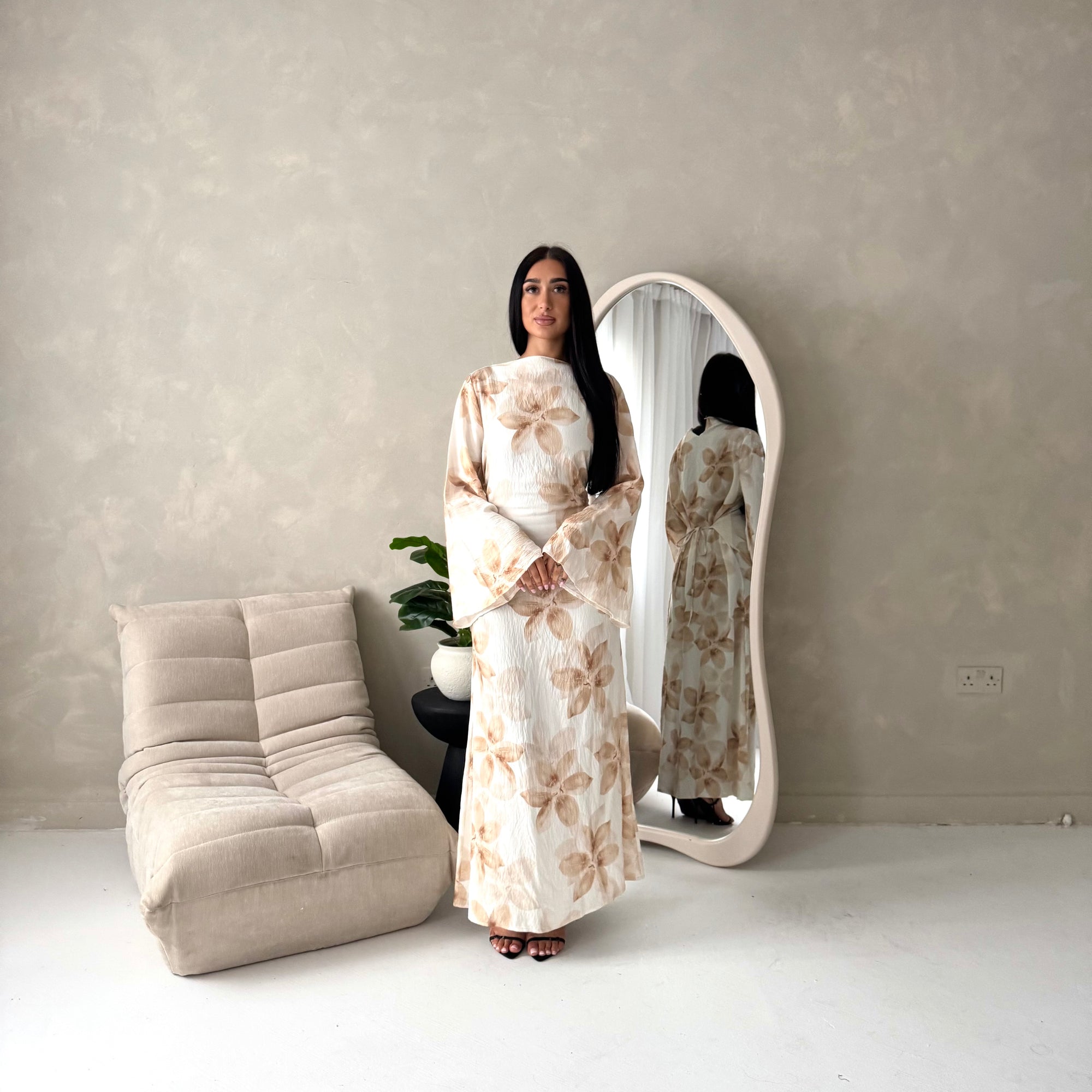 Geri Cream Linen Floral Summer Modest Dress