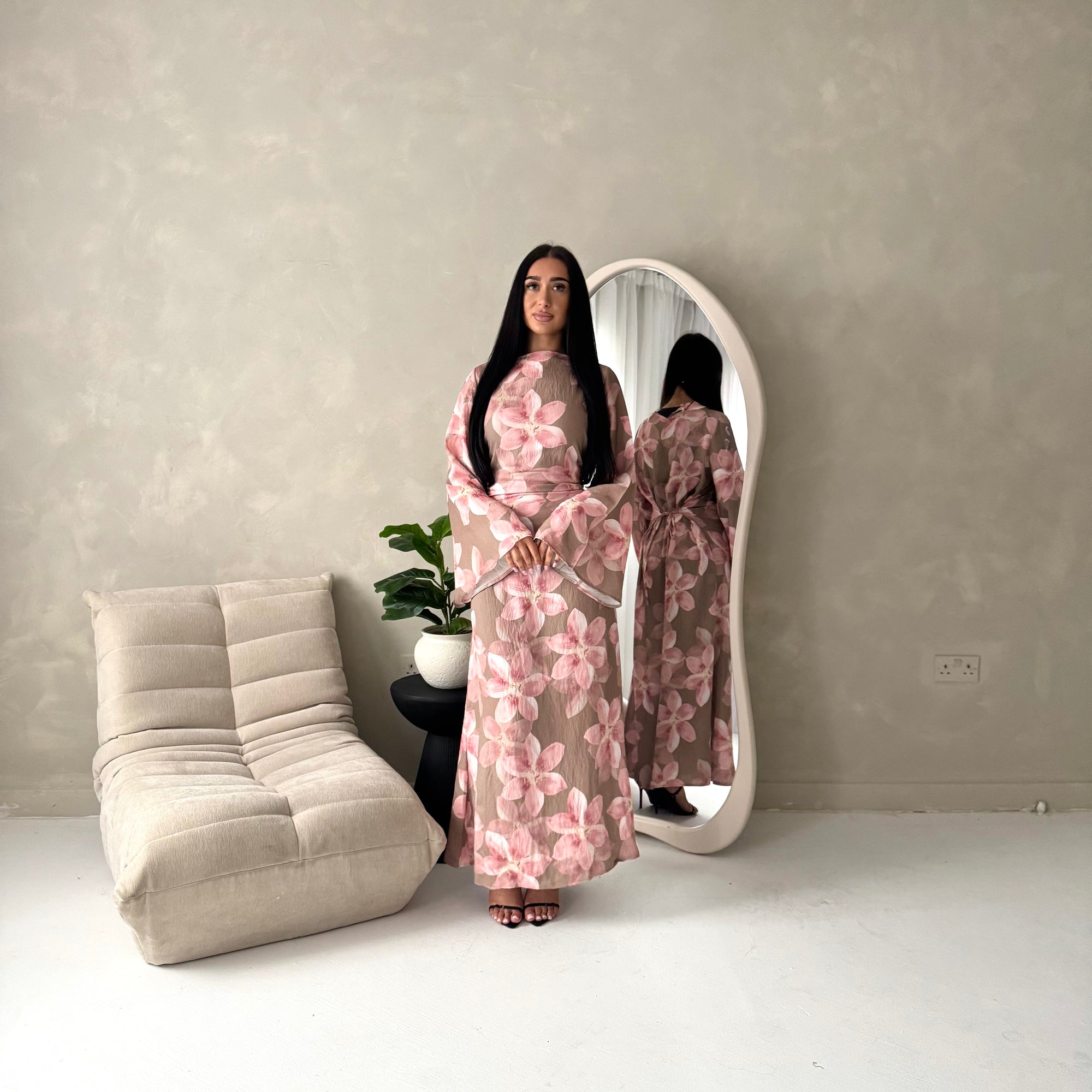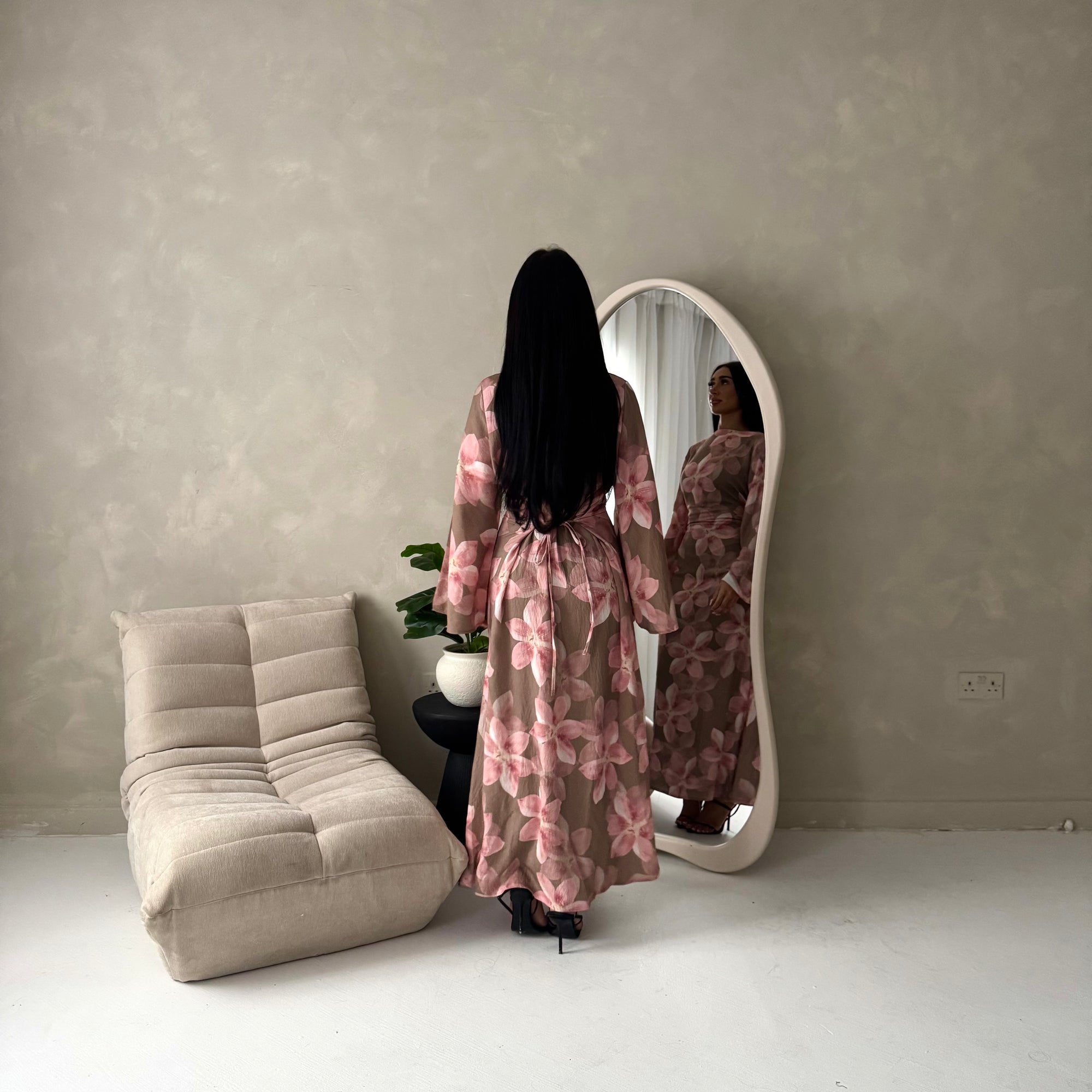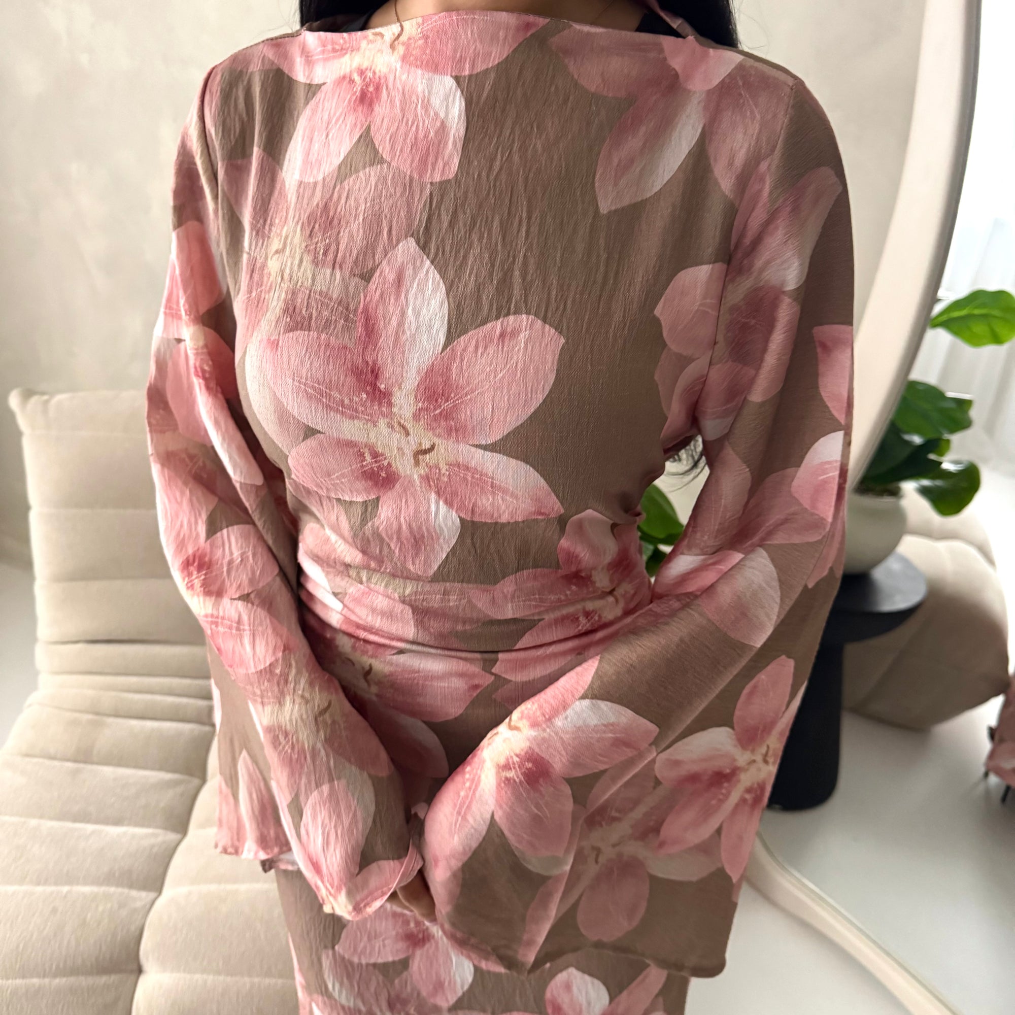 Geri Mocha Linen Floral Summer Modest Dress