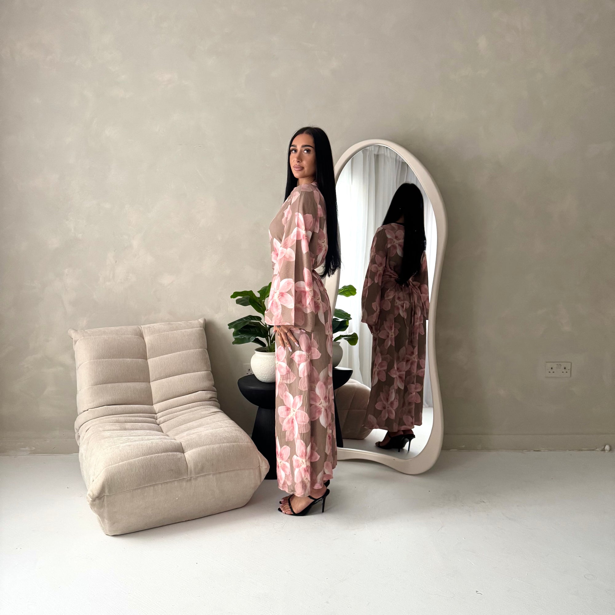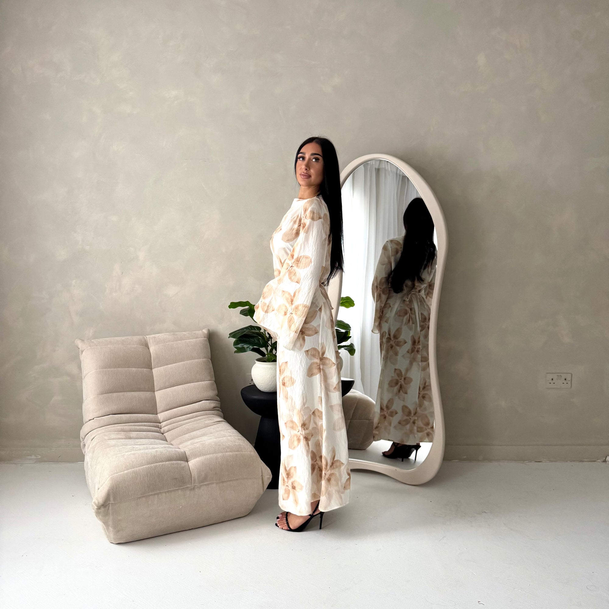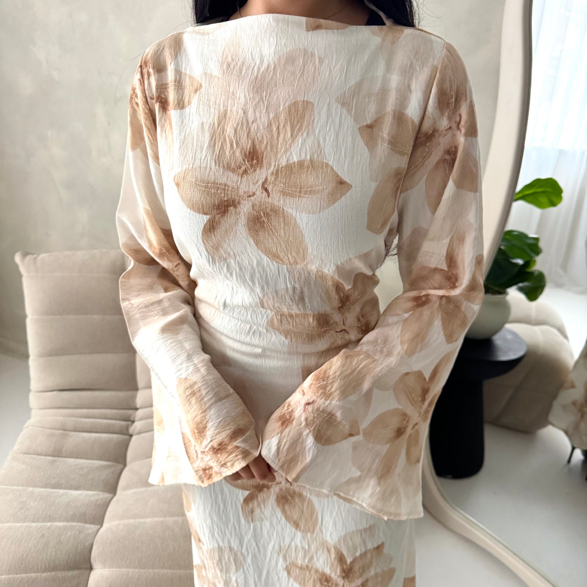 Geri Mocha Linen Floral Summer Modest Dress
