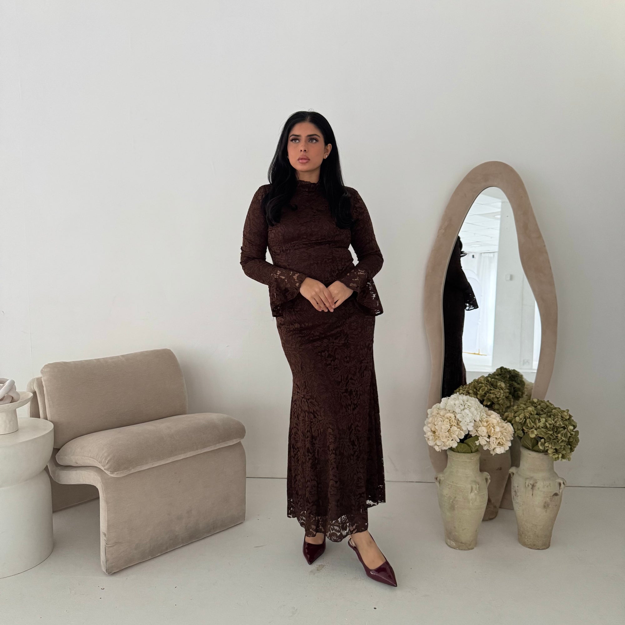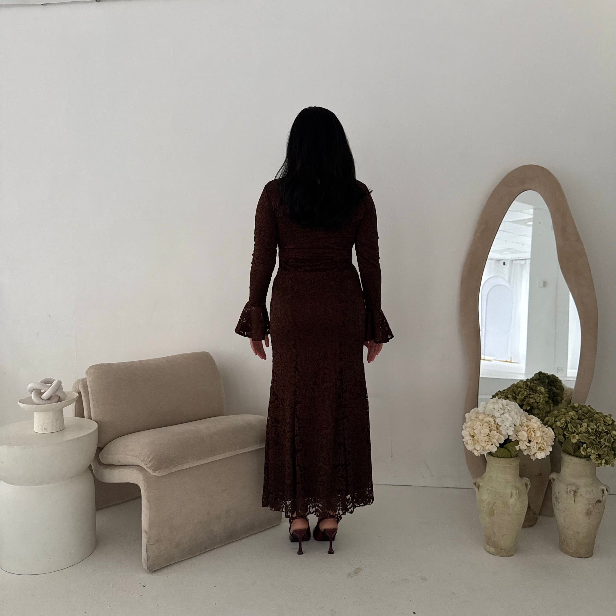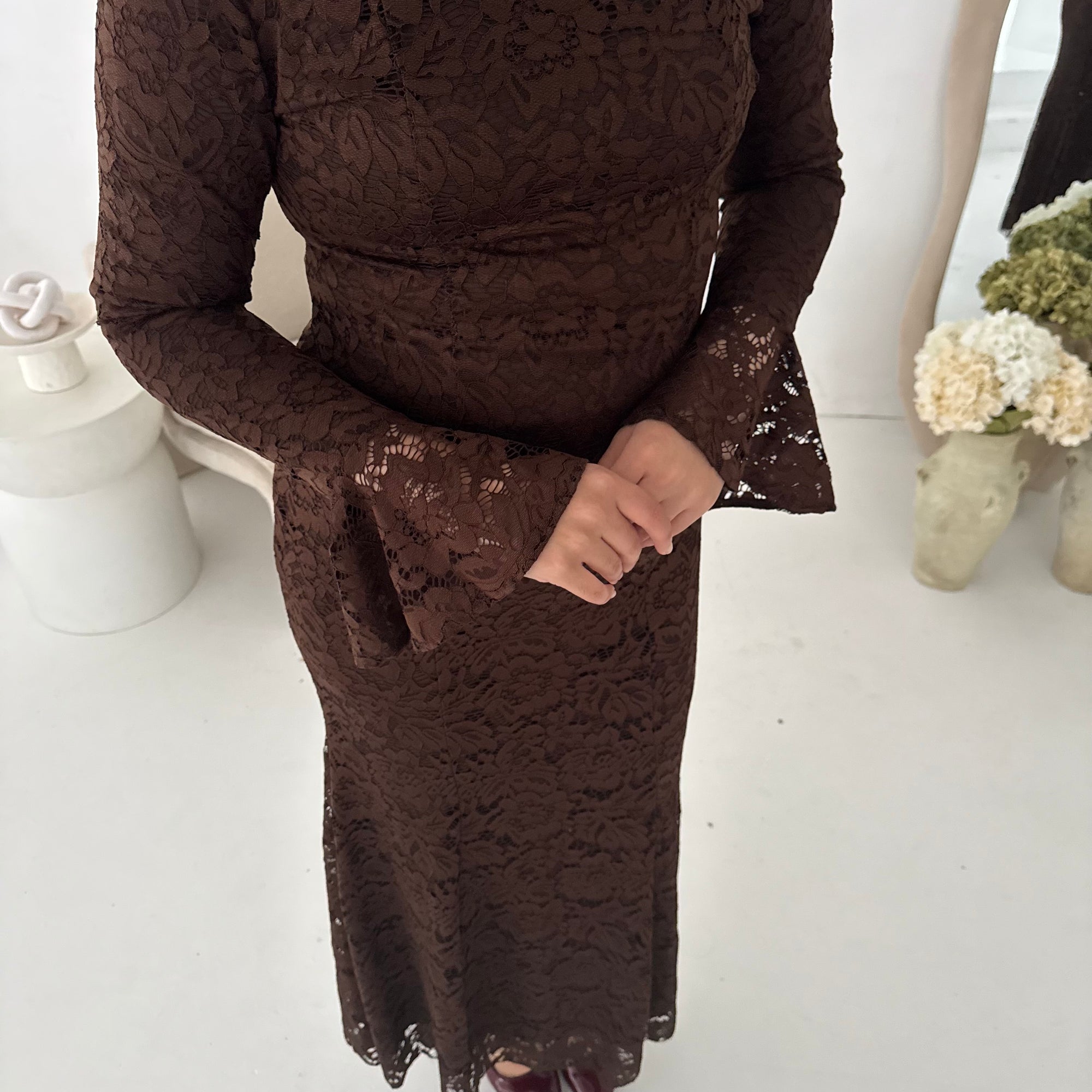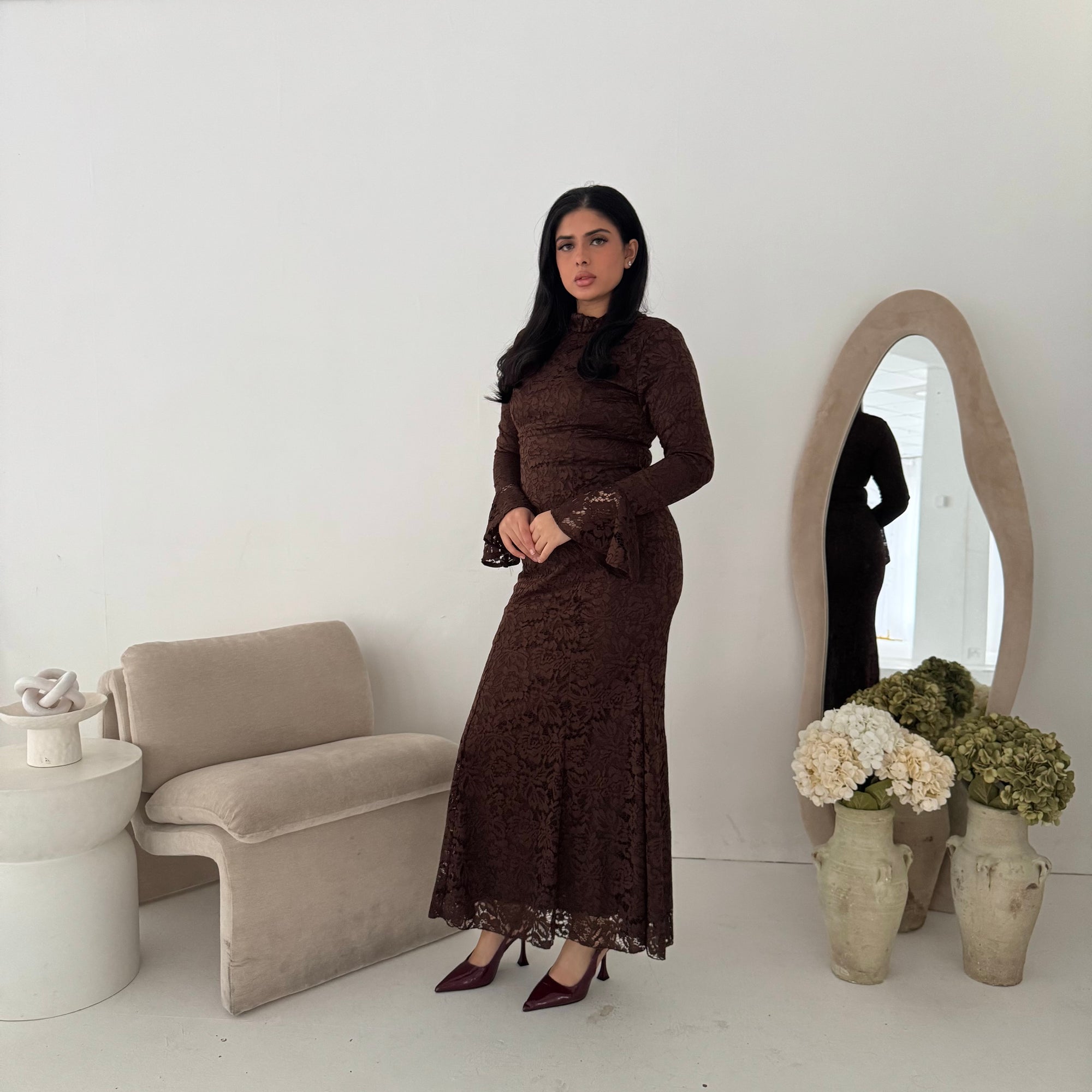 Aria Brown Lace Turtle Neck Lined Dress