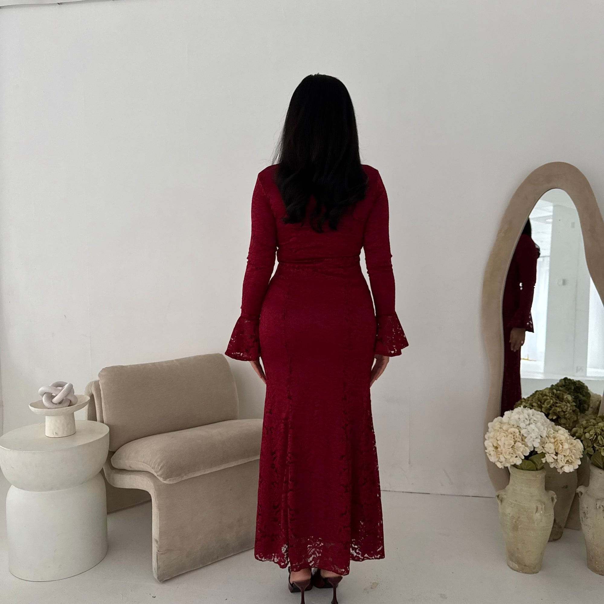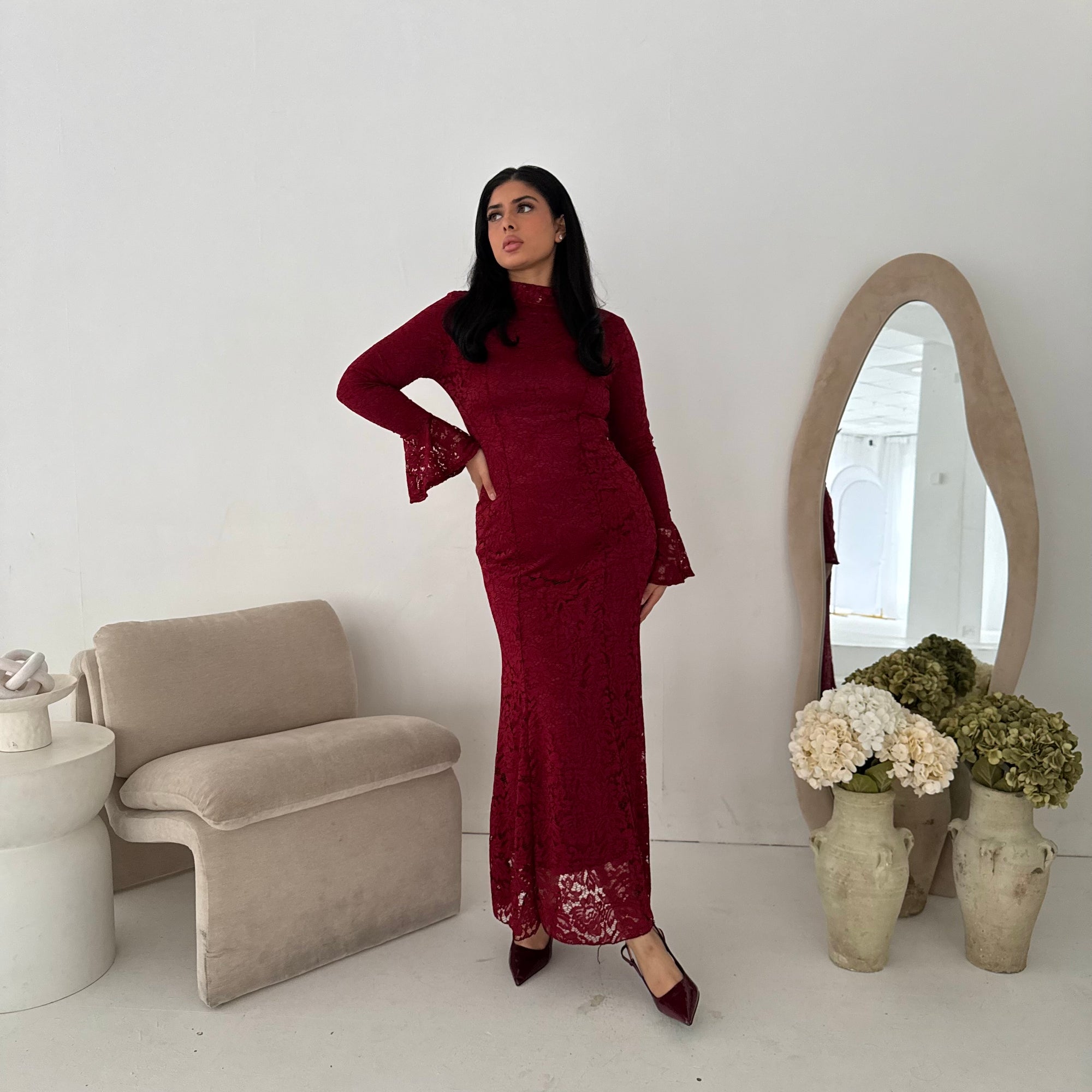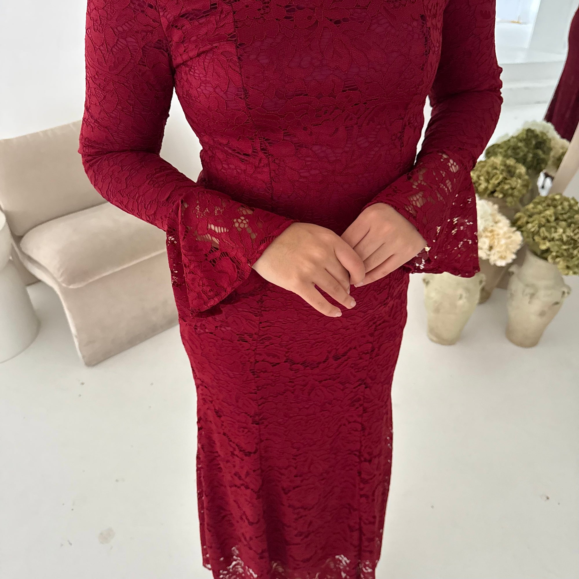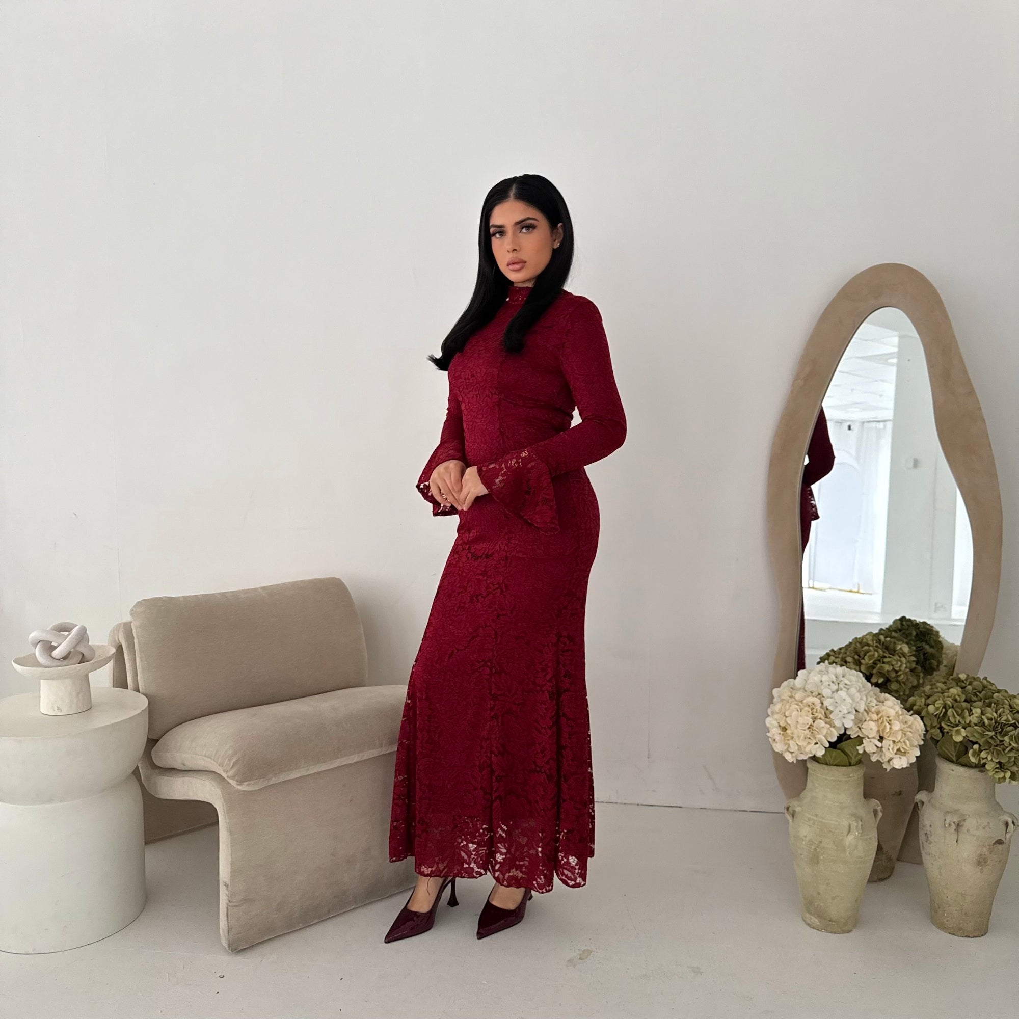 Aria Wine Lace Turtle Neck Lined Dress