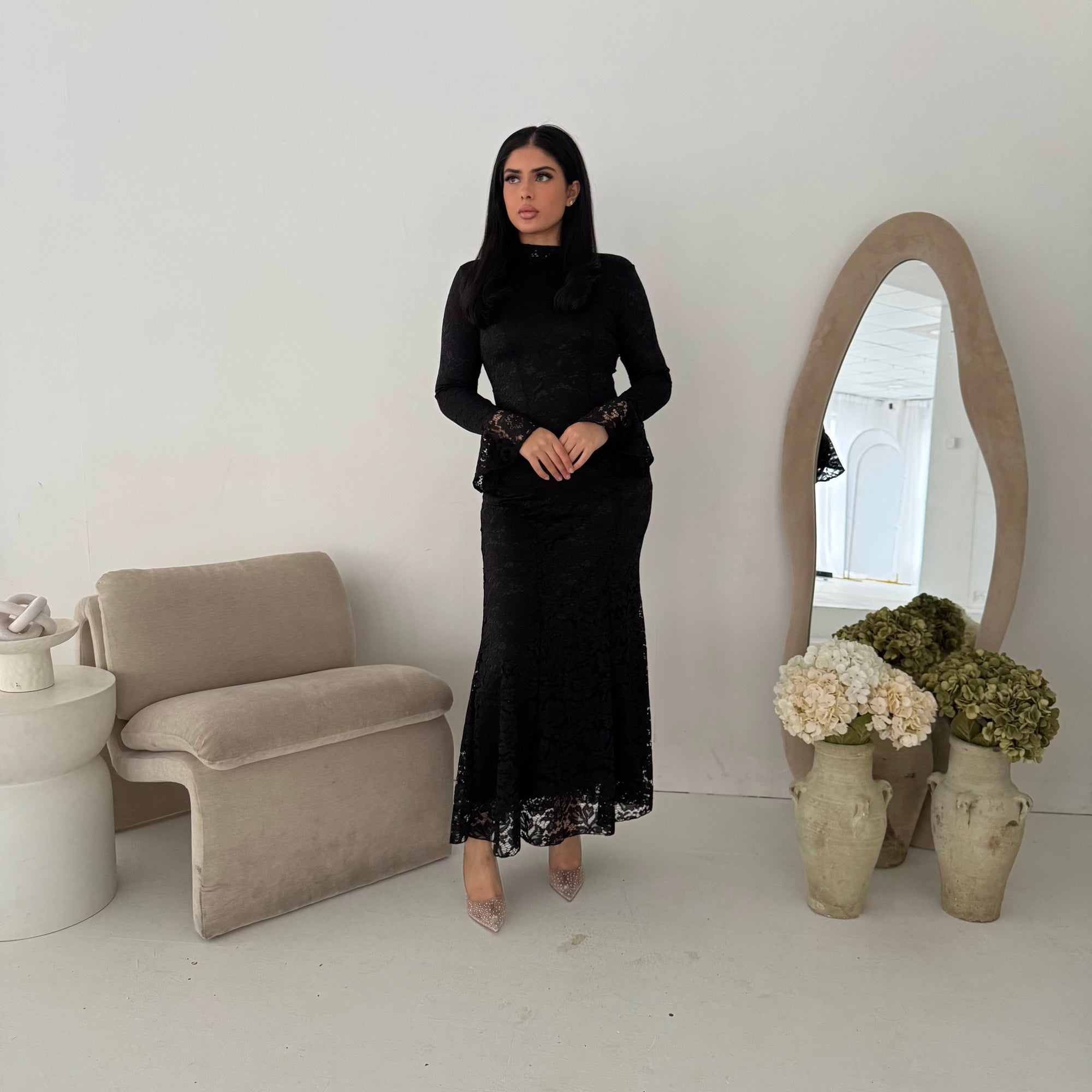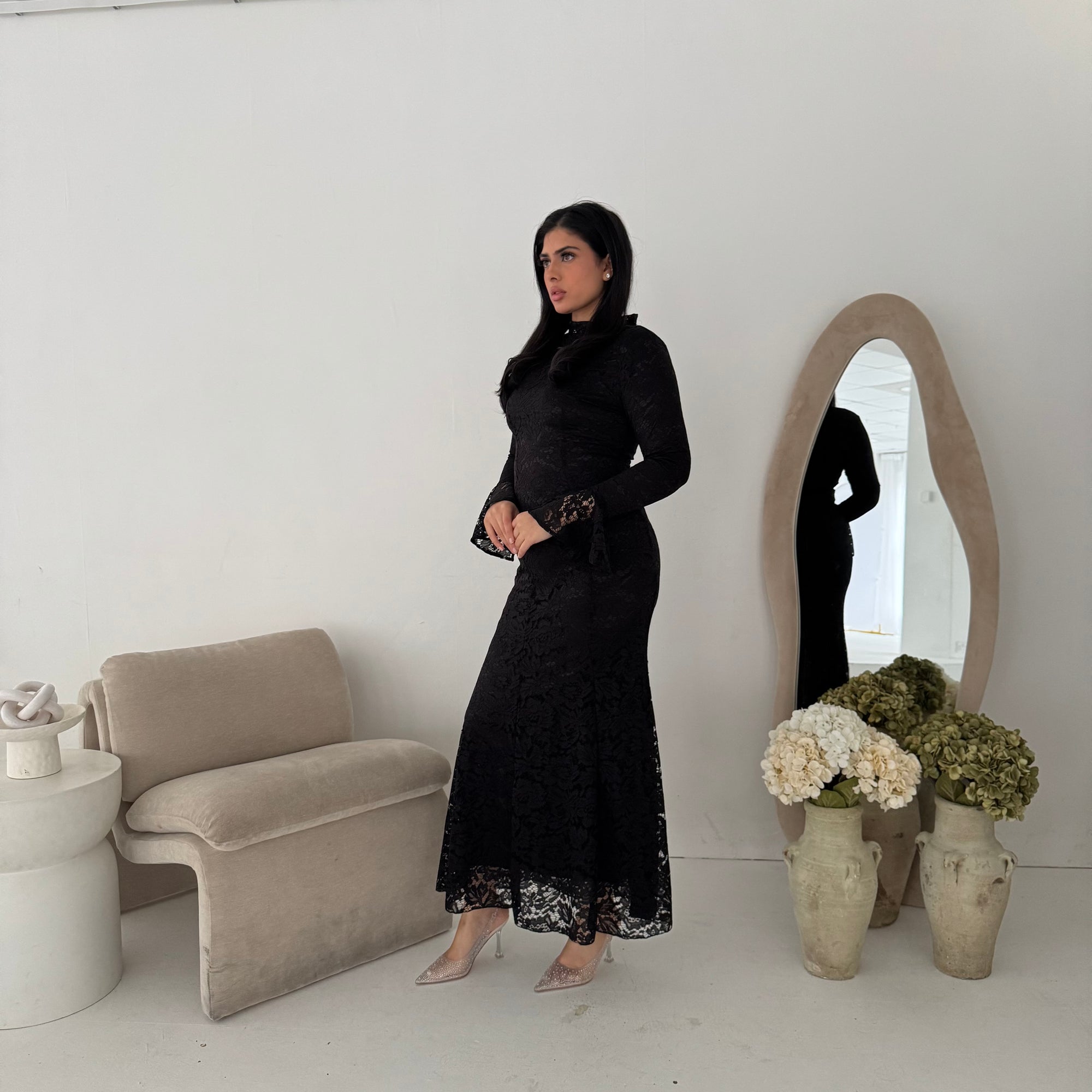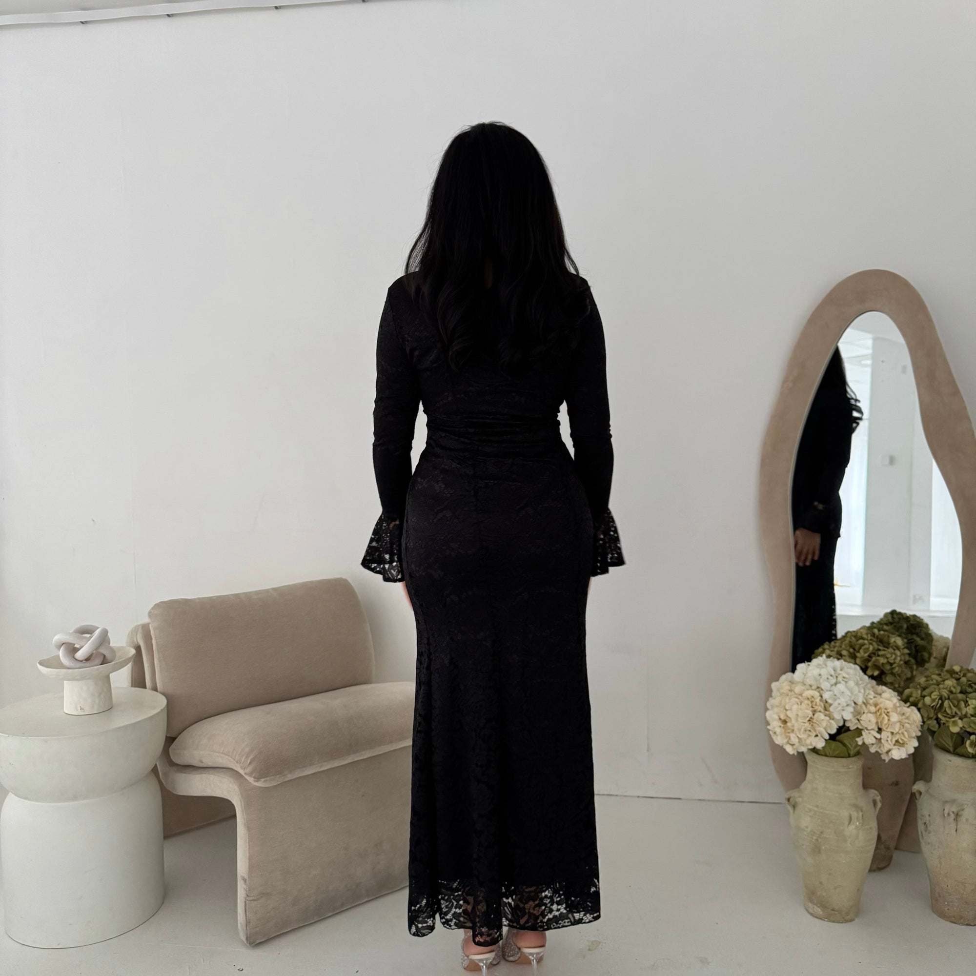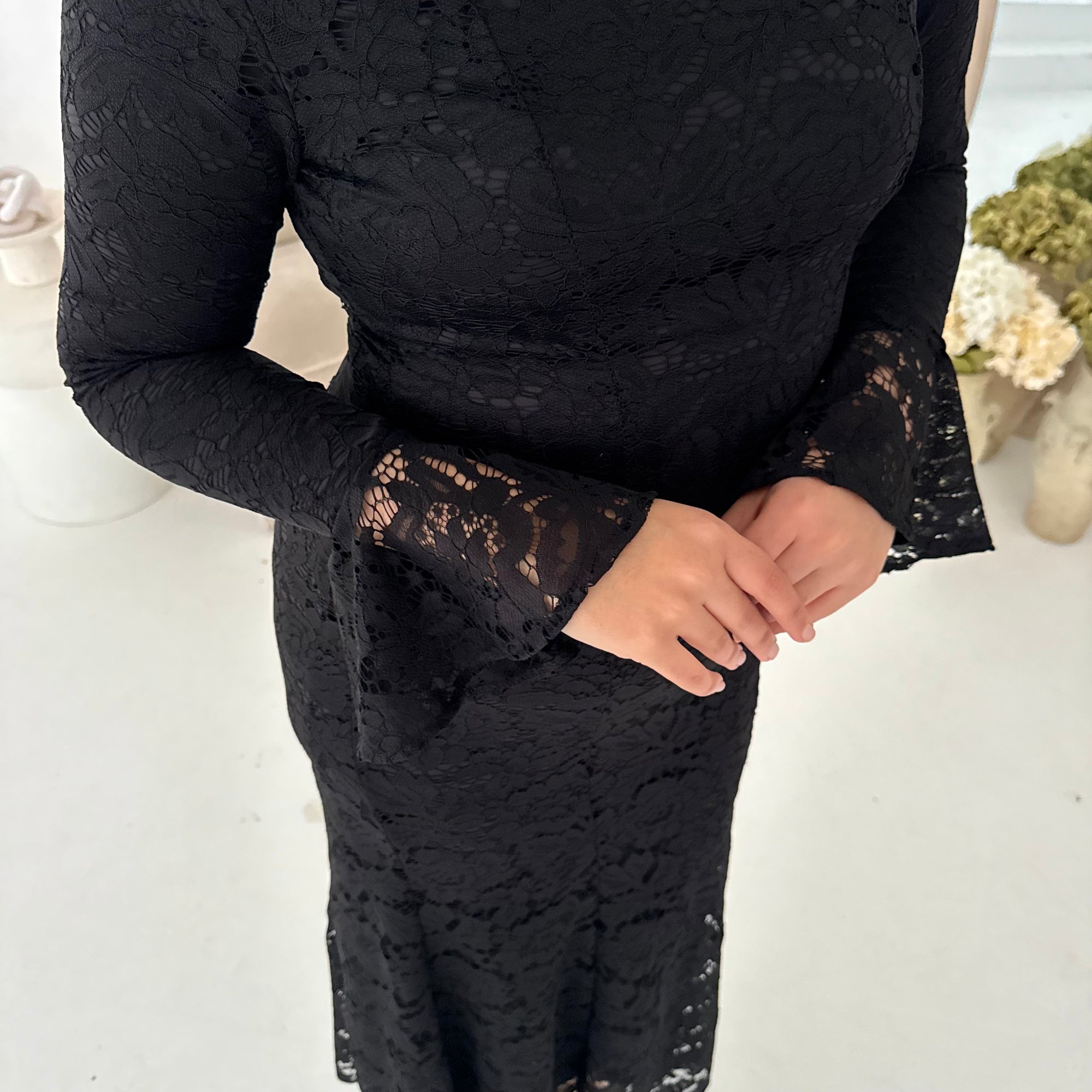 Aria Black Lace Turtle Neck Lined Dress