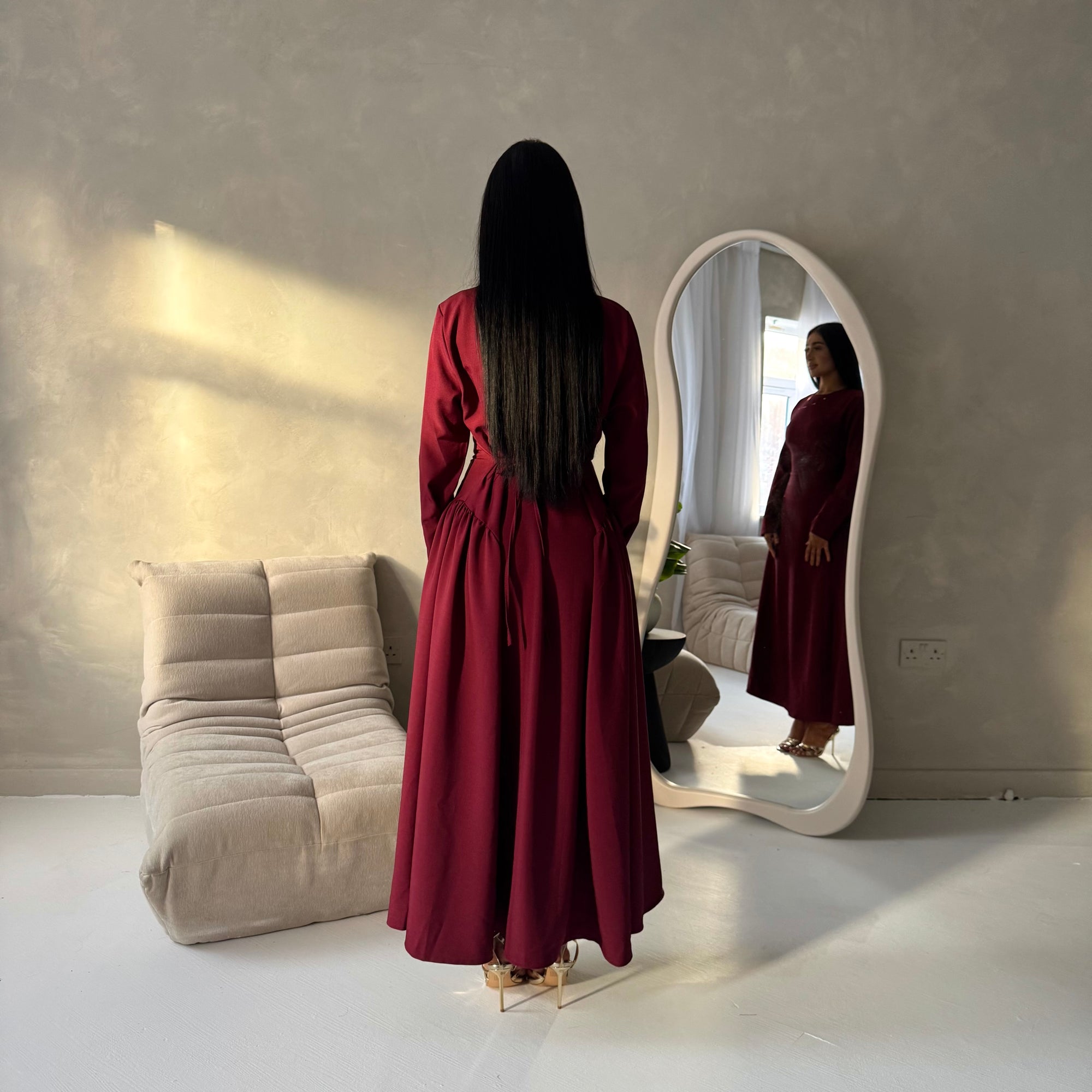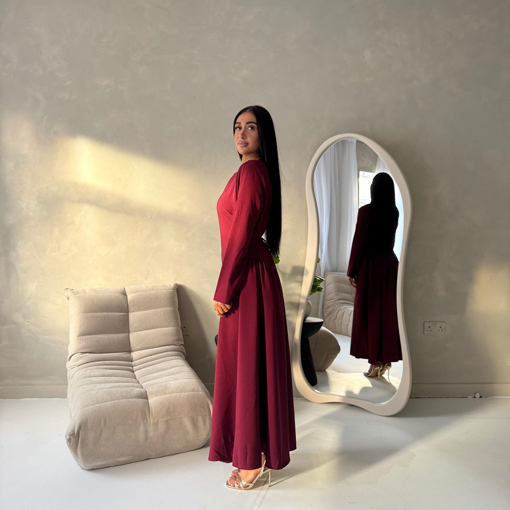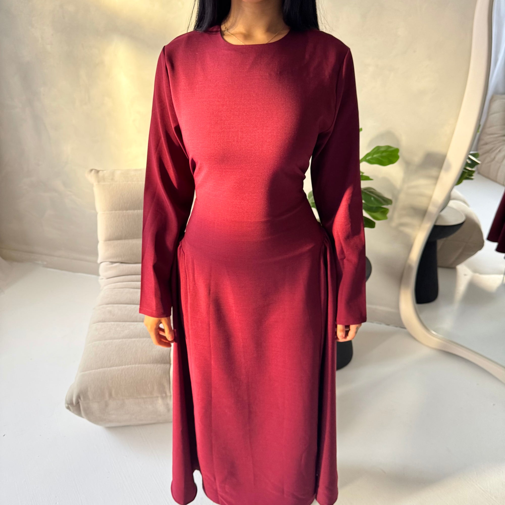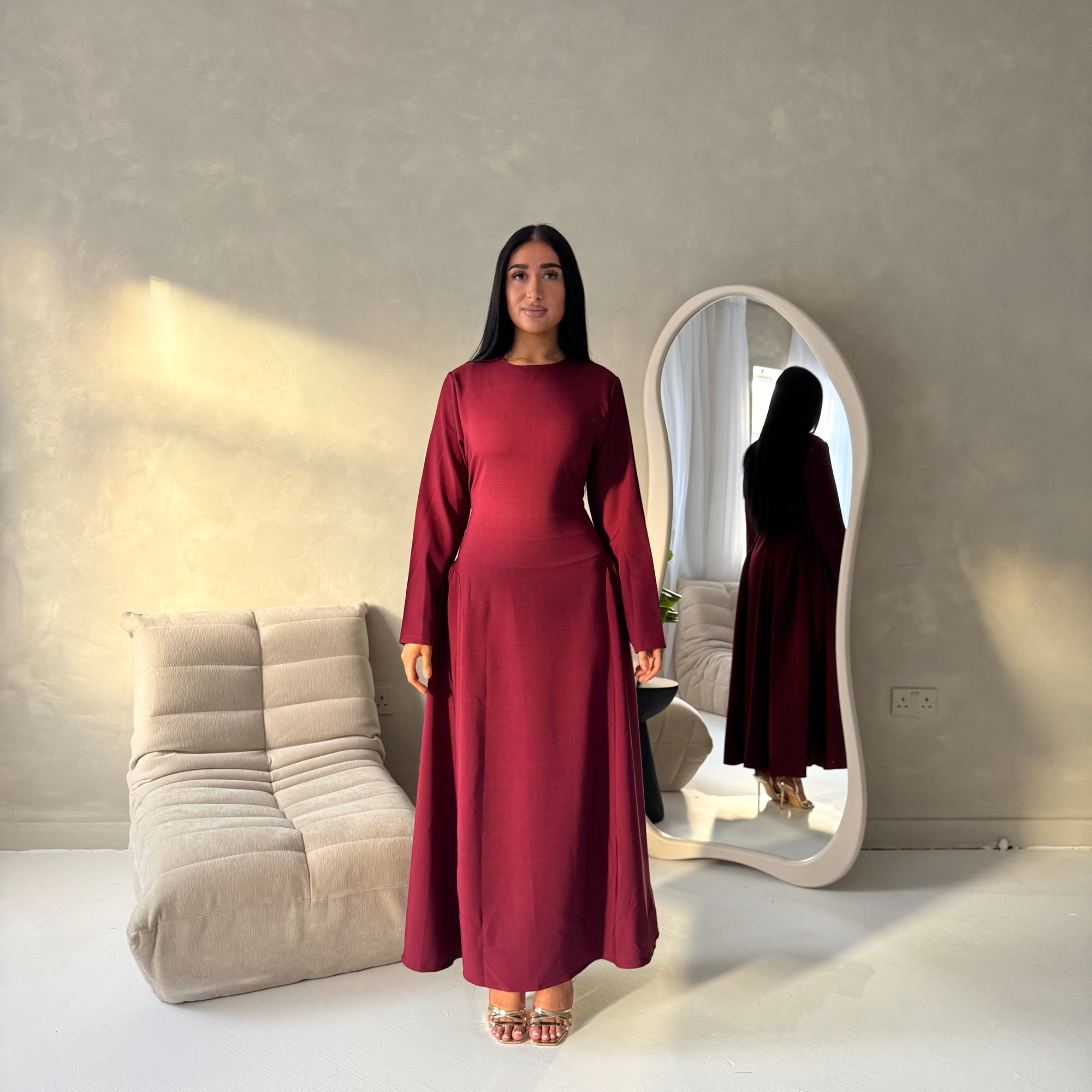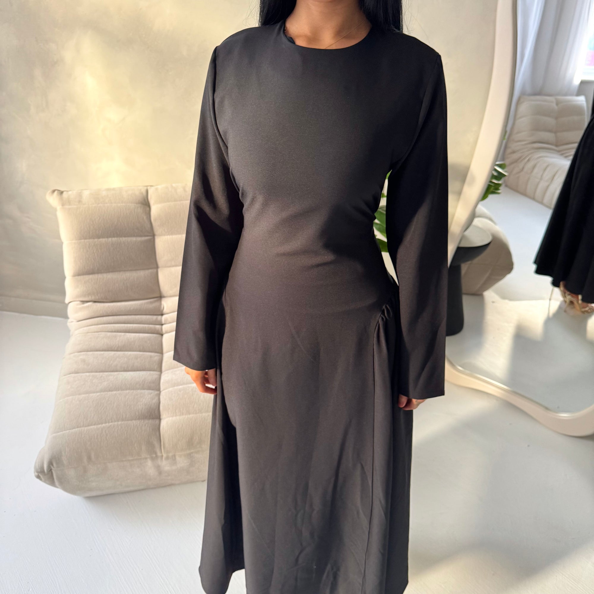 Marnia Mocha A Line Tie Back Side Gather Dress