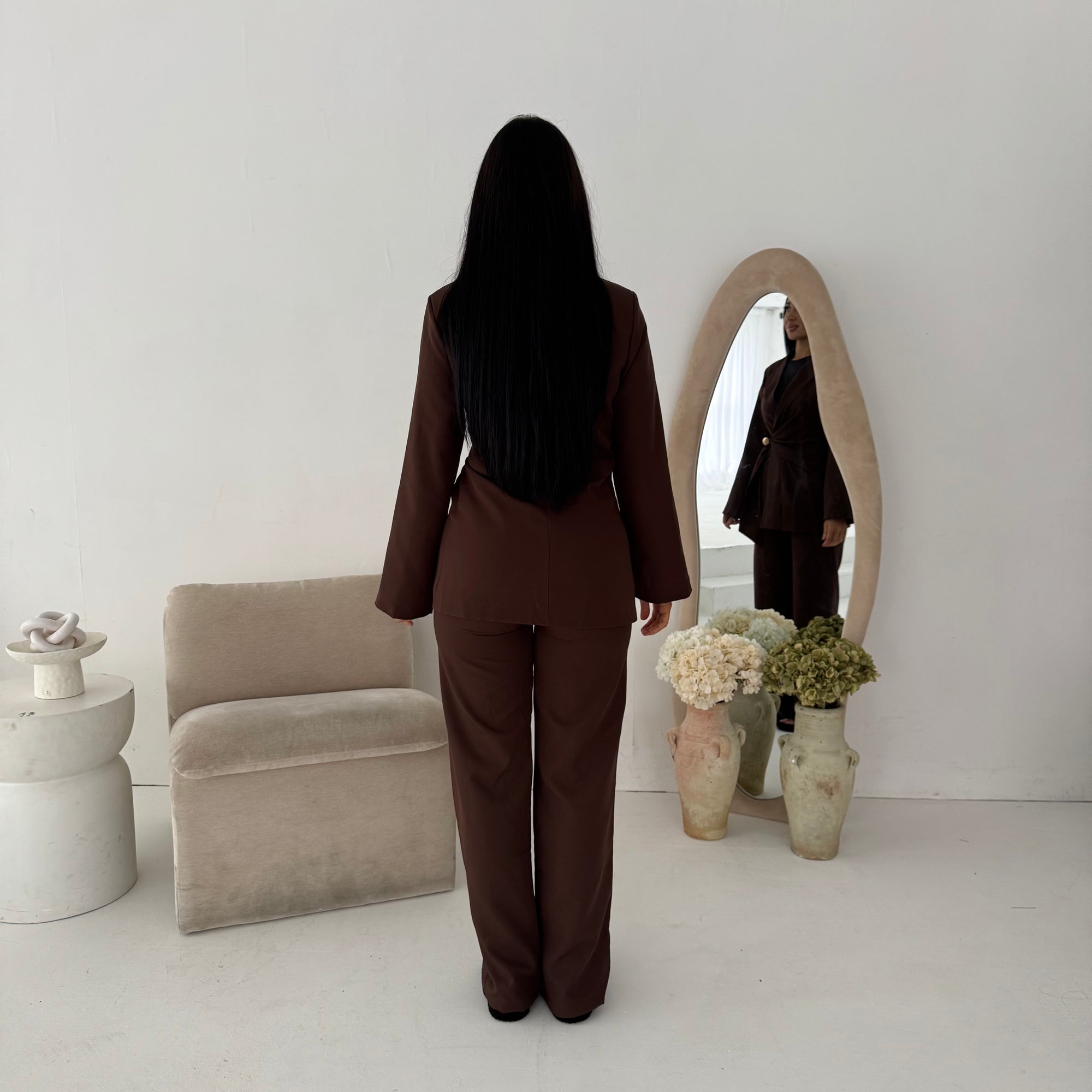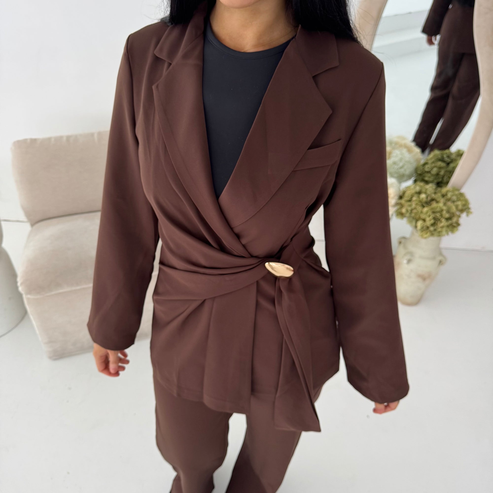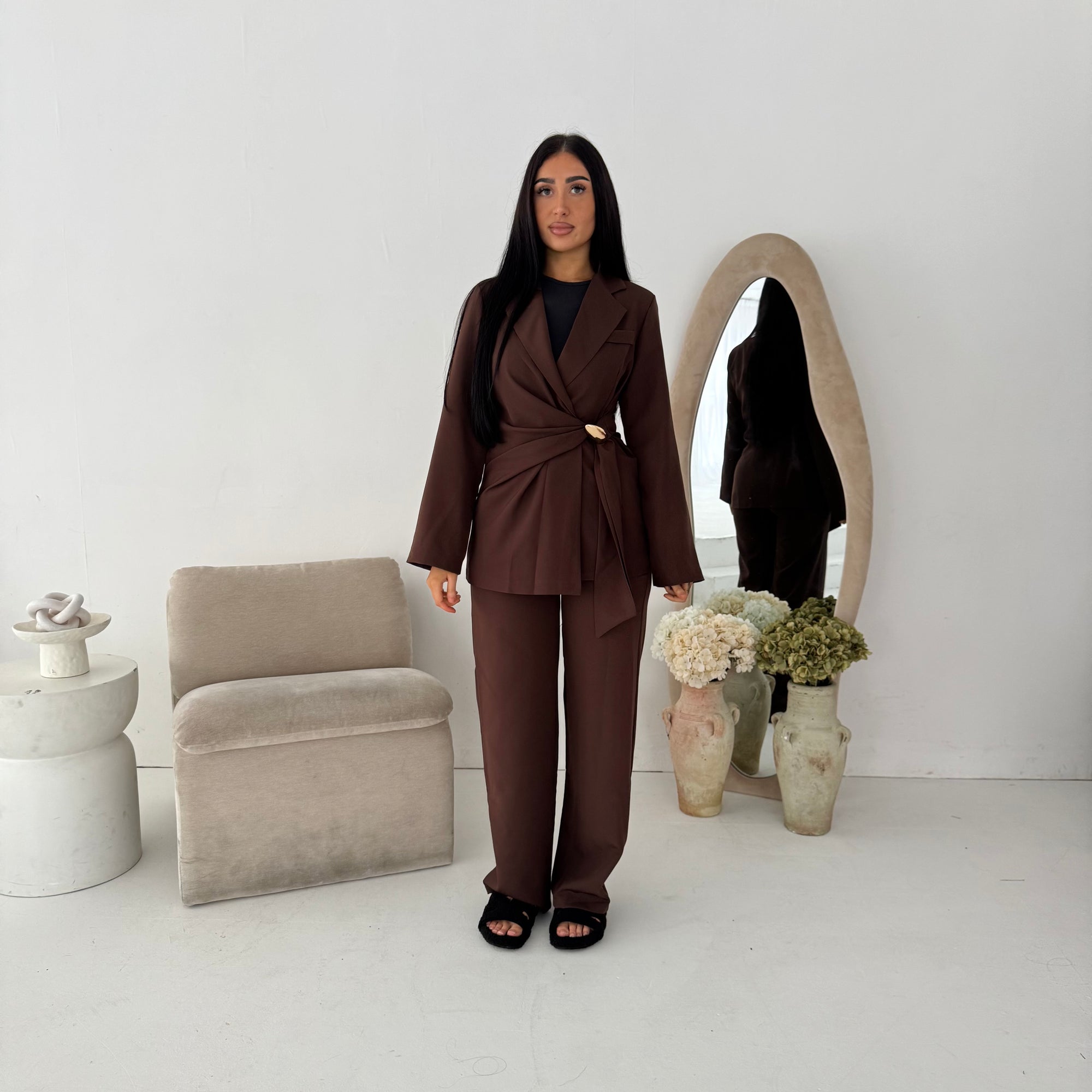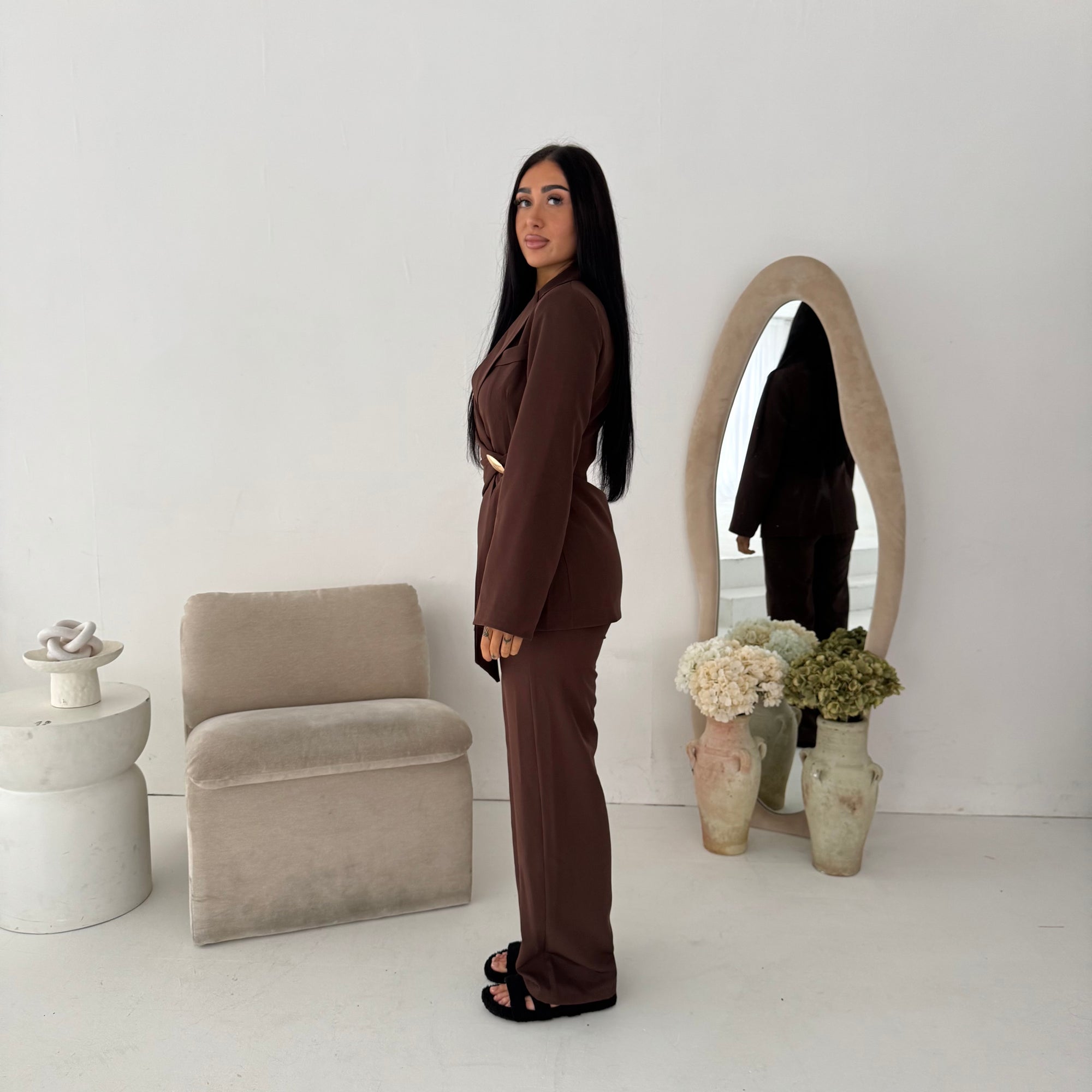 Mara Mocha Tailored Gold buckle Blazer Co Ord Set