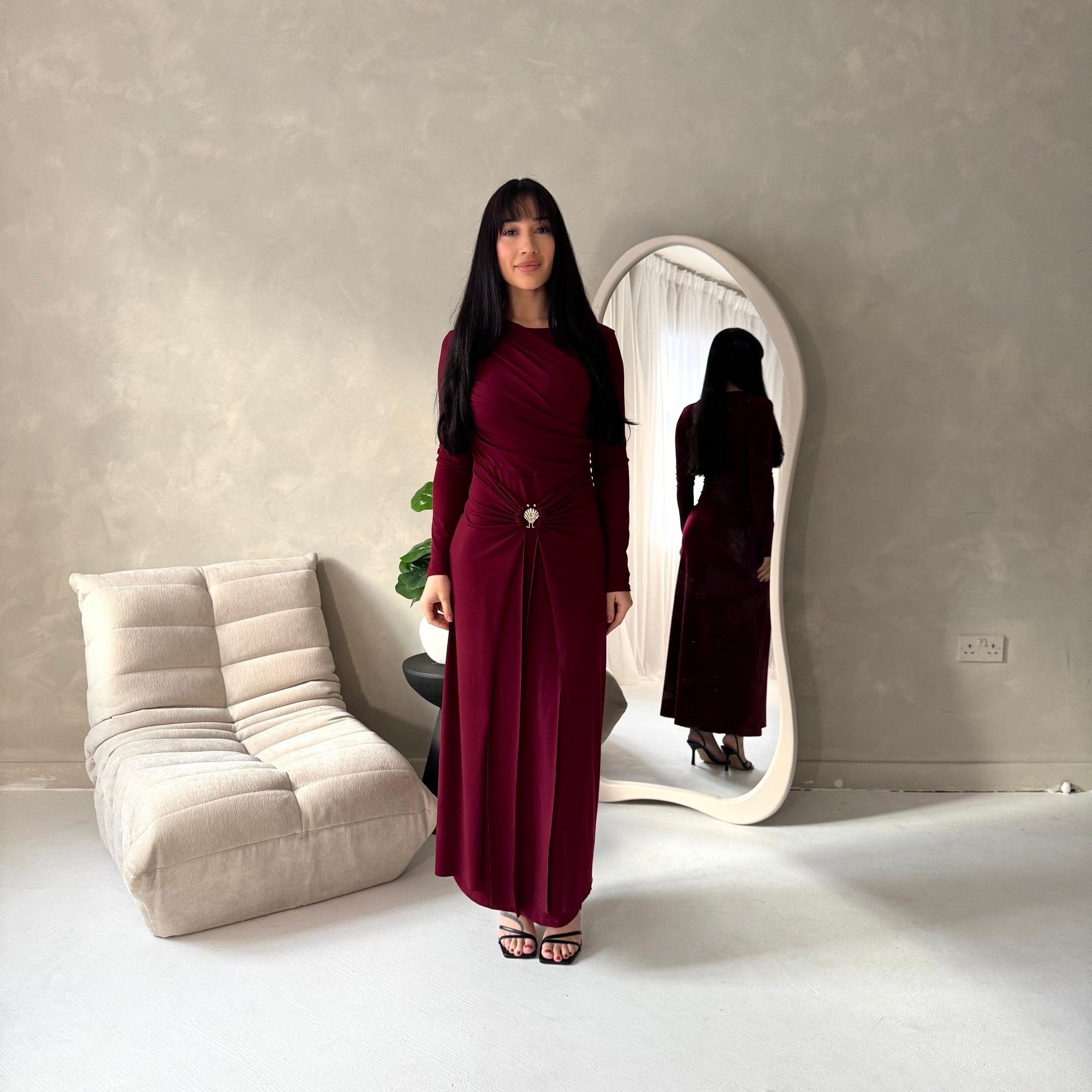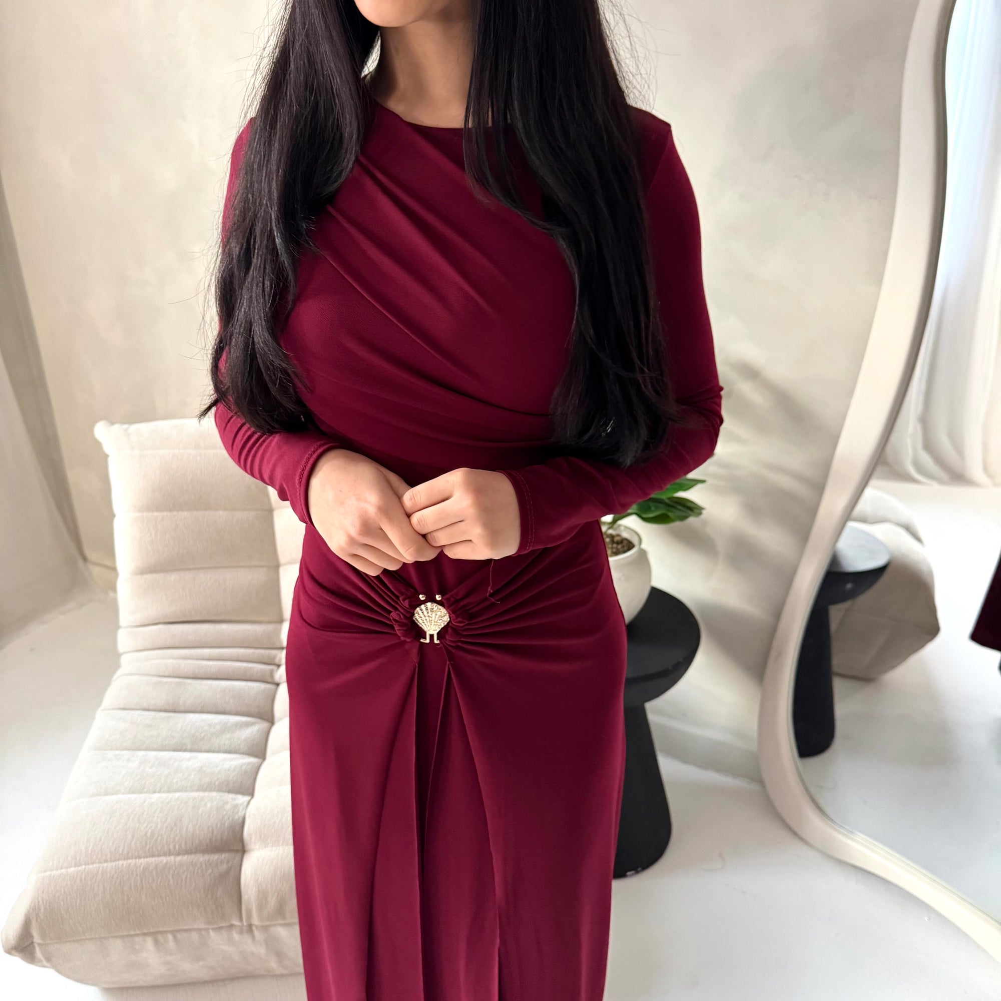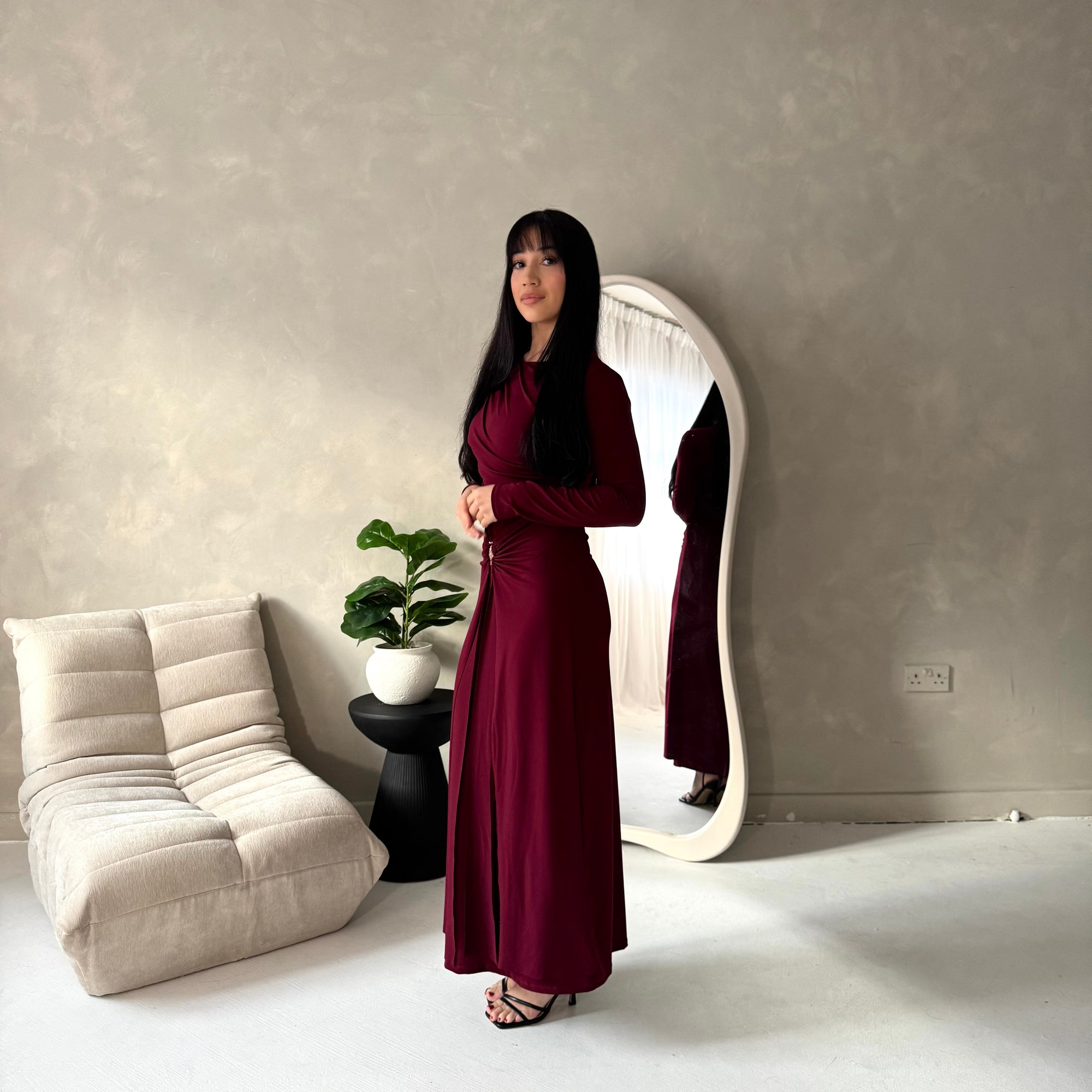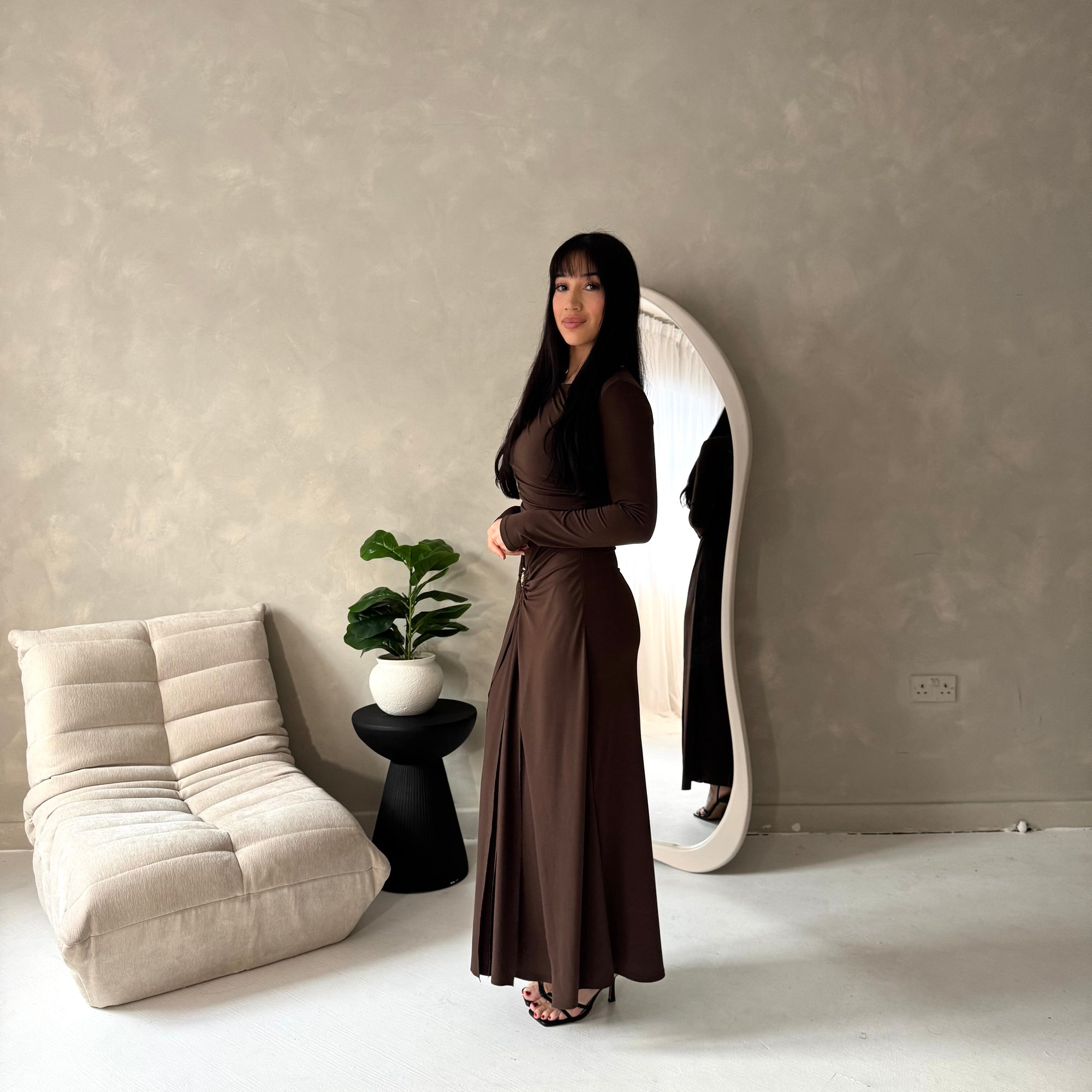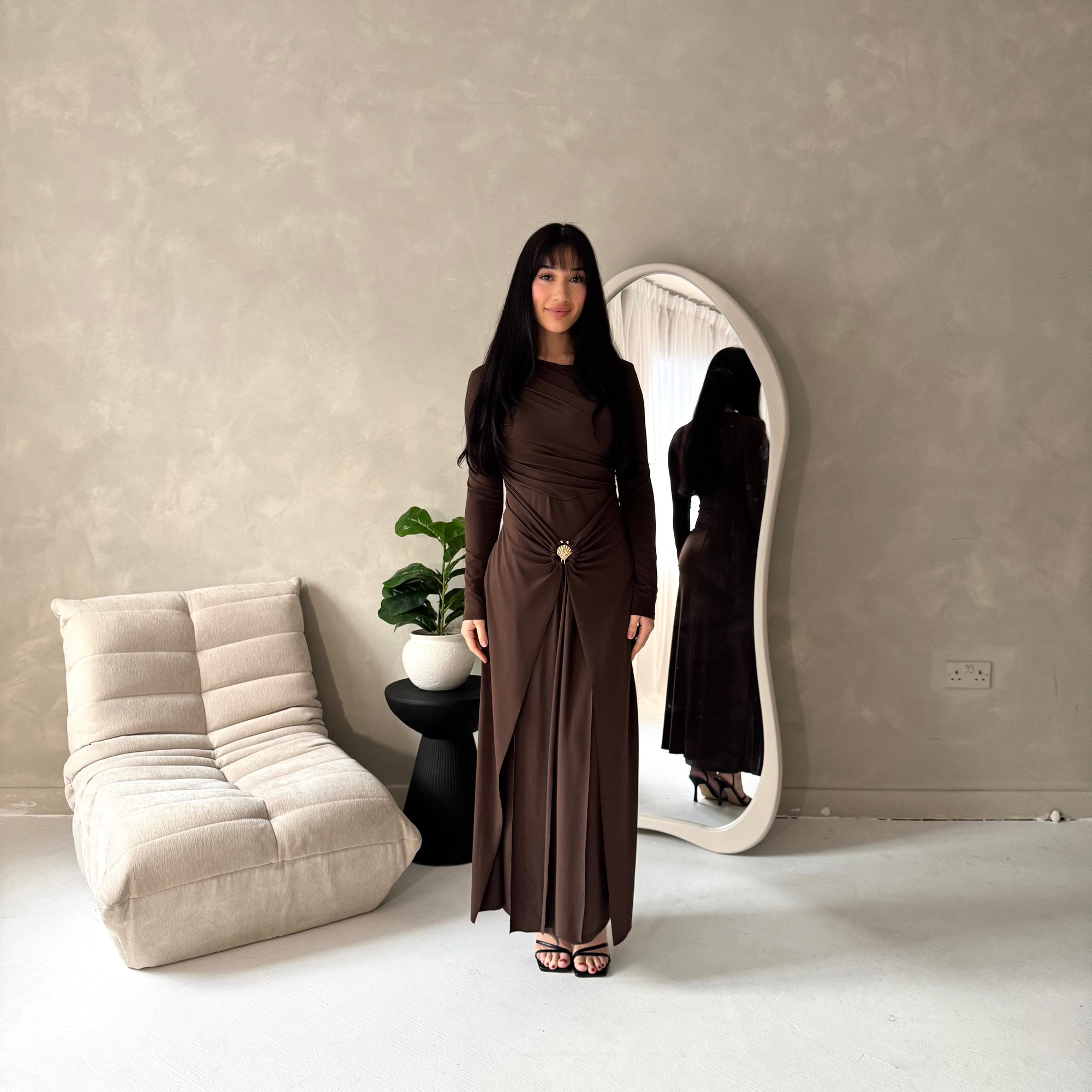 Alayna Chocolate Soft Gold Buckle Modest Dress