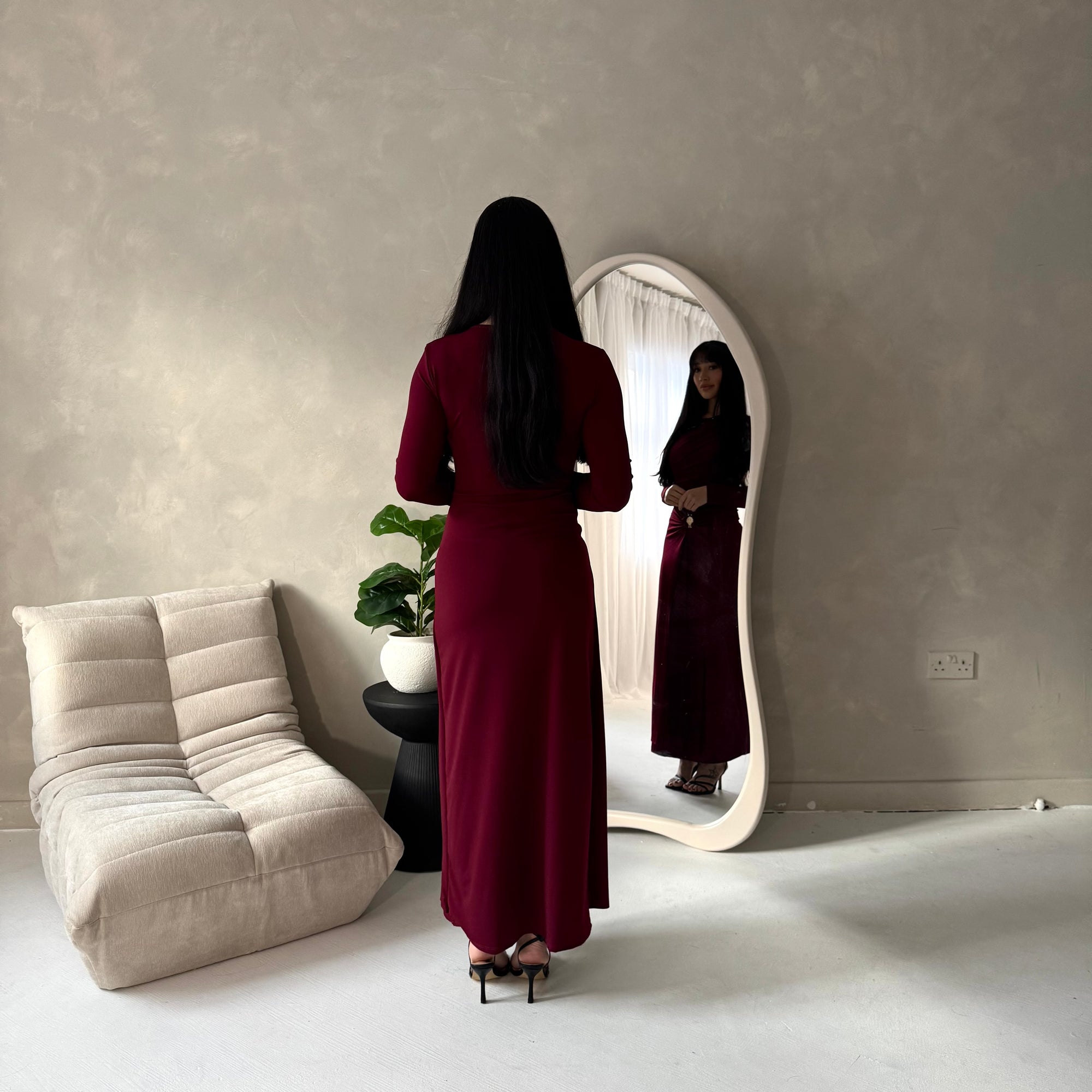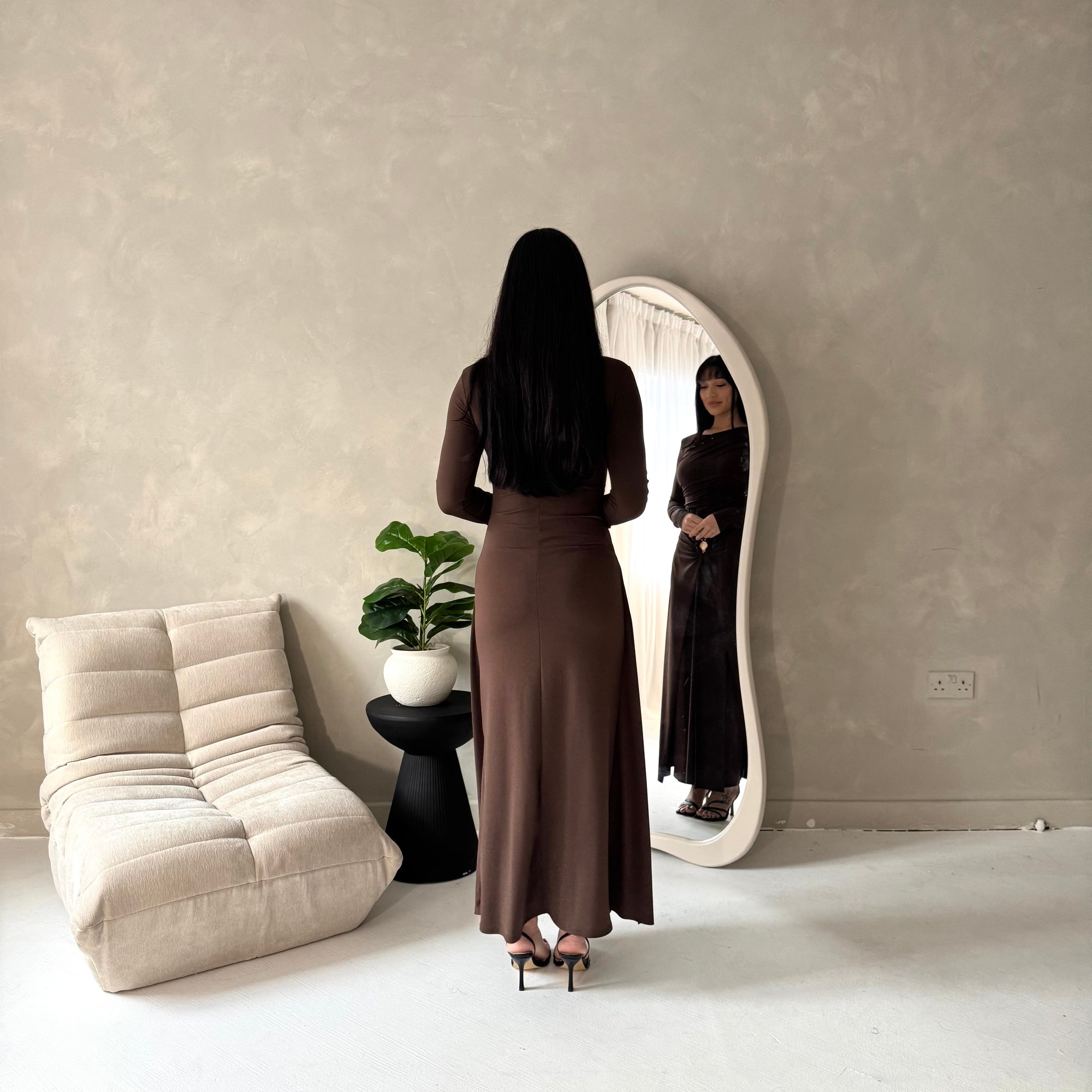 Aleena Chocolate Plain Silky Satin Batwing Kaftan Dress