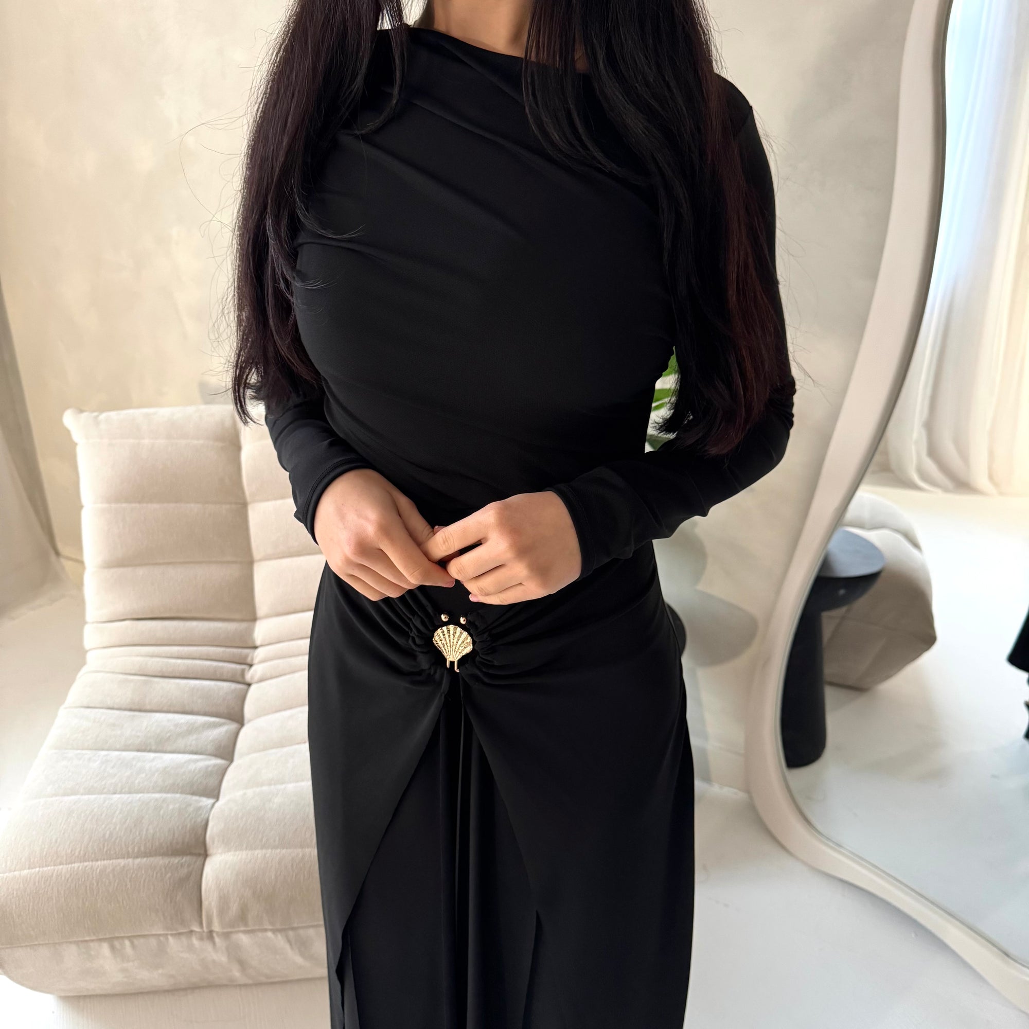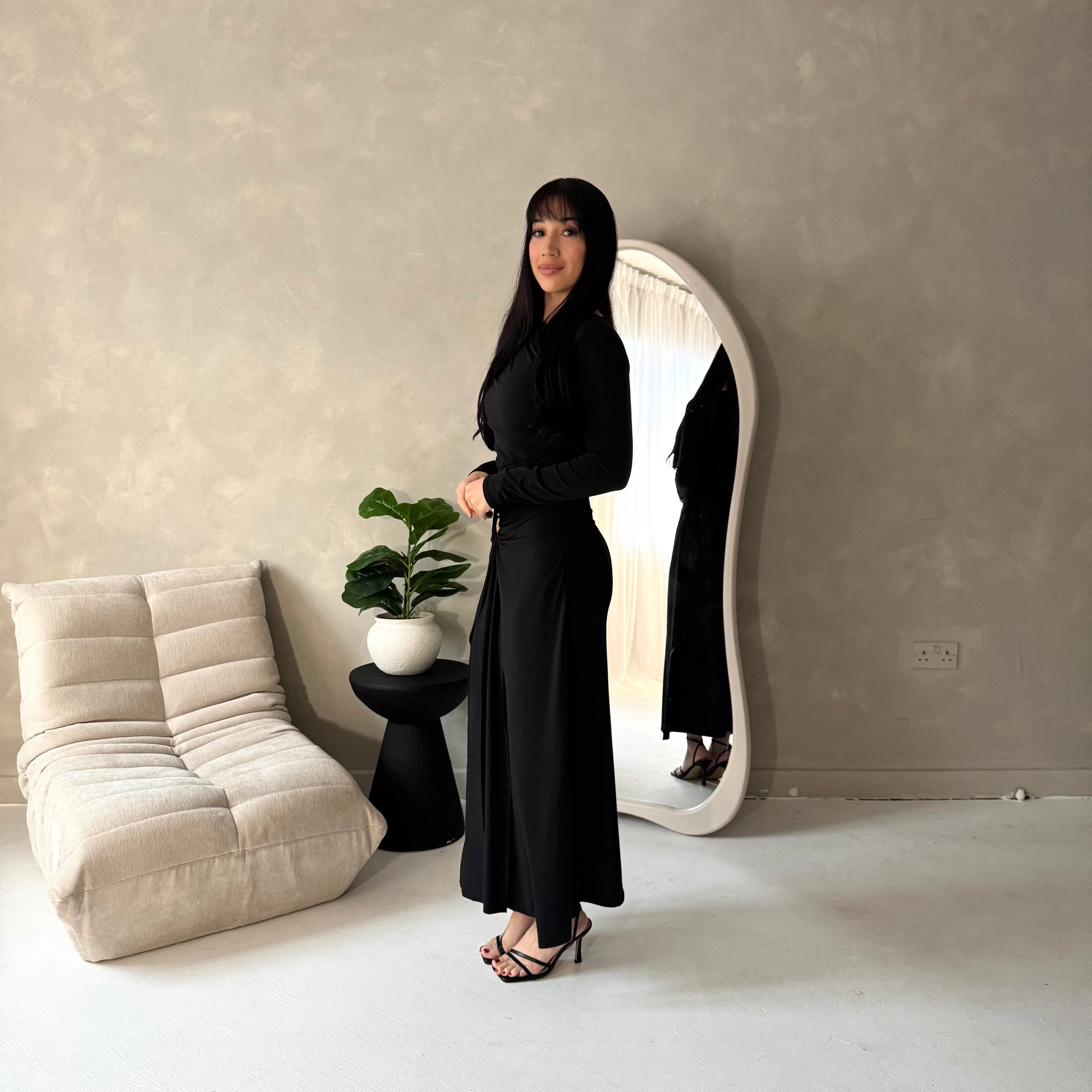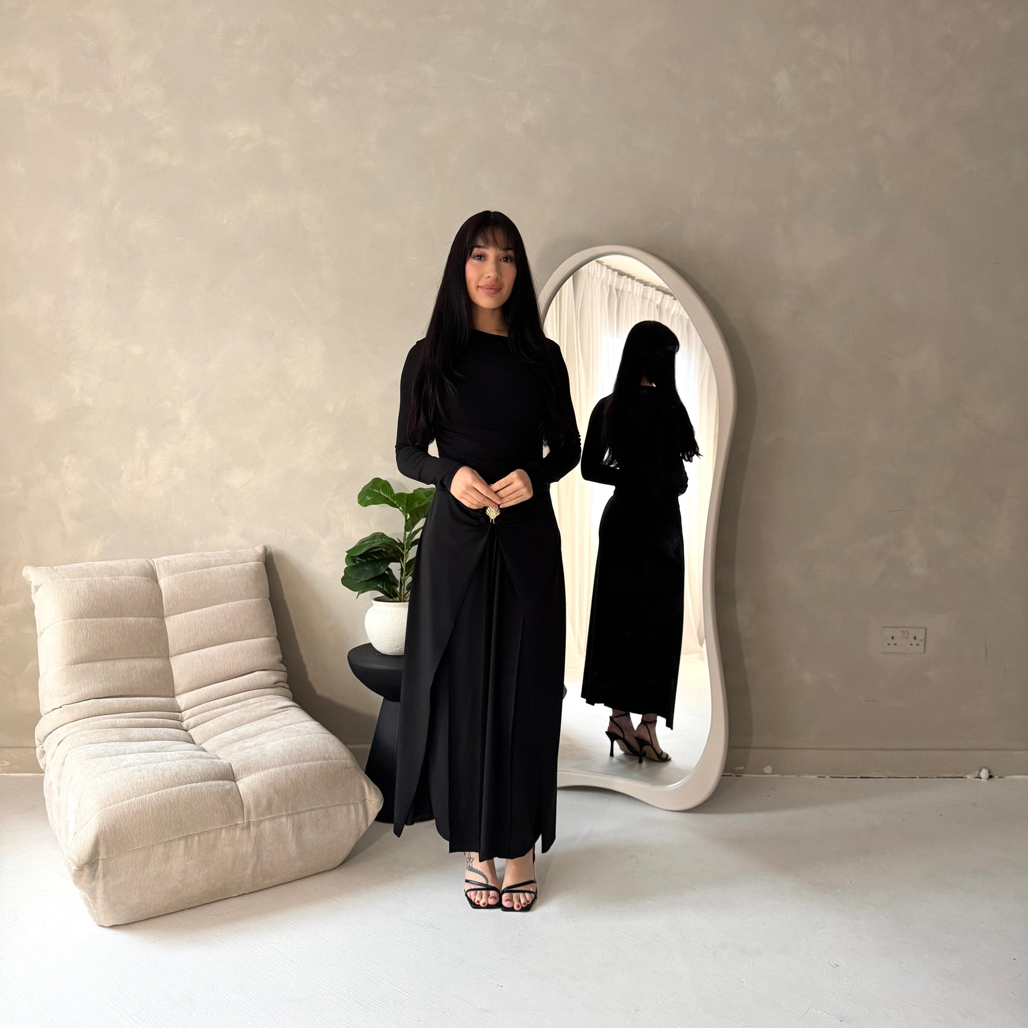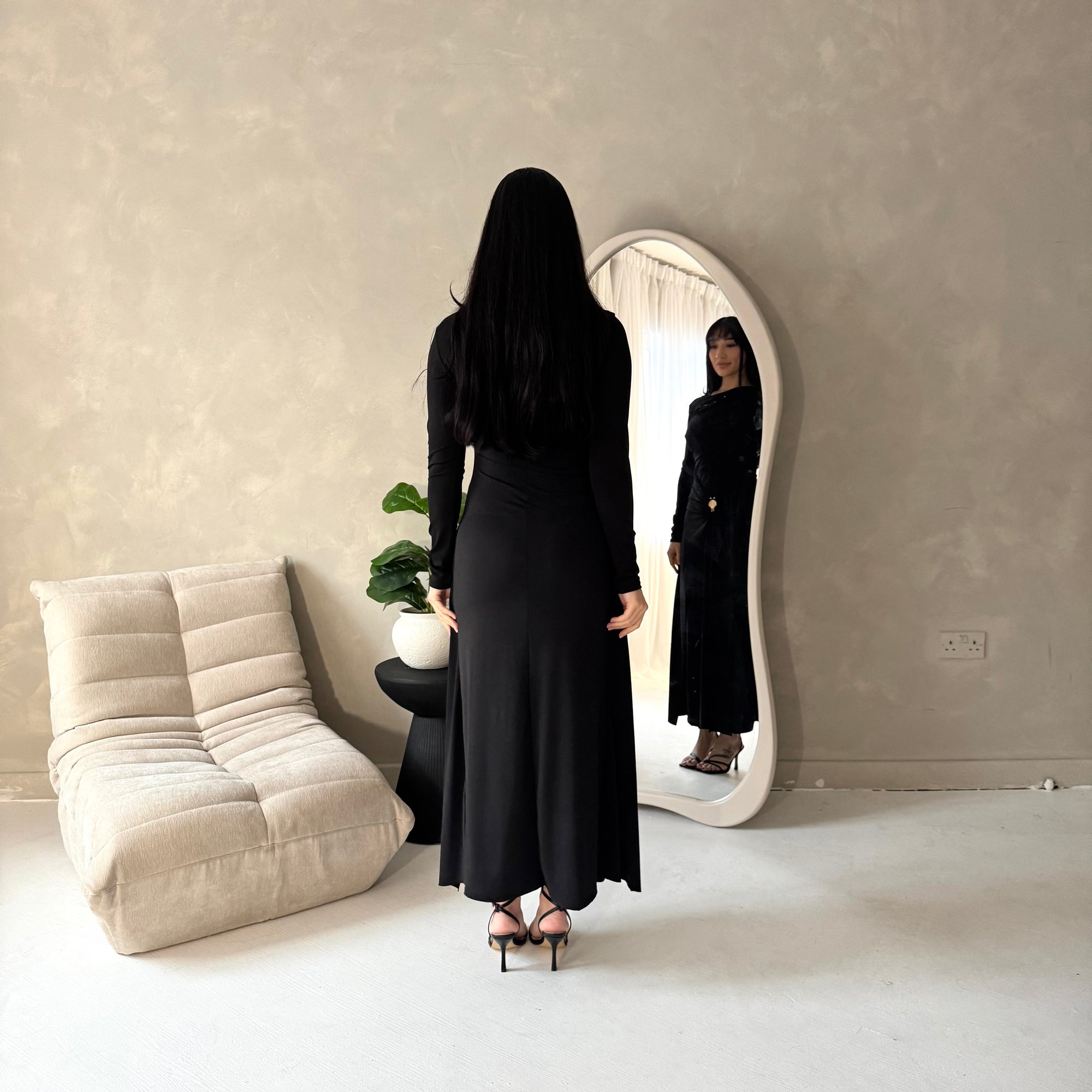 Aleena Black Plain Silky Satin Batwing Kaftan Dress