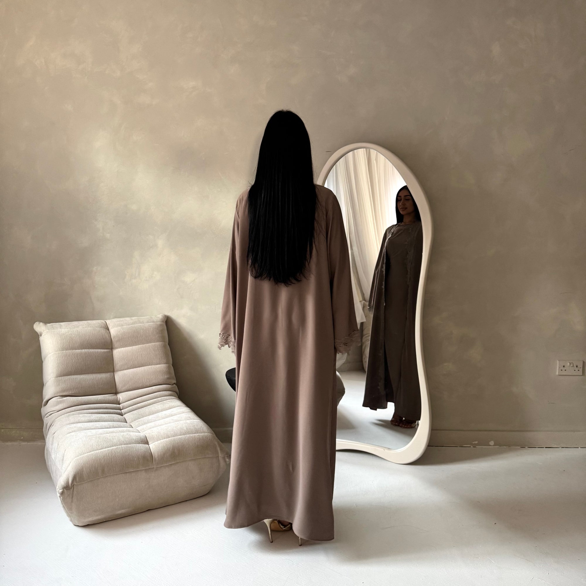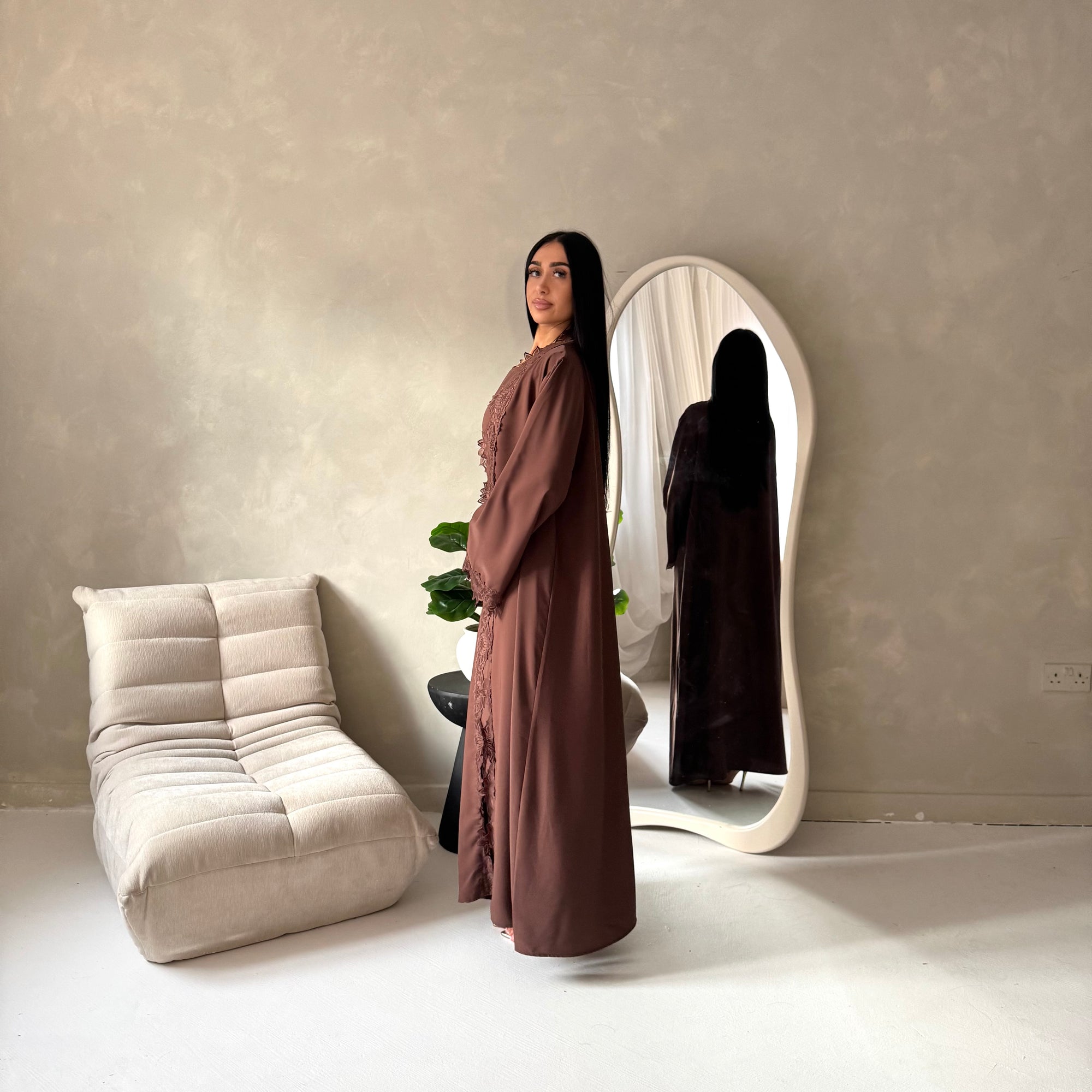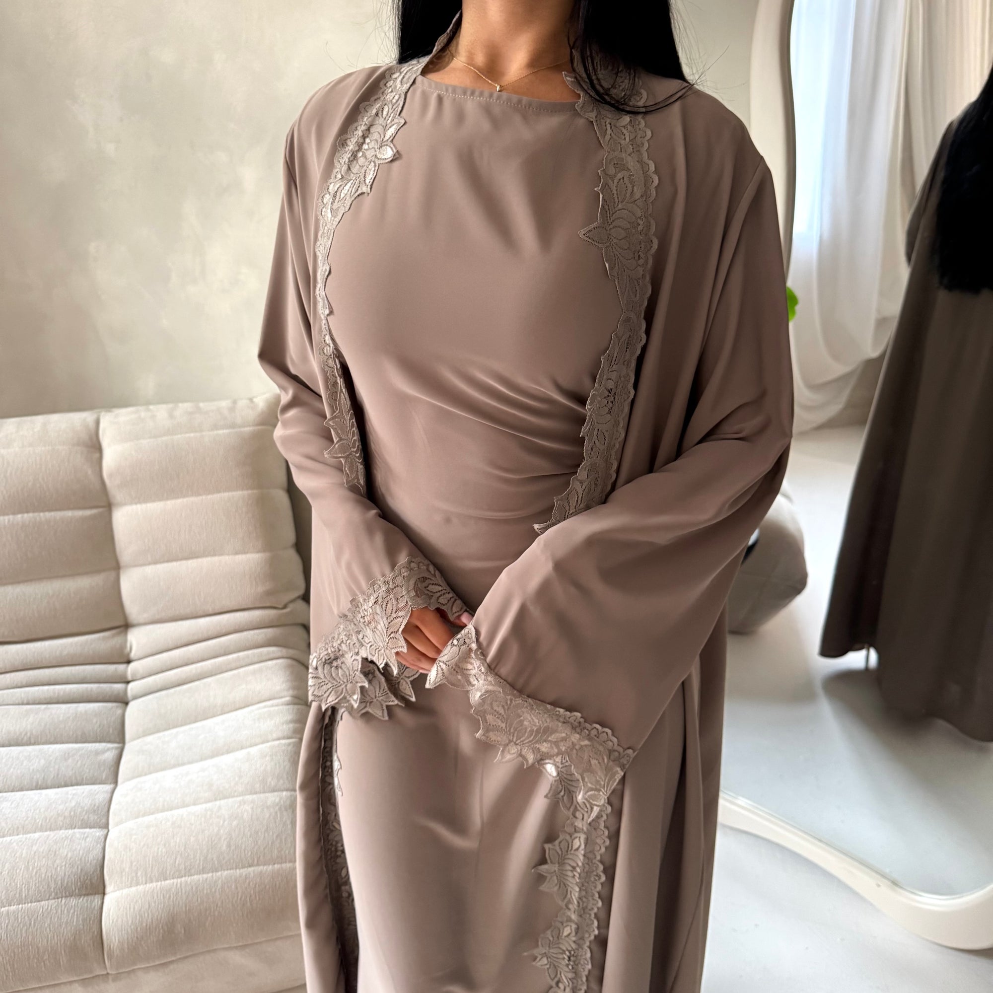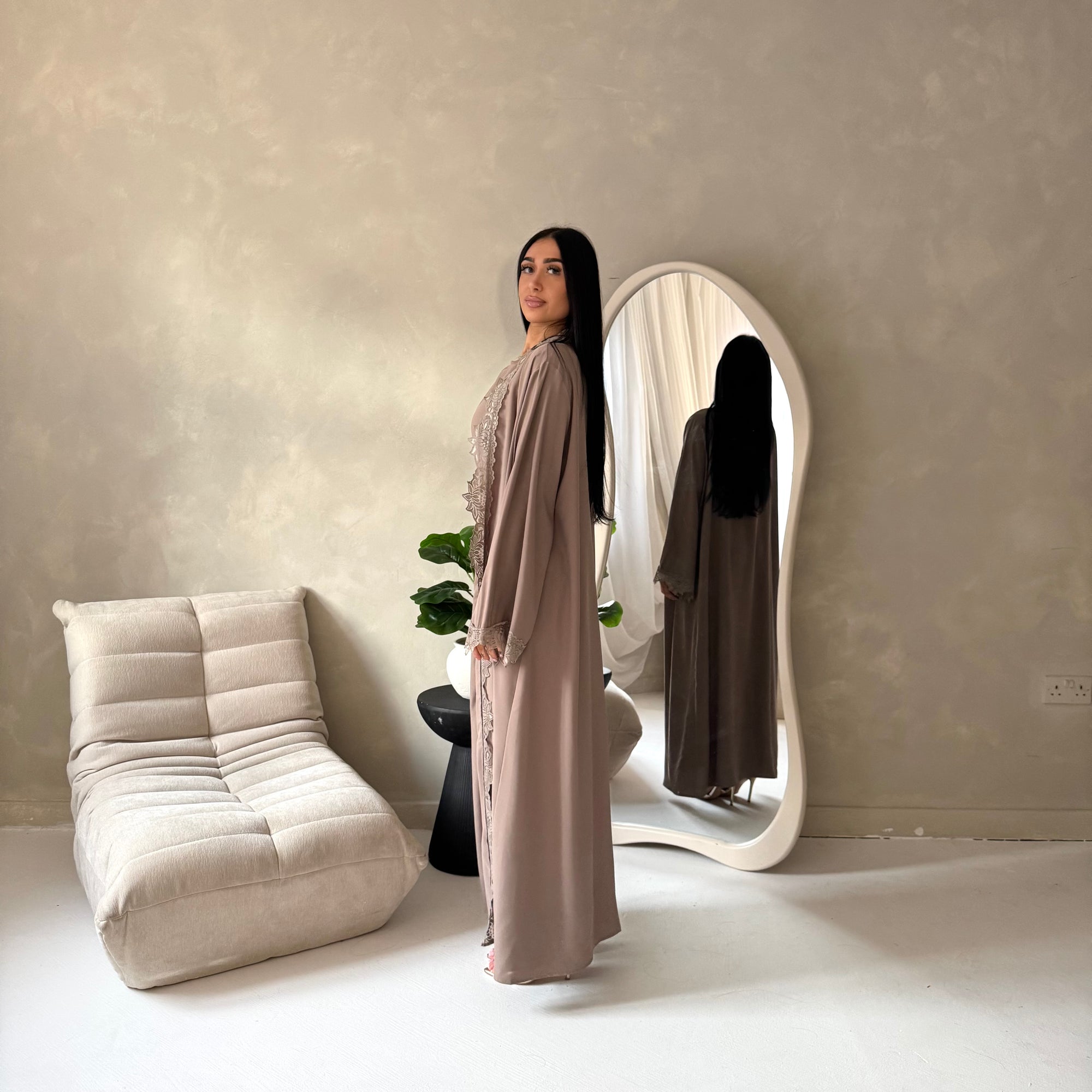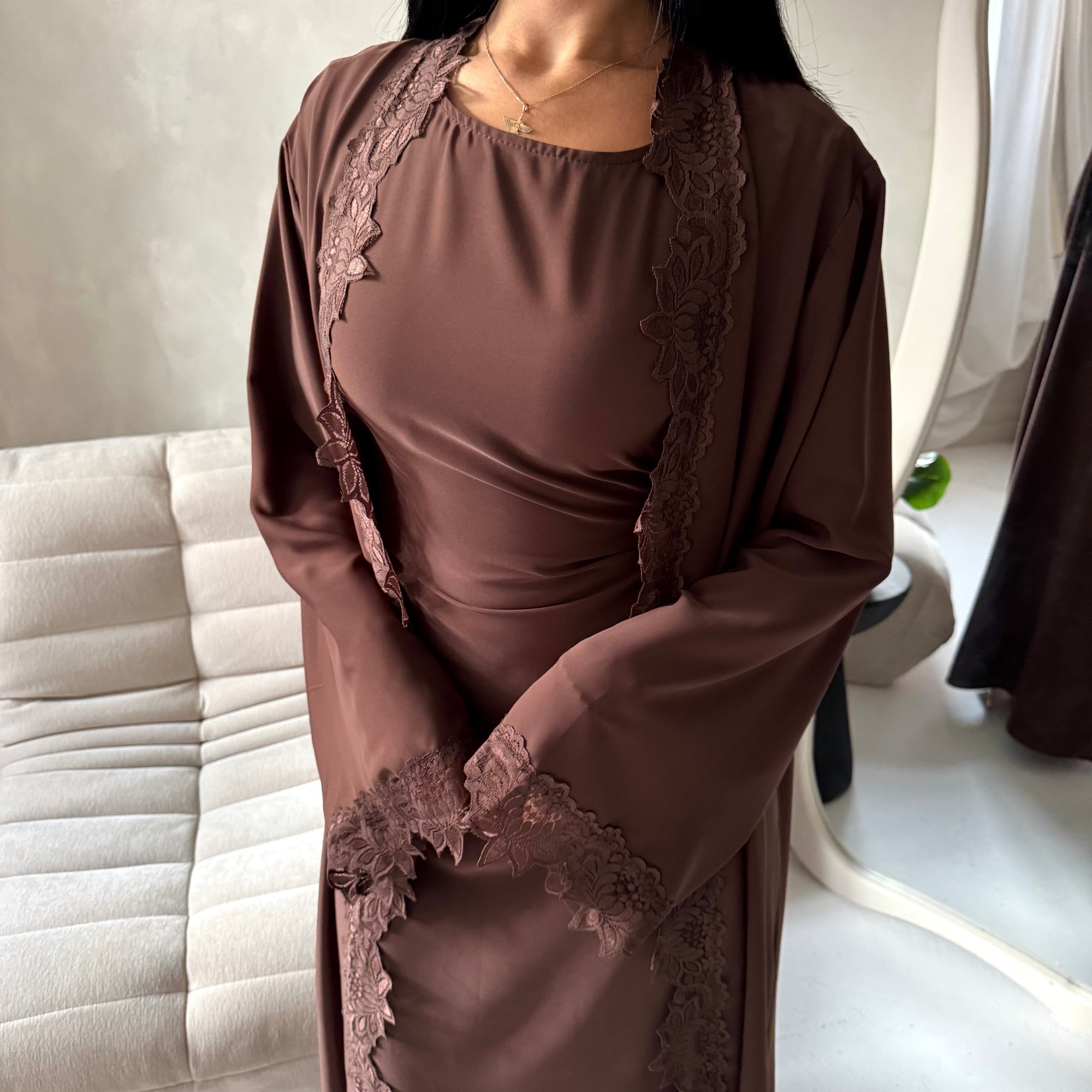 Amara Mocha Lace Detail Two Peice Co Ord Abaya Set