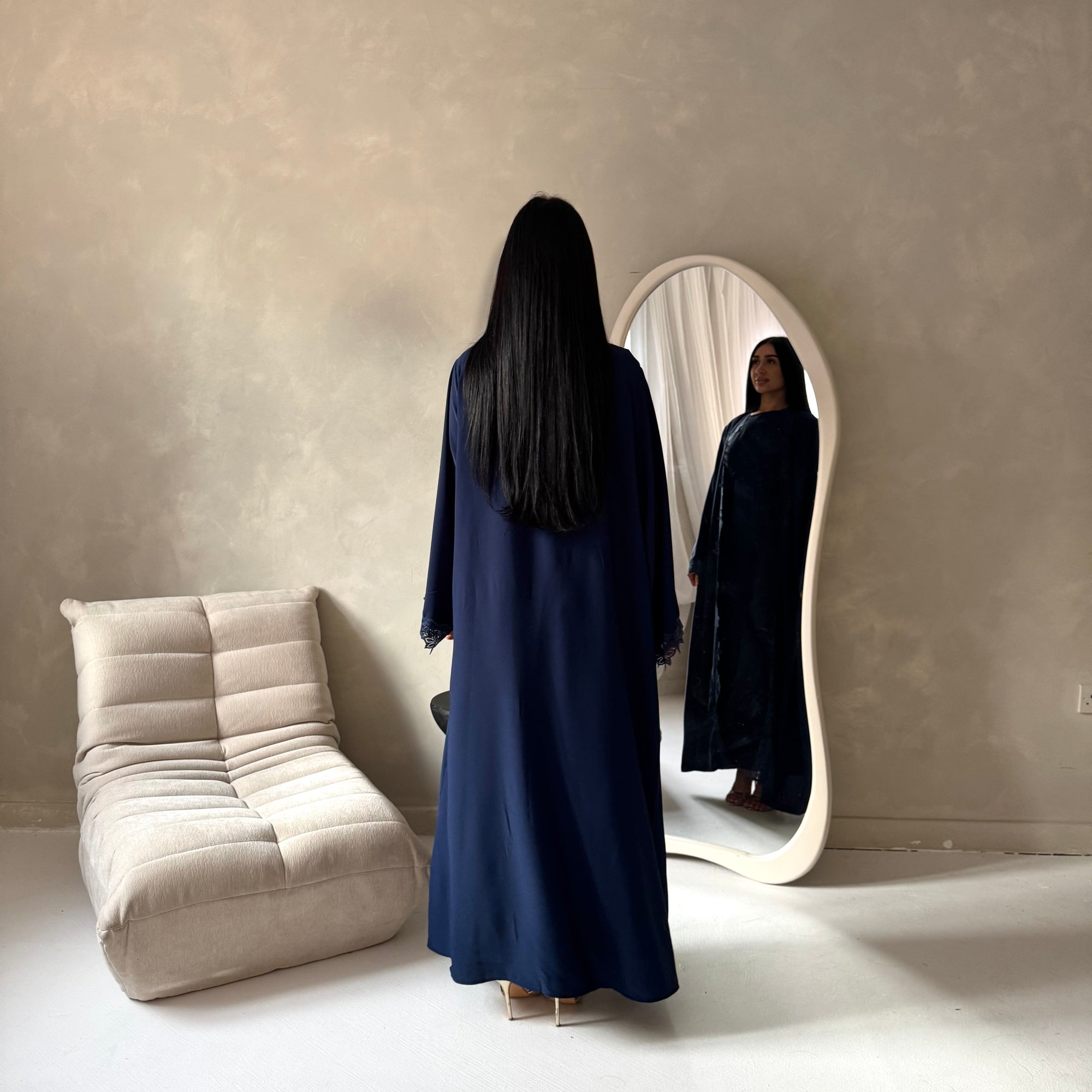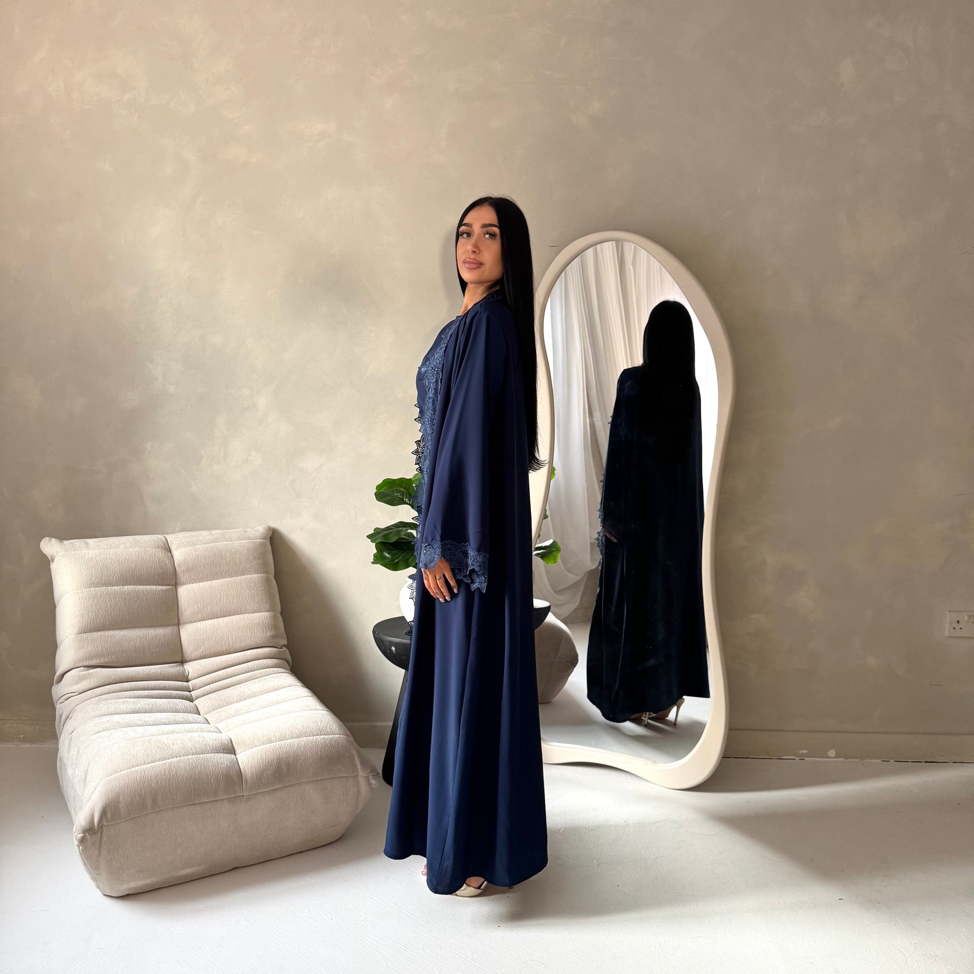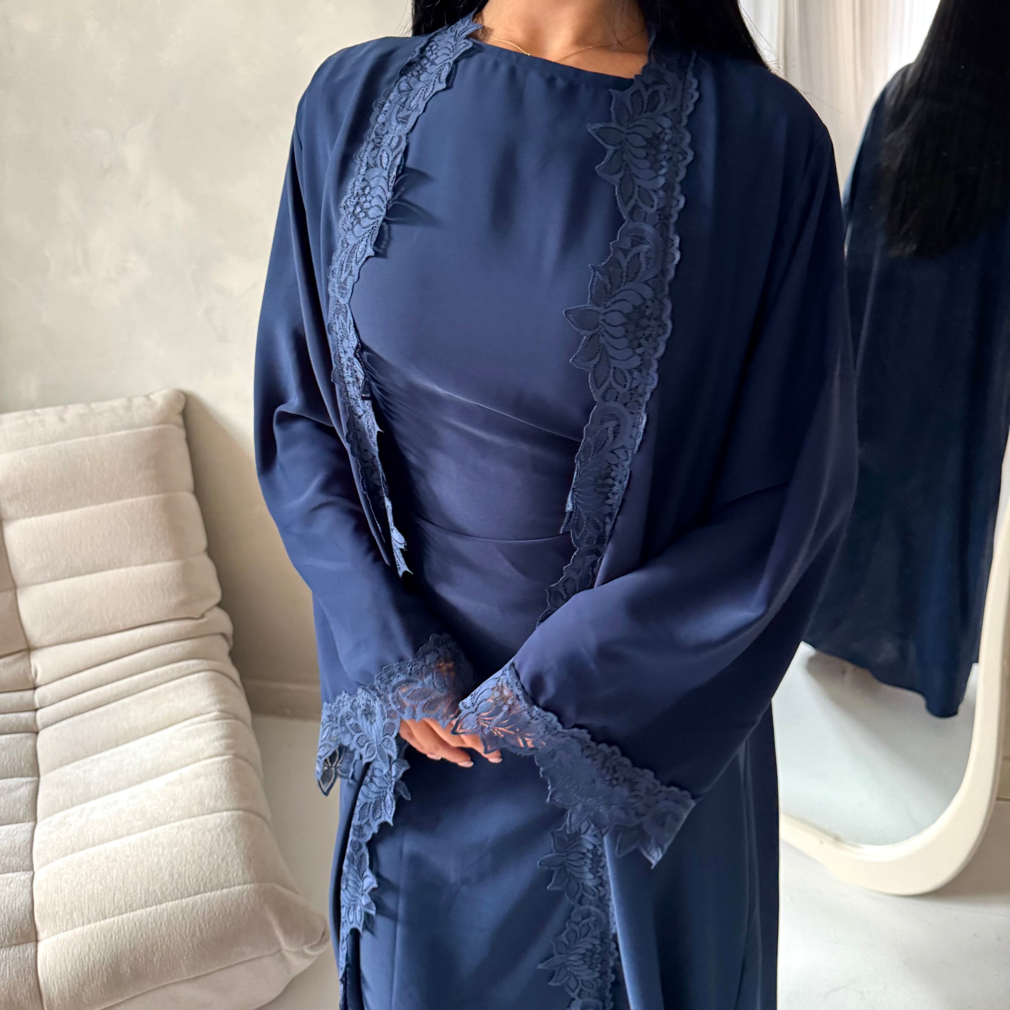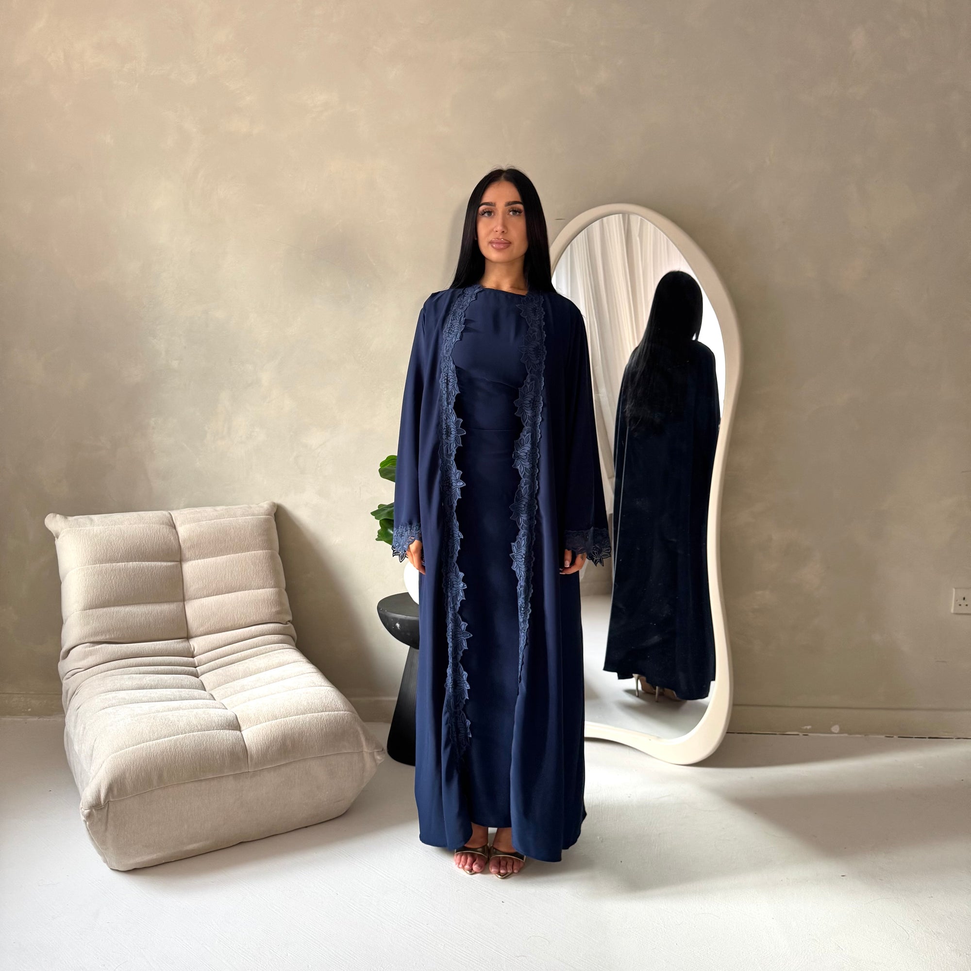 Amara Navy Lace Detail Two Peice Co Ord Abaya Set