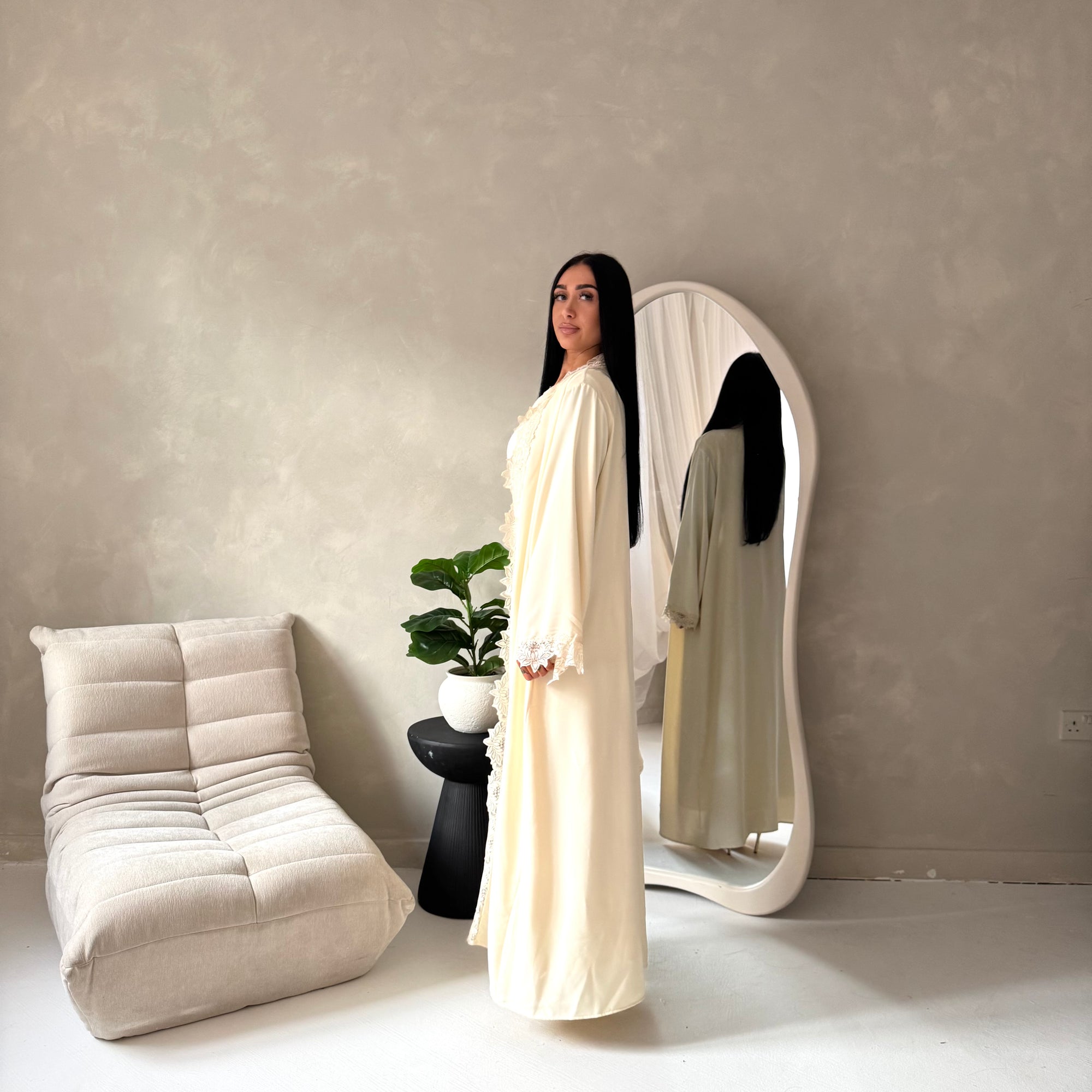 Amara Cream Lace Detail Two Peice Co Ord Abaya Set
