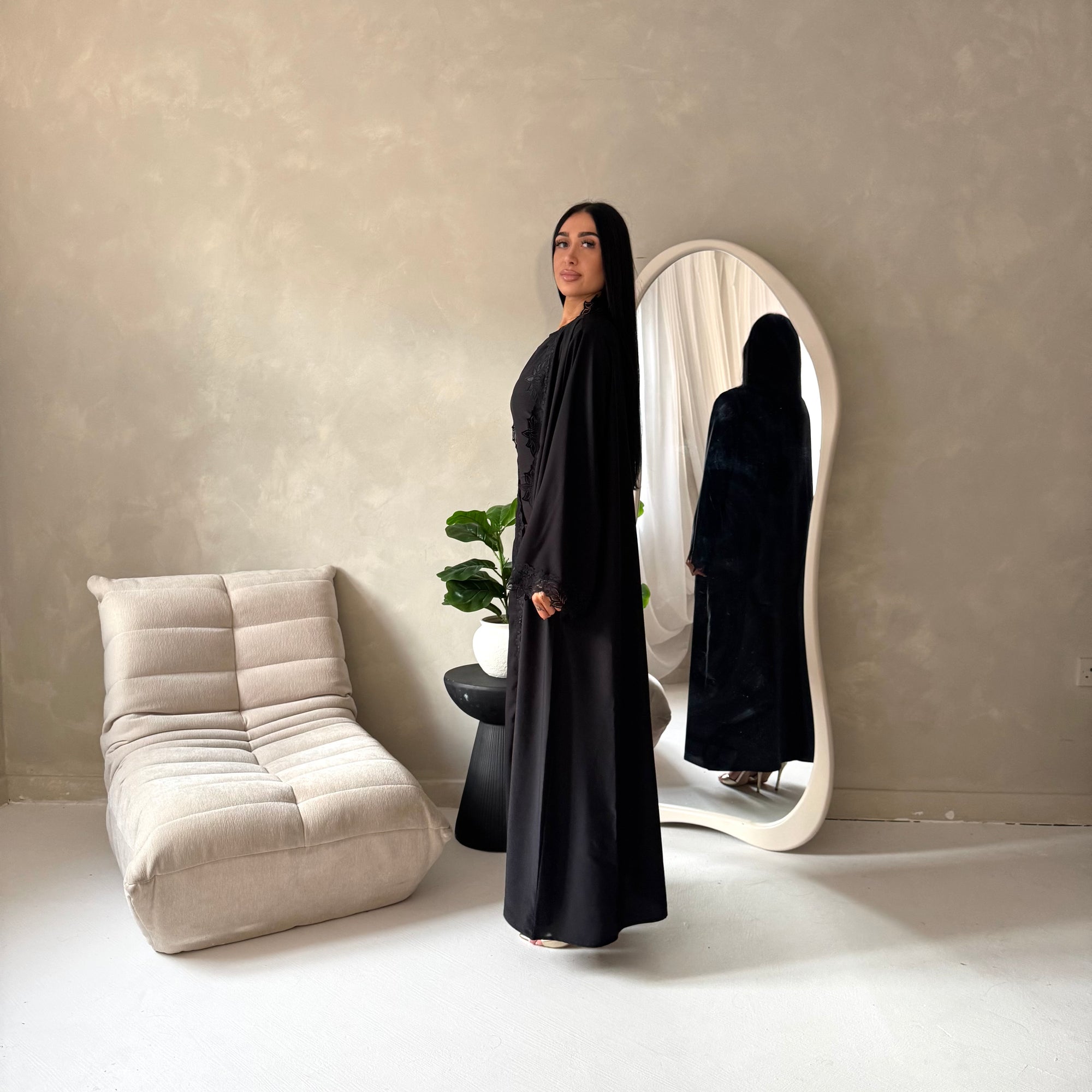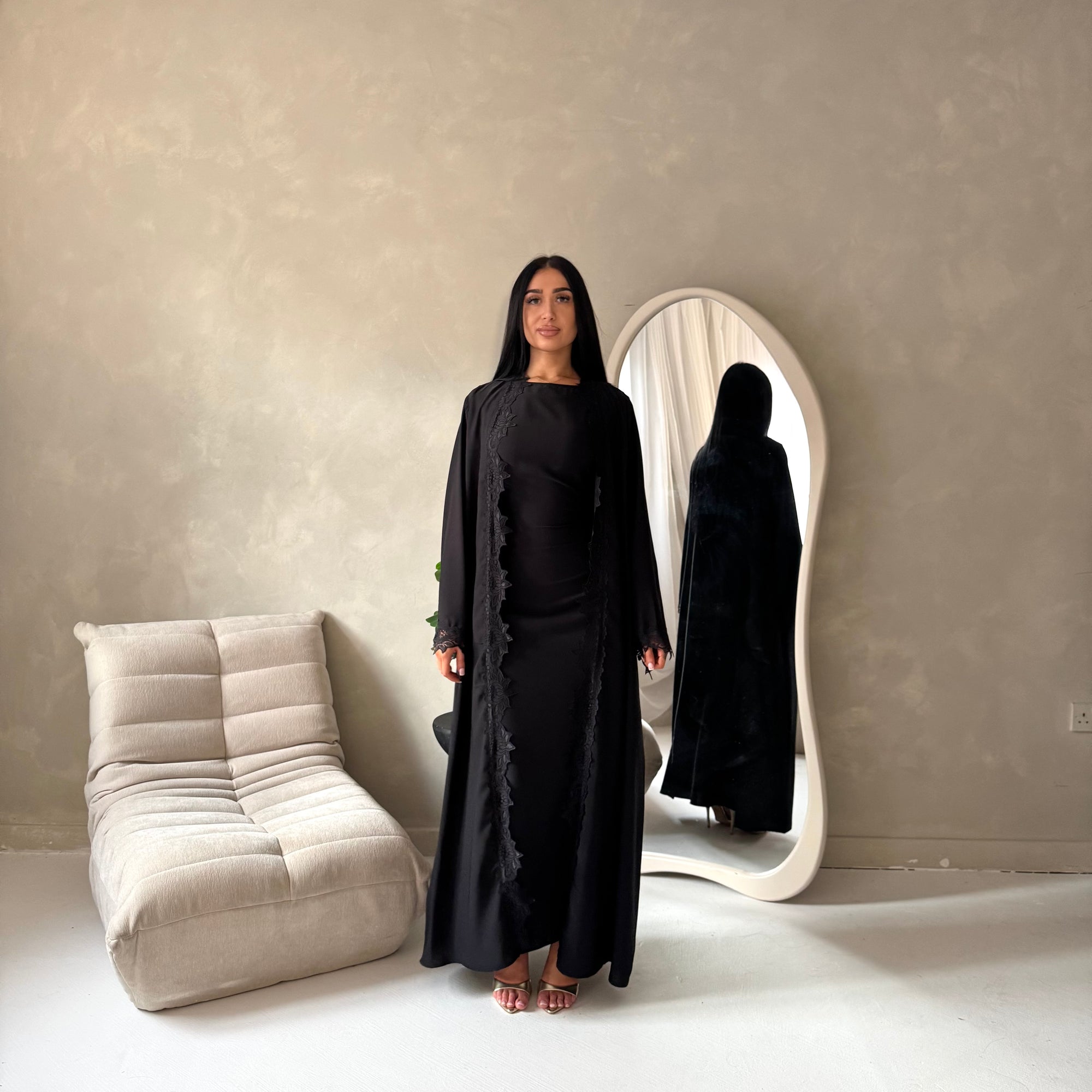 Amara Black Lace Detail Two Peice Co Ord Abaya Set