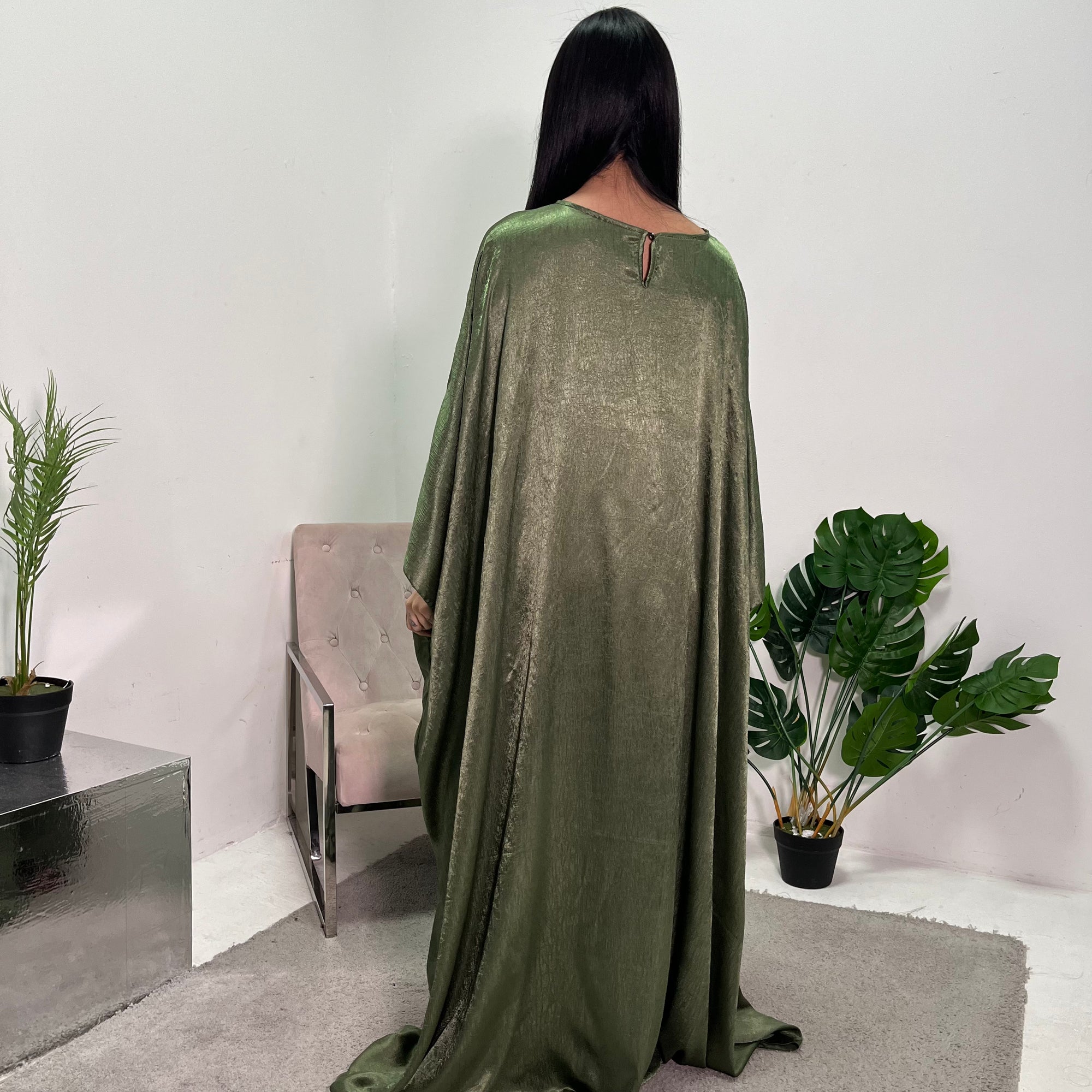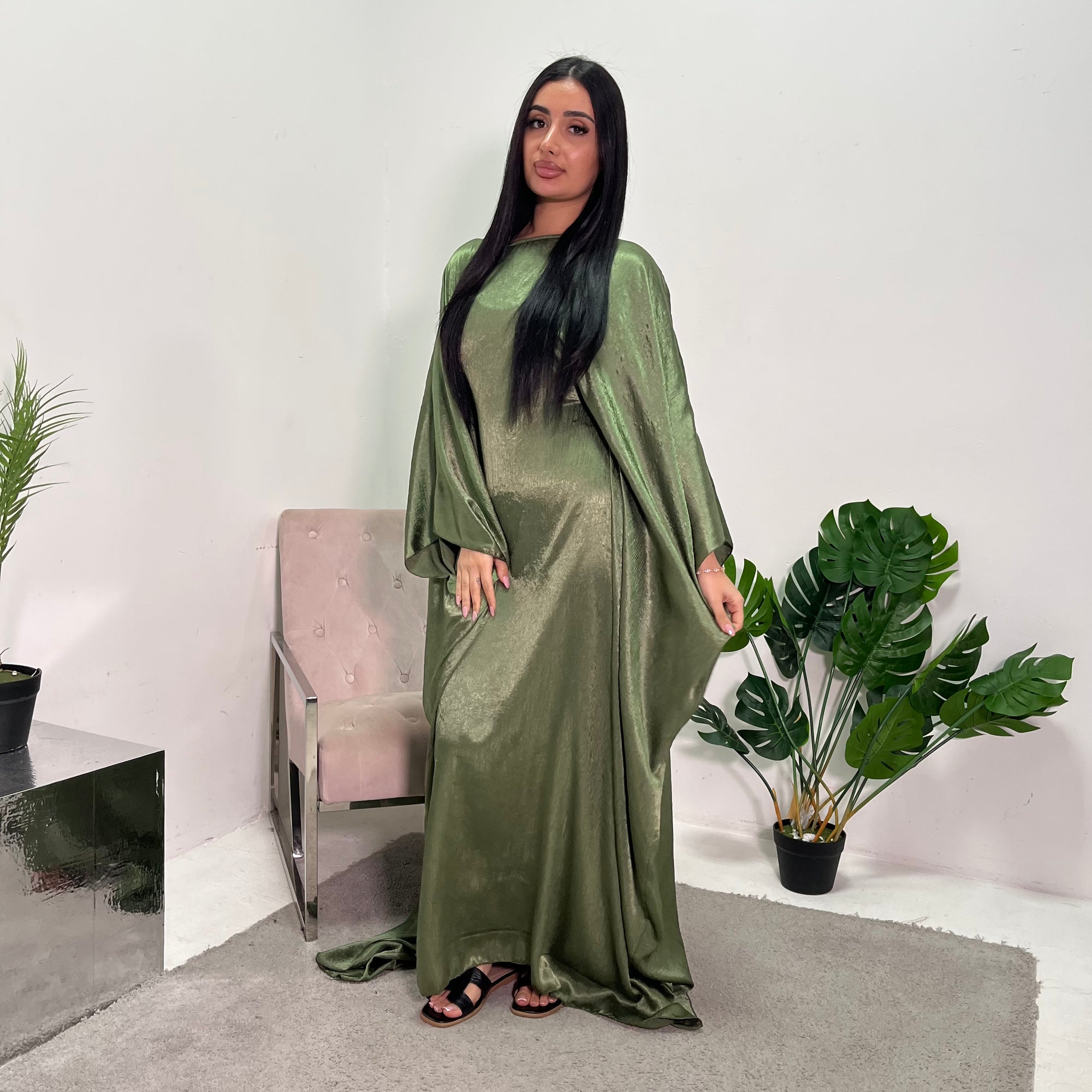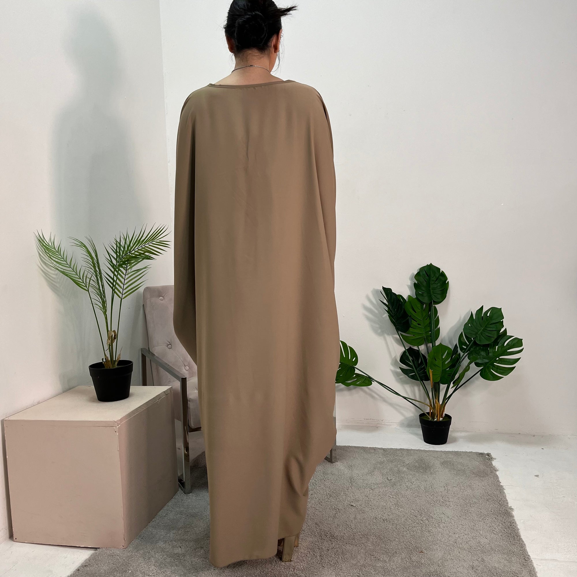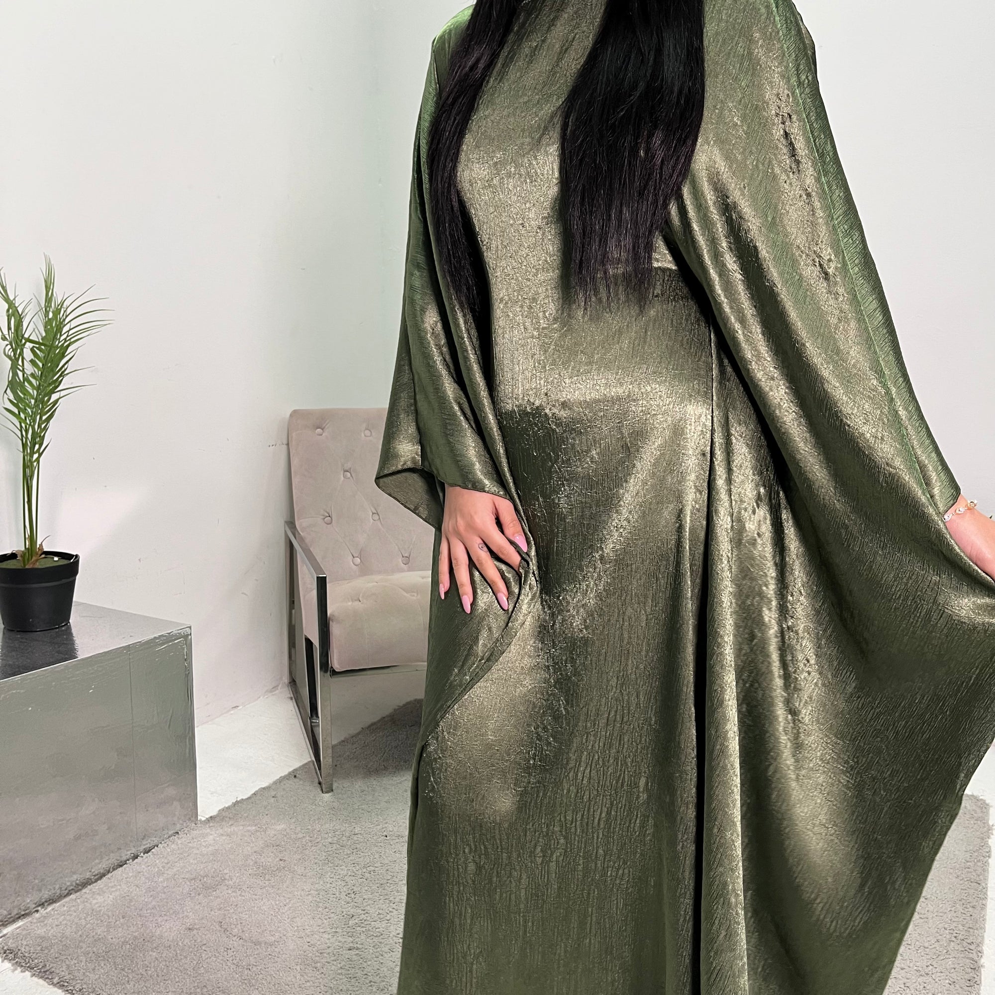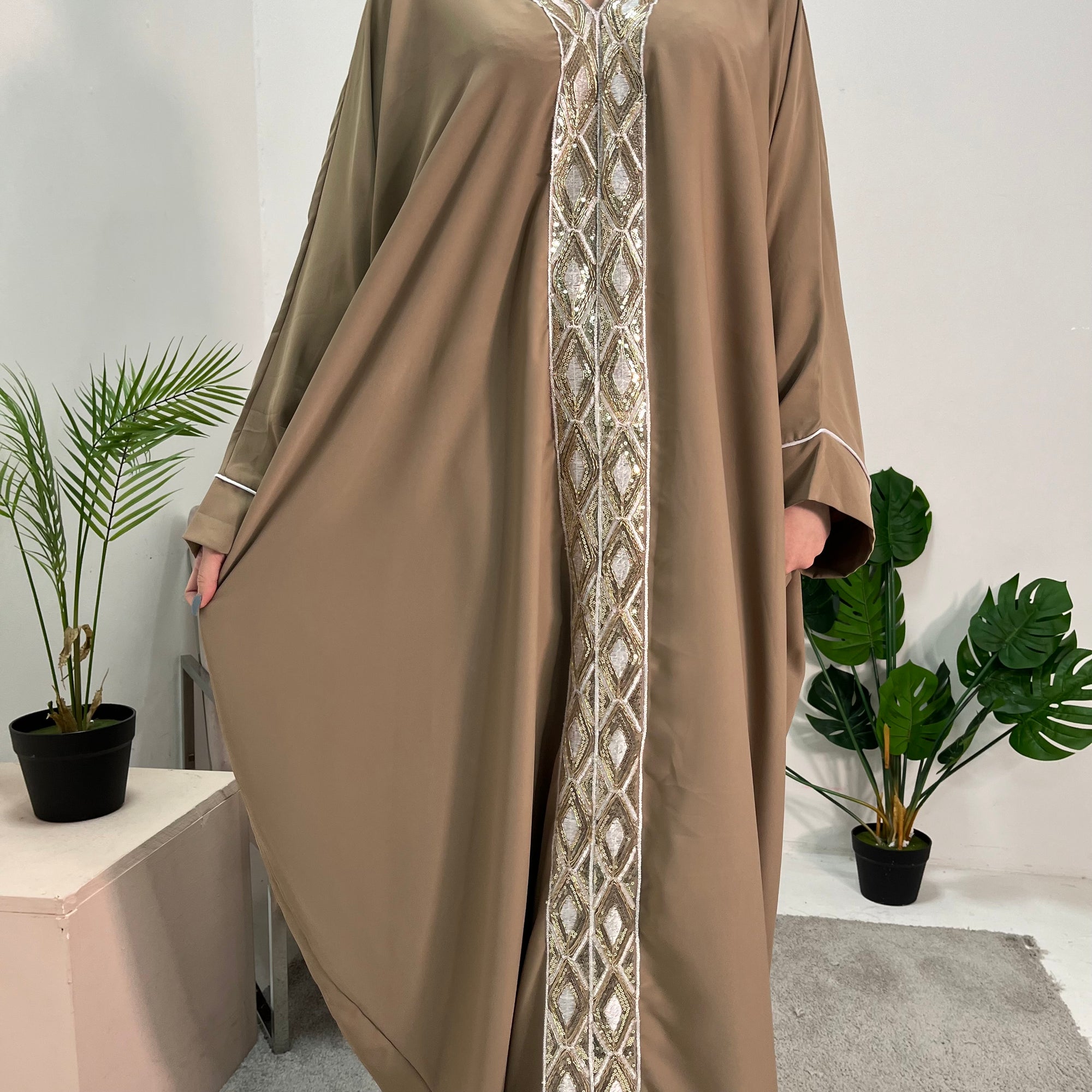 Arianna Khaki Sequin Trim Modest Abaya Kimono Jacket
