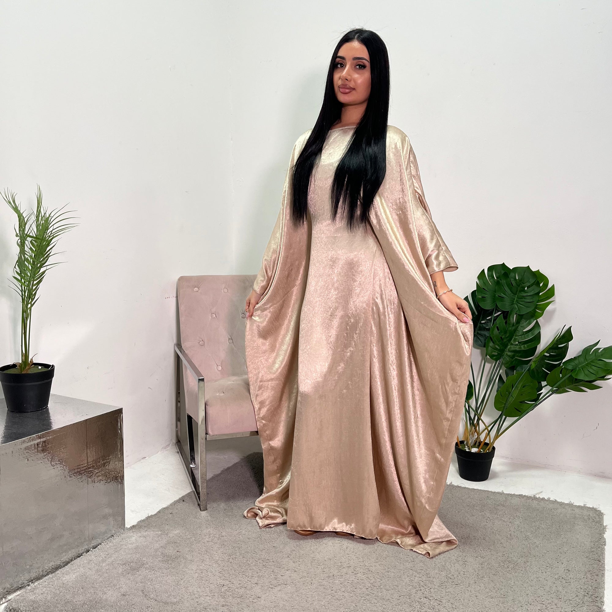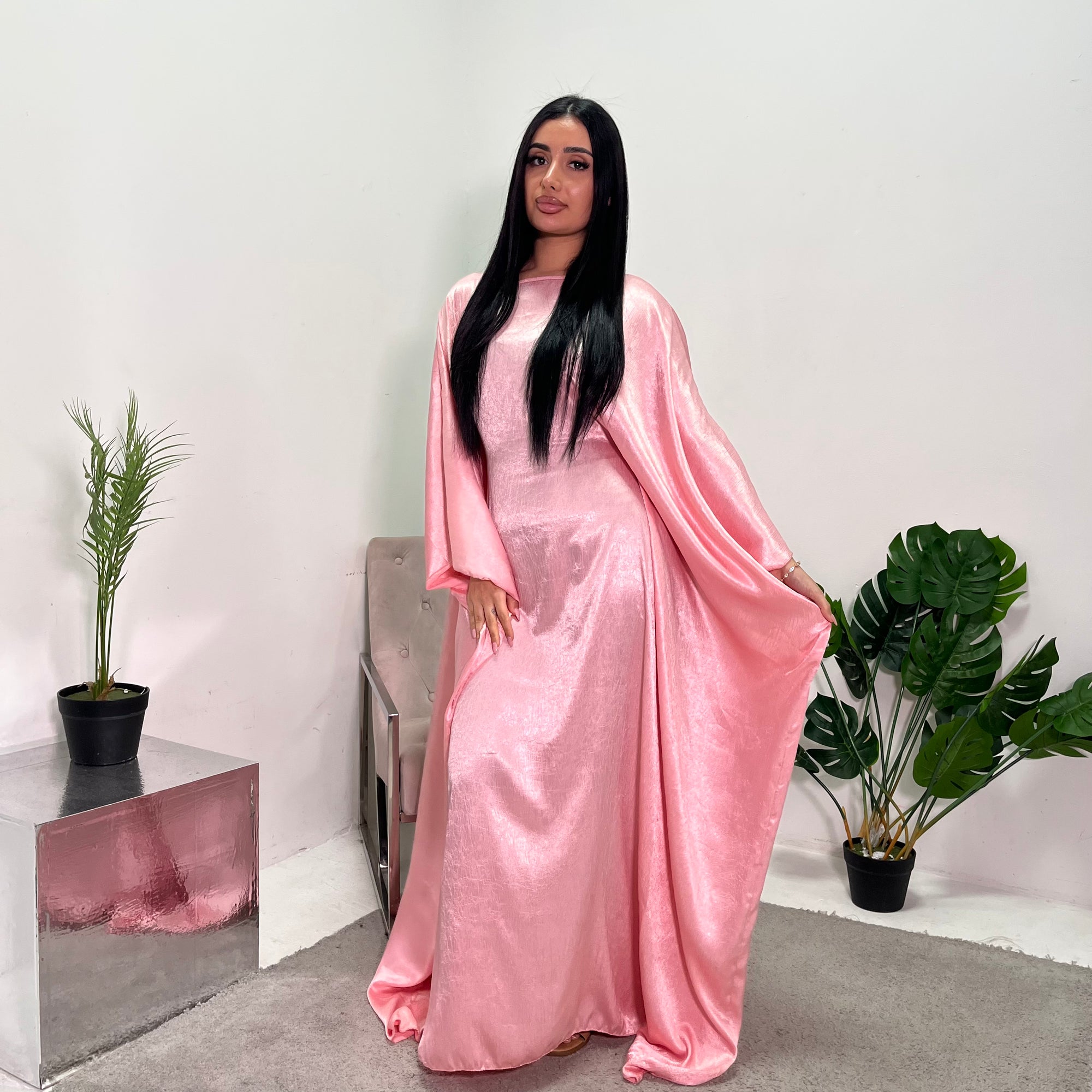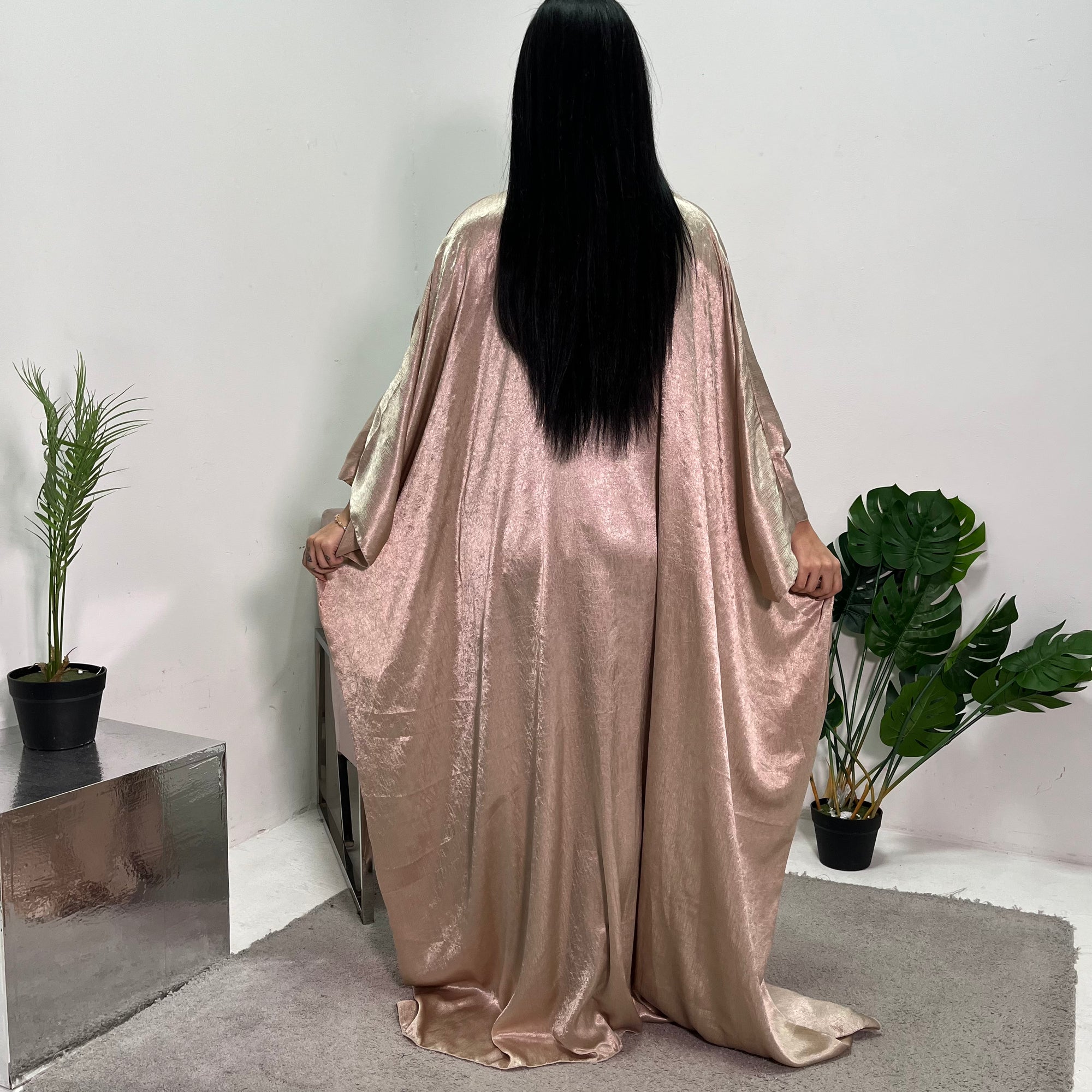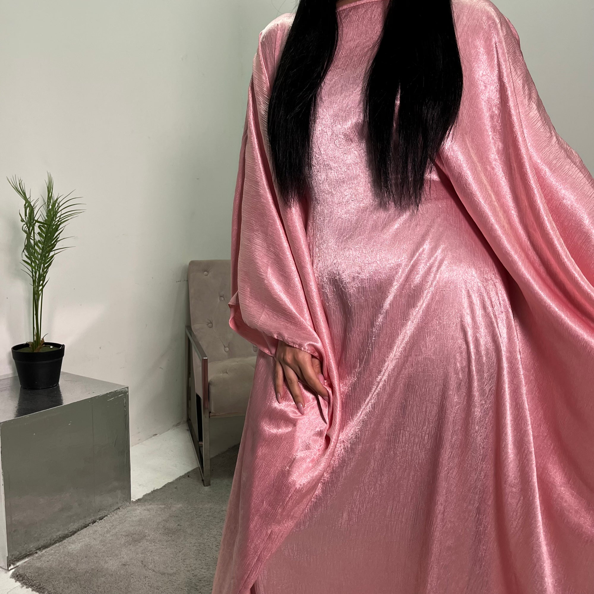 Arianna Pink Sequin Trim Modest Abaya Kimono Jacket