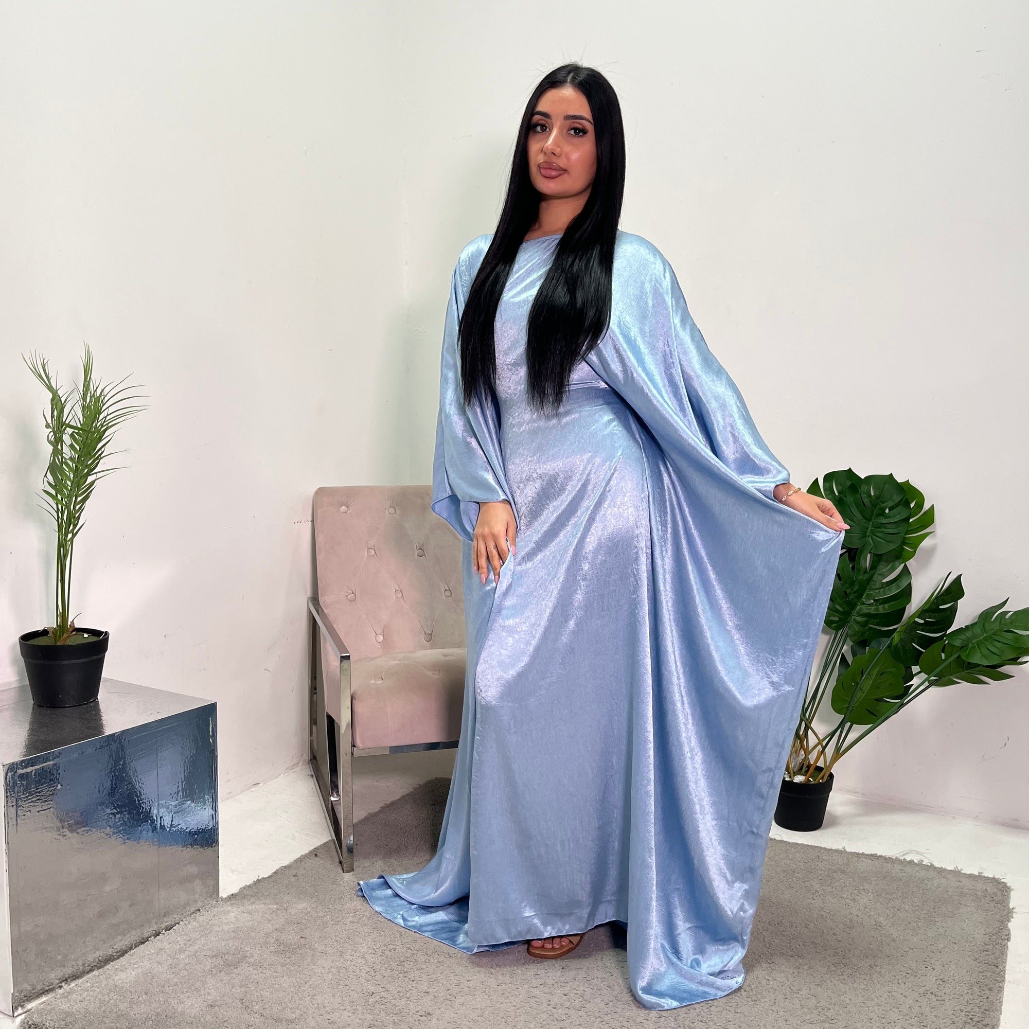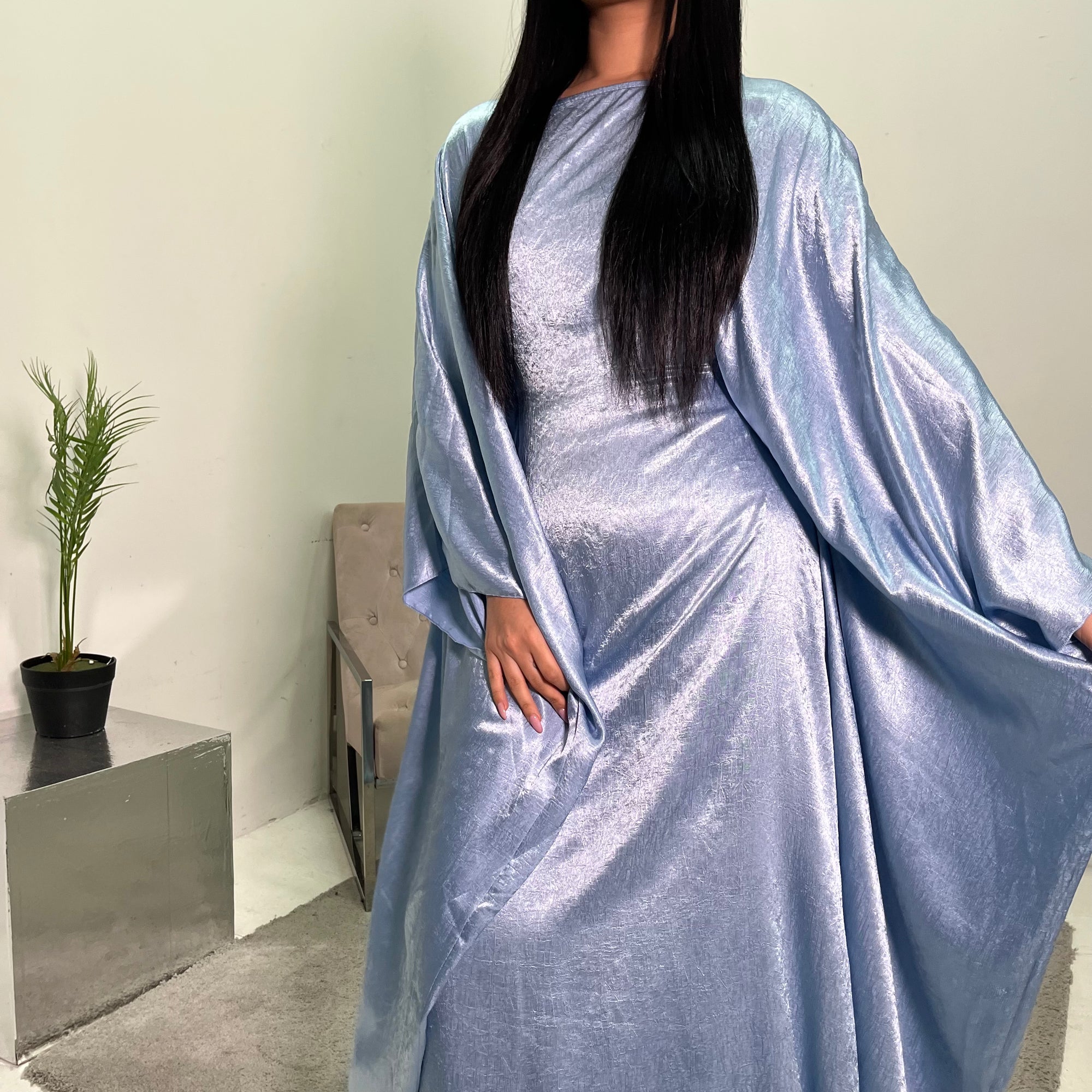 Arita Sky Blue Textured Shimmer Kaftan Dress