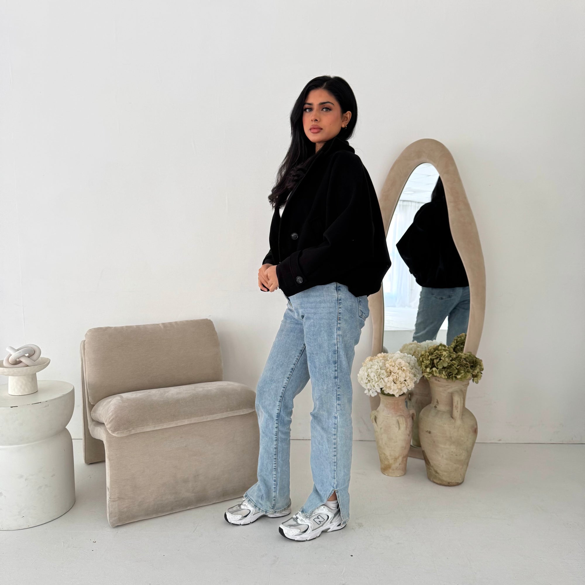 Aubin Black Premium Ribbed Knitted Co ord Set