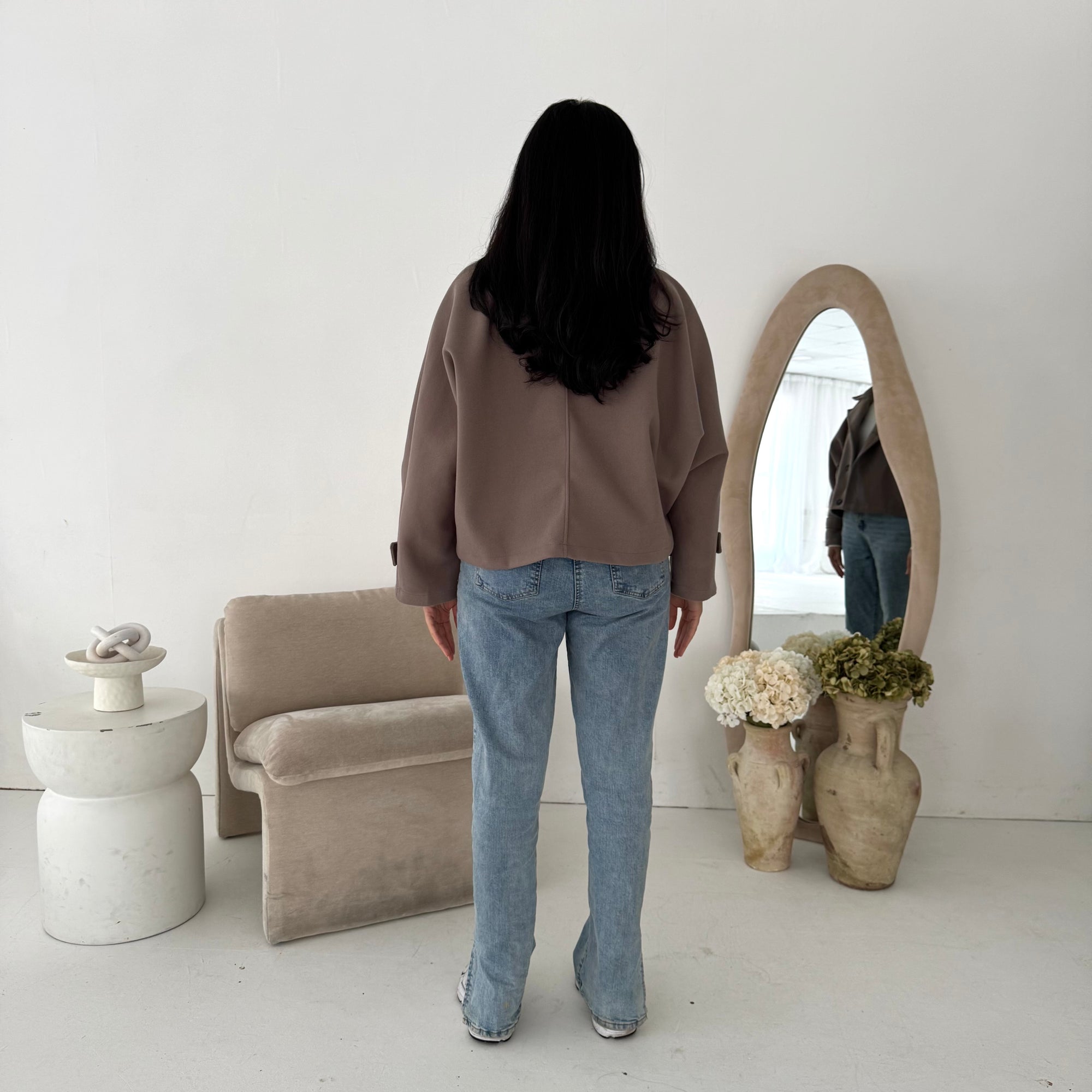 Atia Mocha Linen Gold Buckle Tie Back Modest Dress