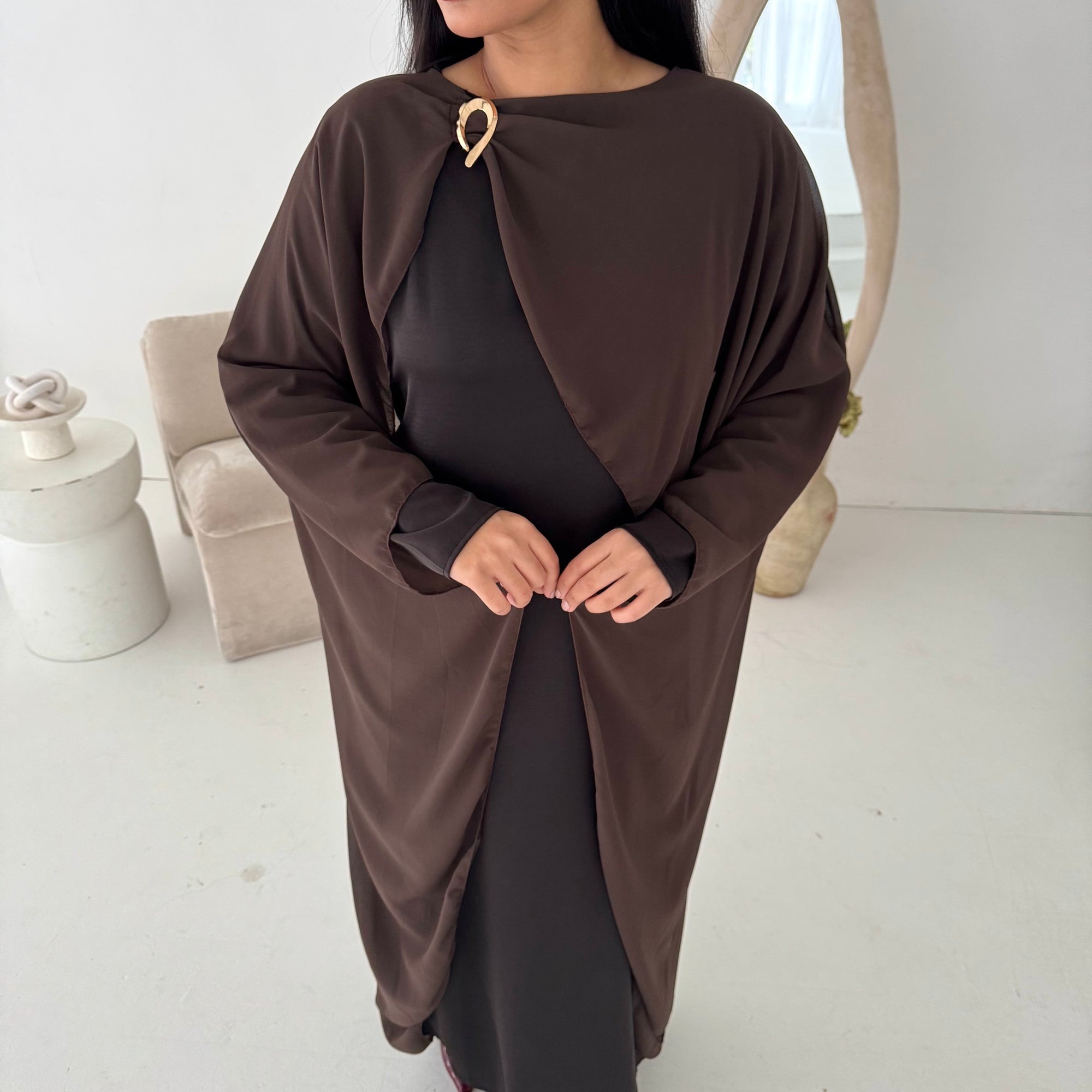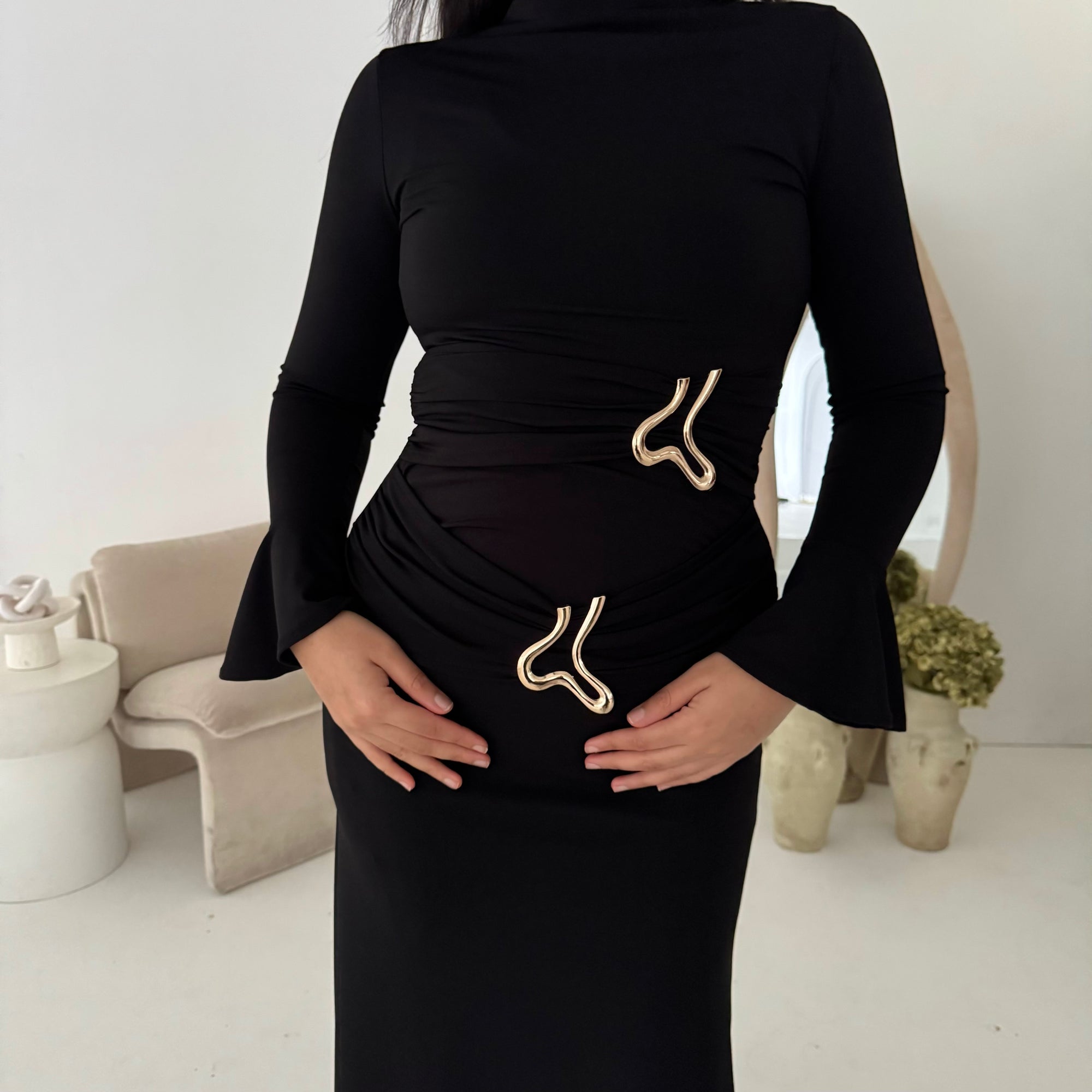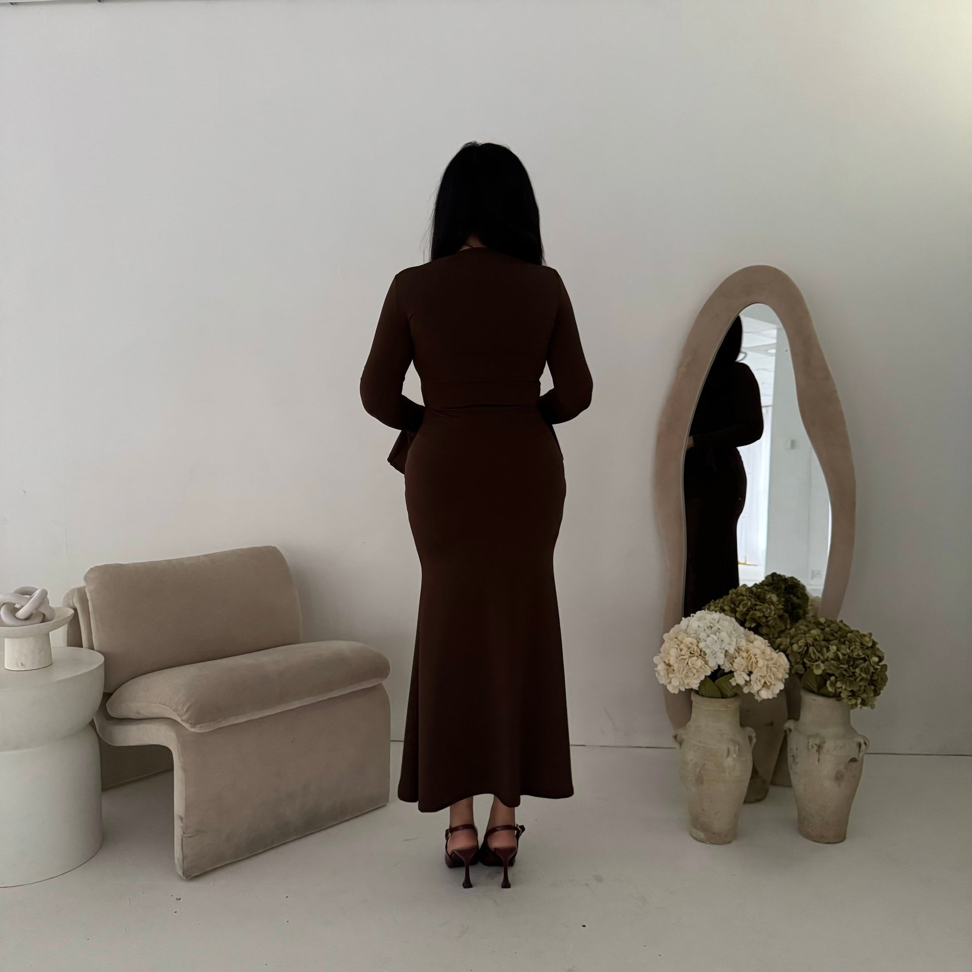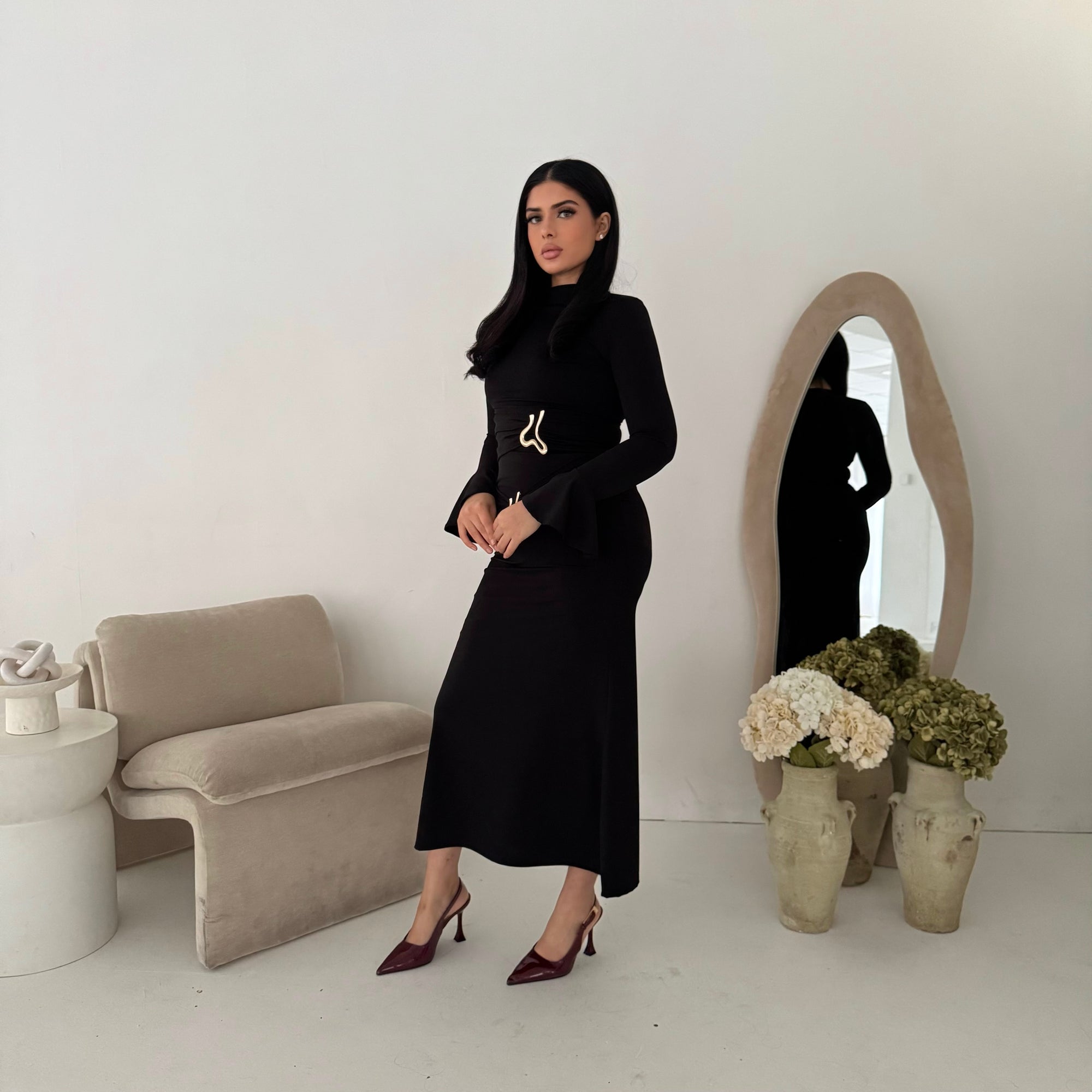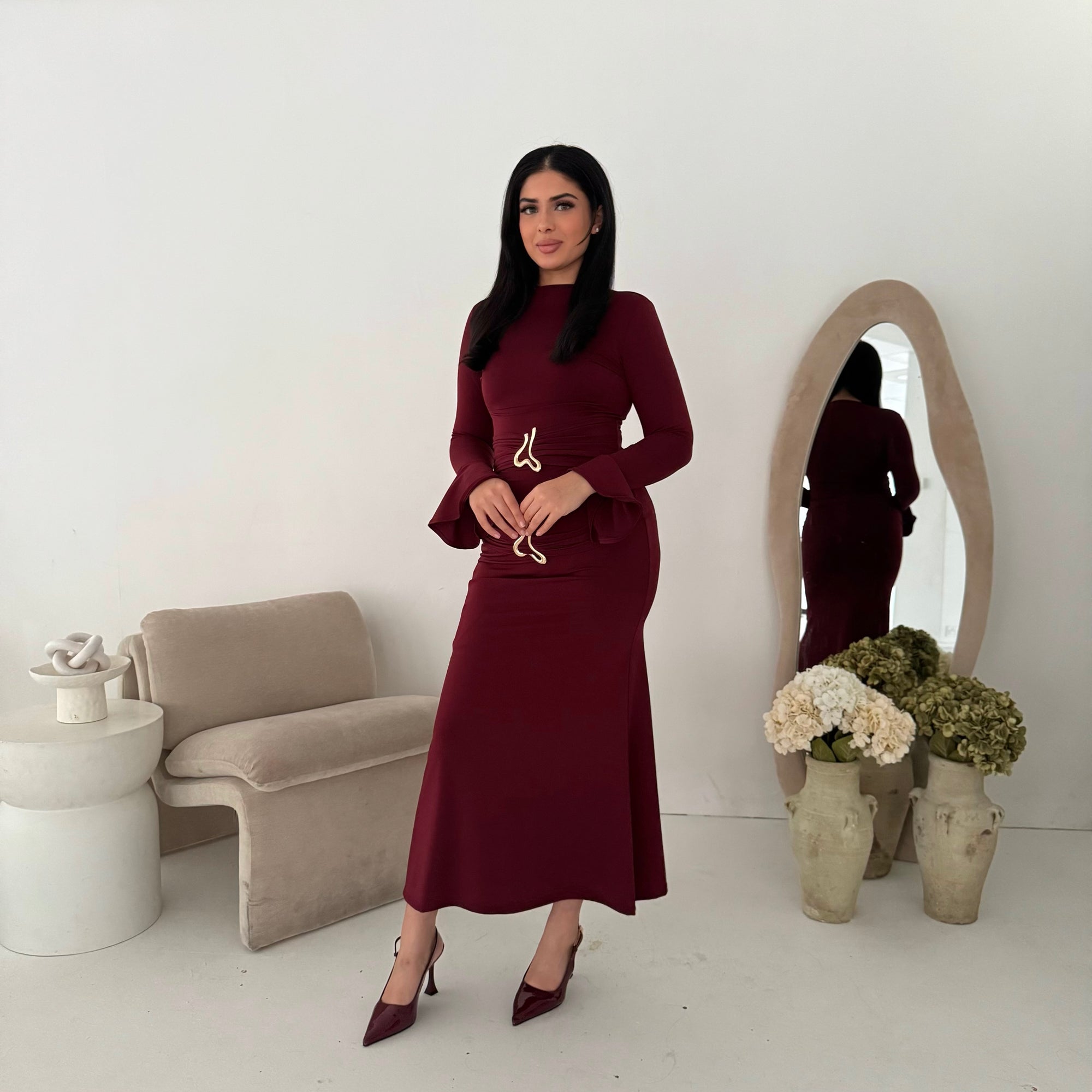Serenity Mocha Gold Buckle Detail Modest Dress